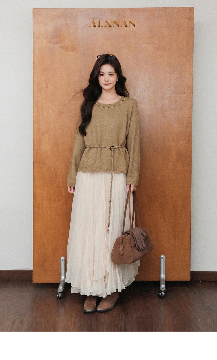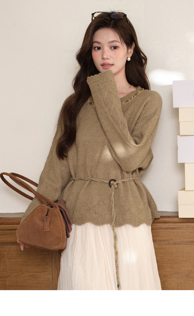 鹿向南「枫叶落语」美拉德浅咖色设计感毛衣女2025秋新款长袖上衣