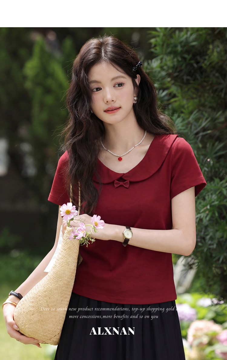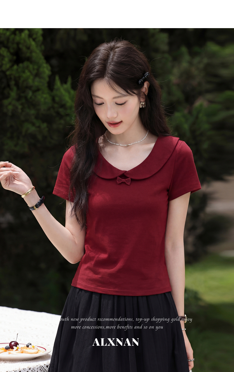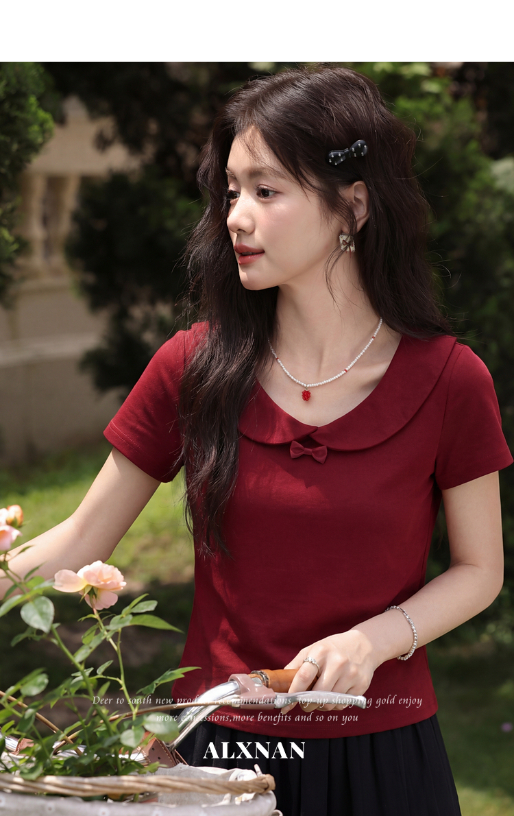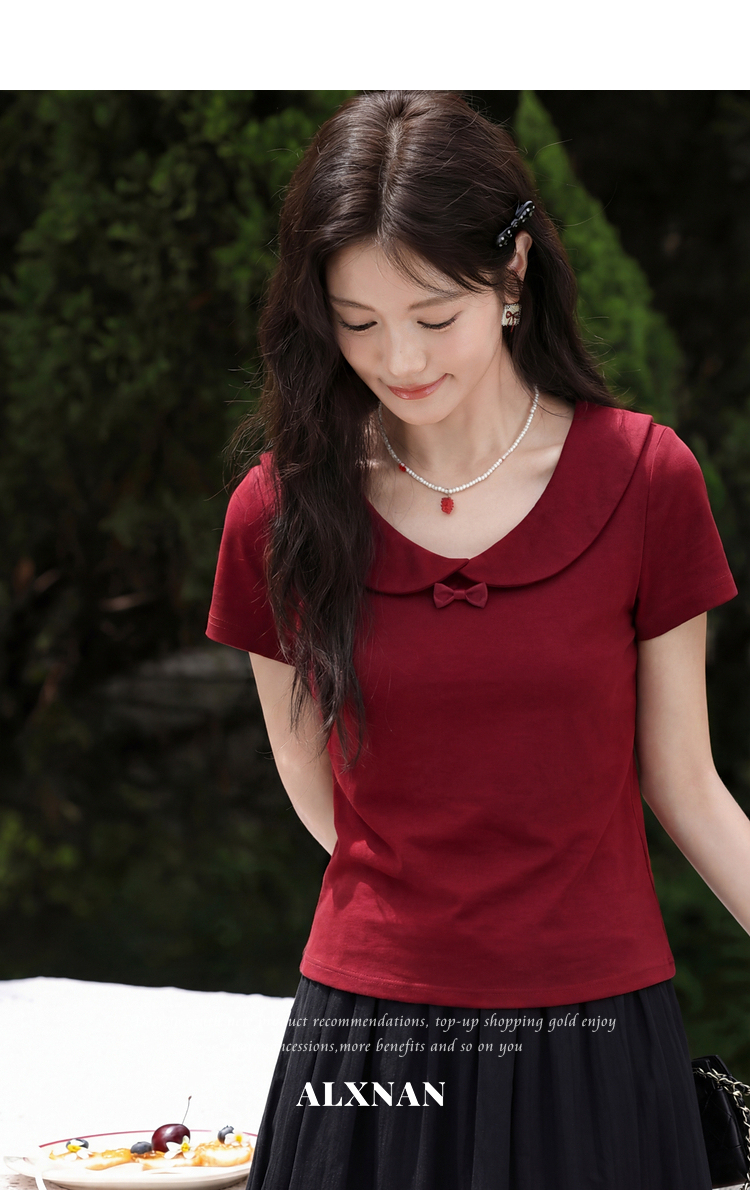 鹿向南【0402/20:00新品前1小时7折限量100件】酒红色T恤