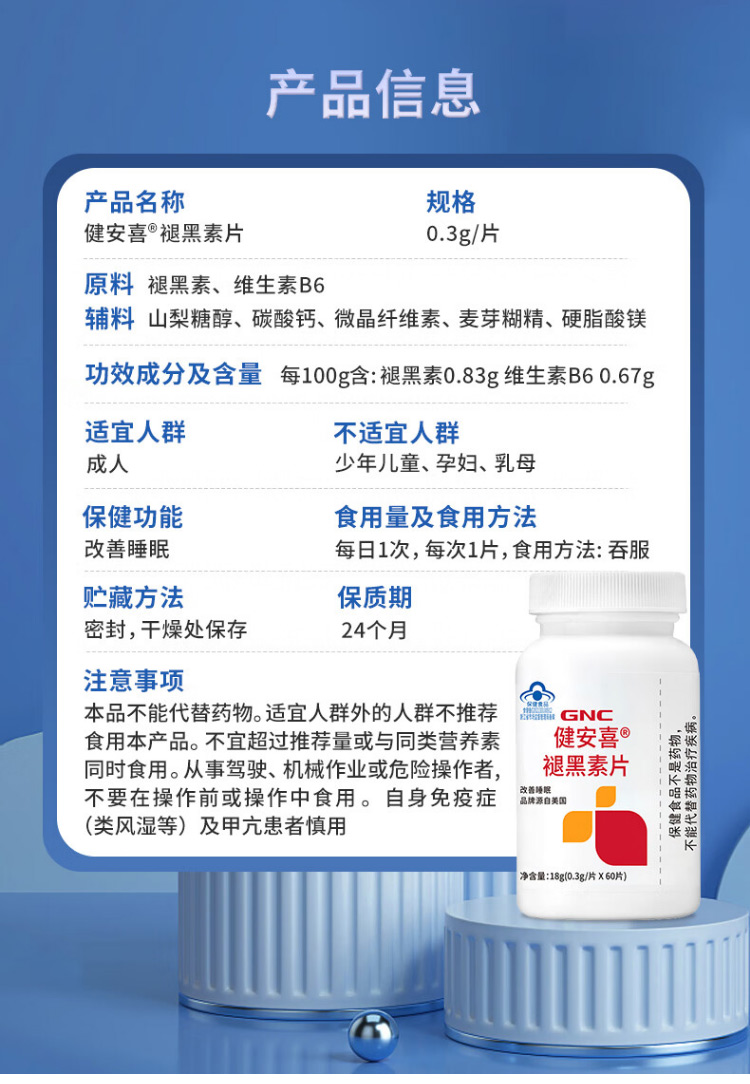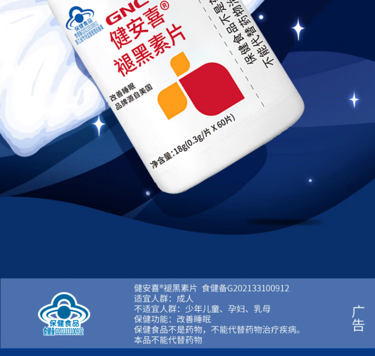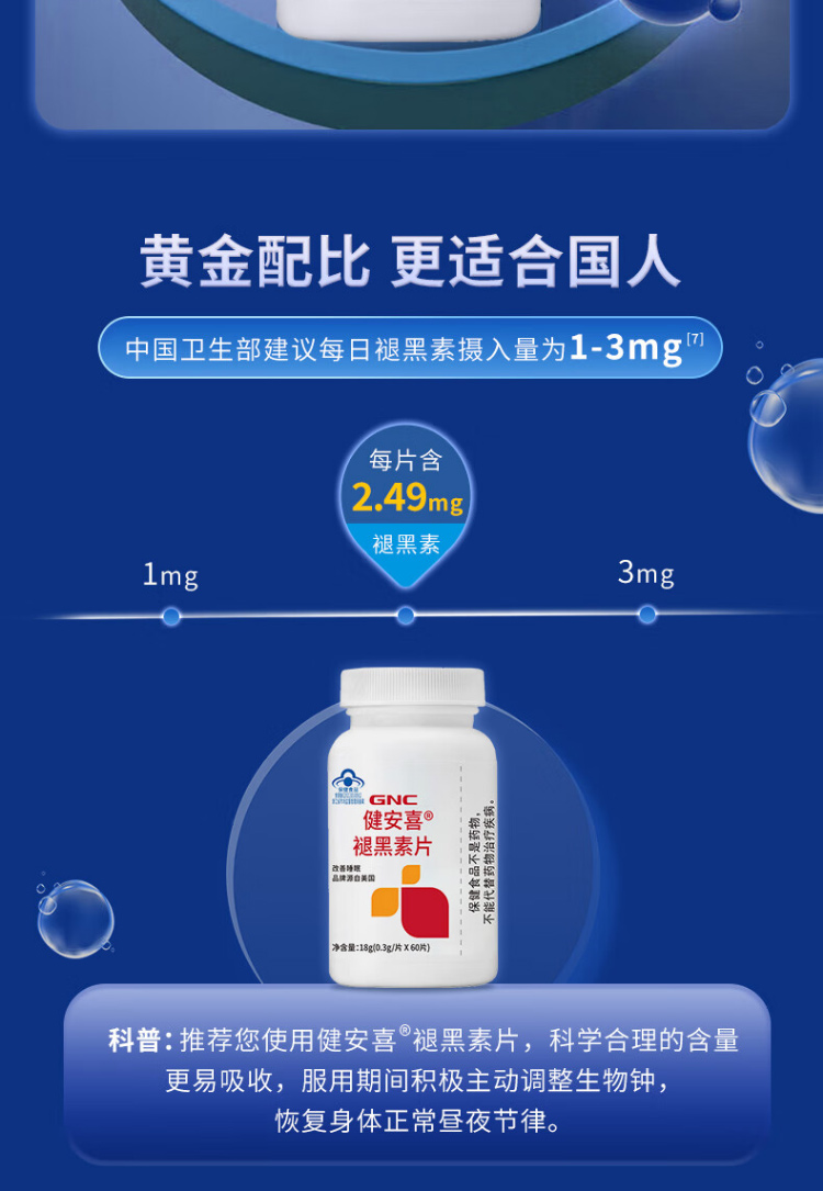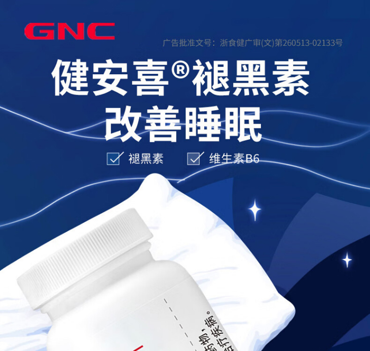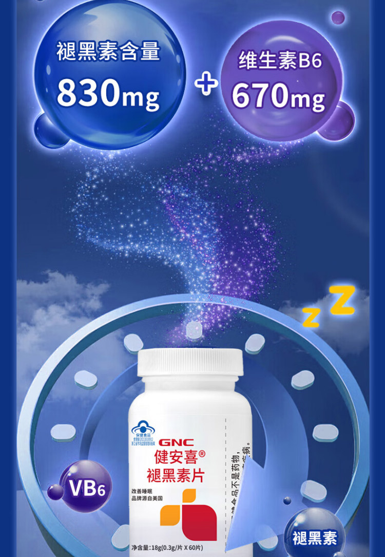 【79元选2件】GNC健安喜褪黑素片60片【有效期至26.9.10】