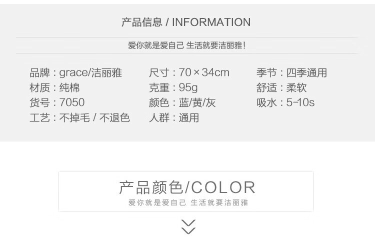 洁丽雅(Grace)纯棉简约条纹毛巾3条 7050颜色随机
