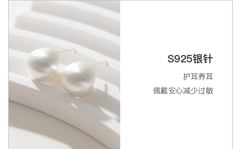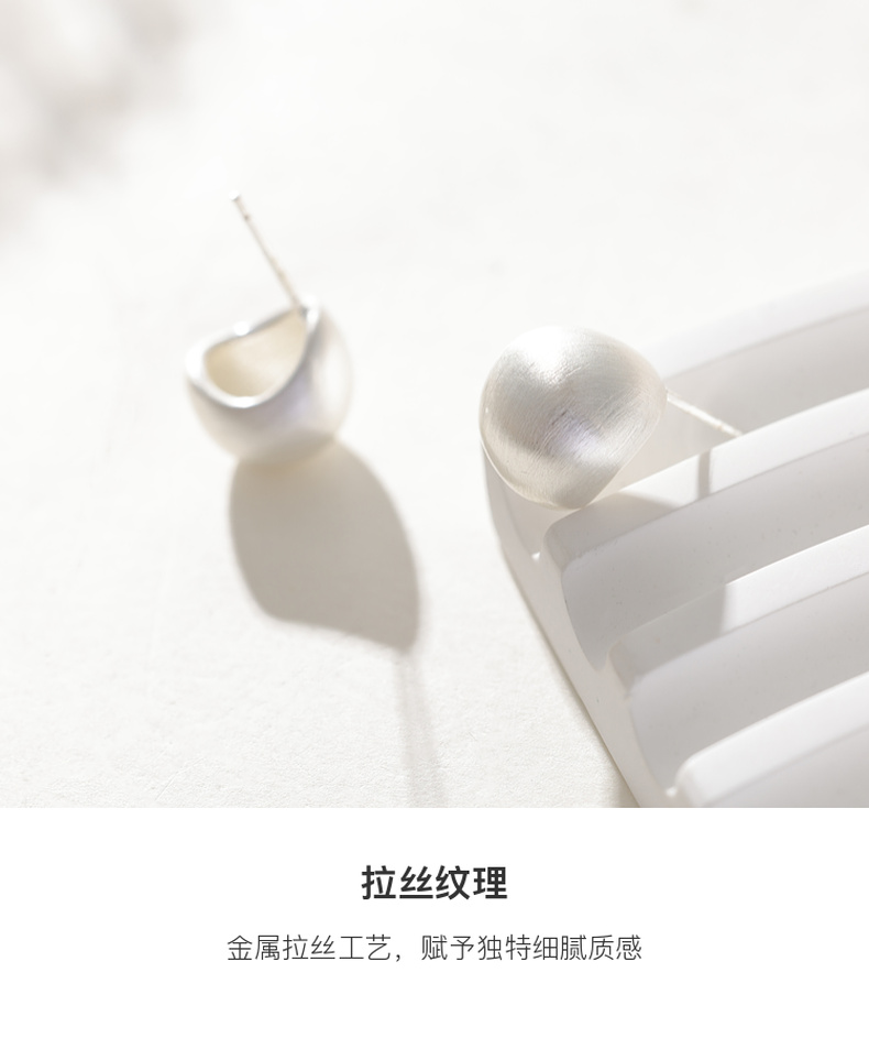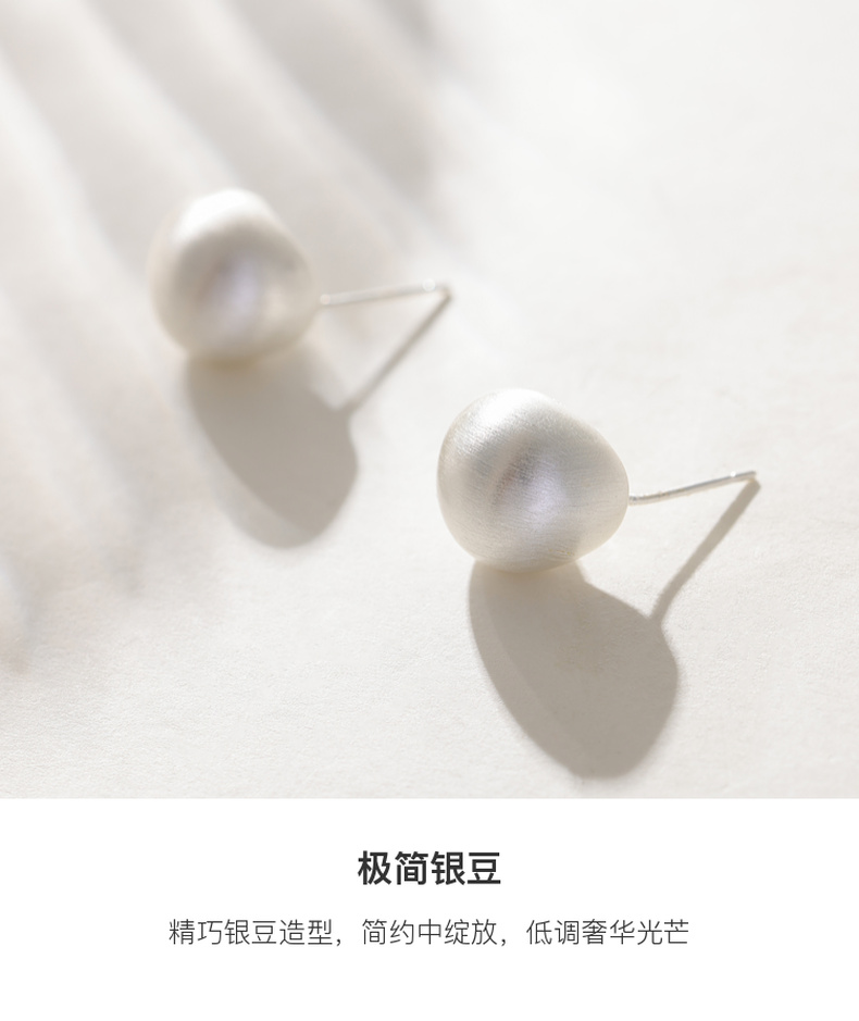 三彩2026新款镀银豆耳钉银针养耳女耳饰极简通勤拉丝小众时尚