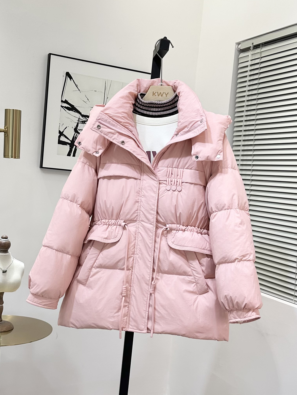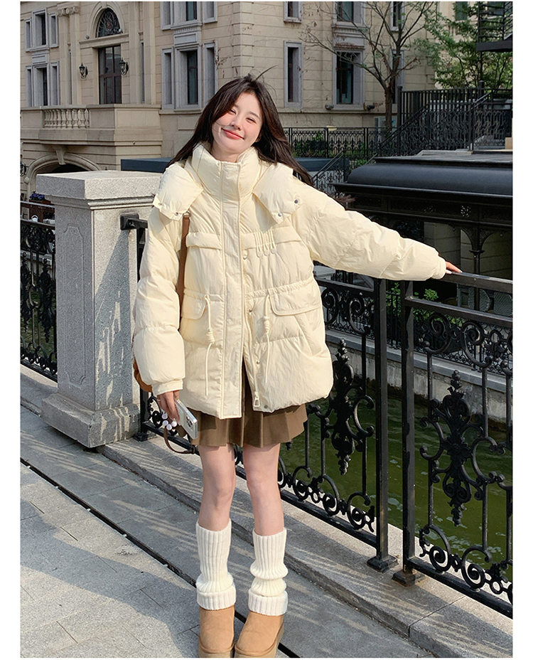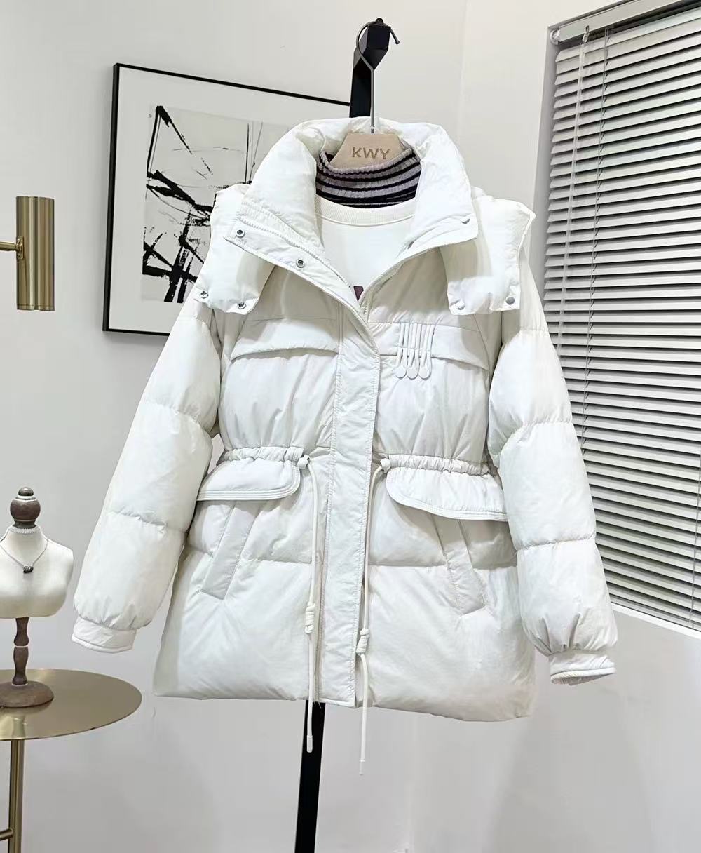 2025年新款冬季外套 女短款收腰百搭 短款白鸭绒连帽羽绒服 HY-11