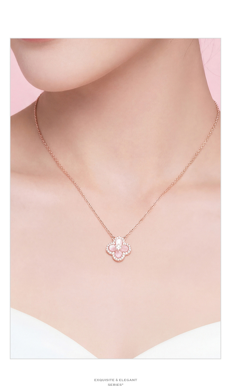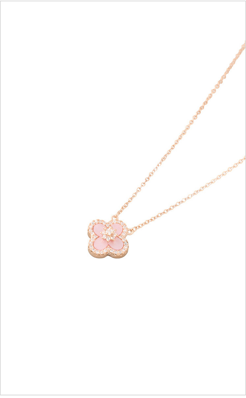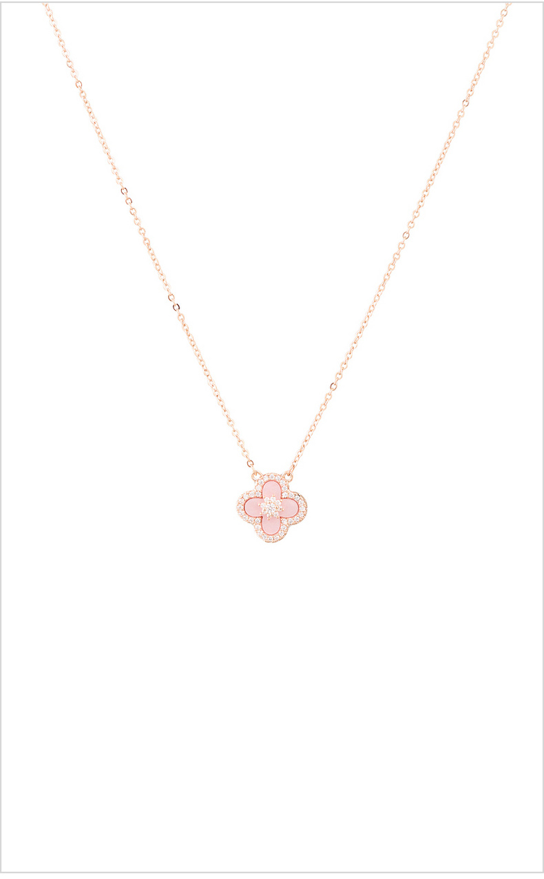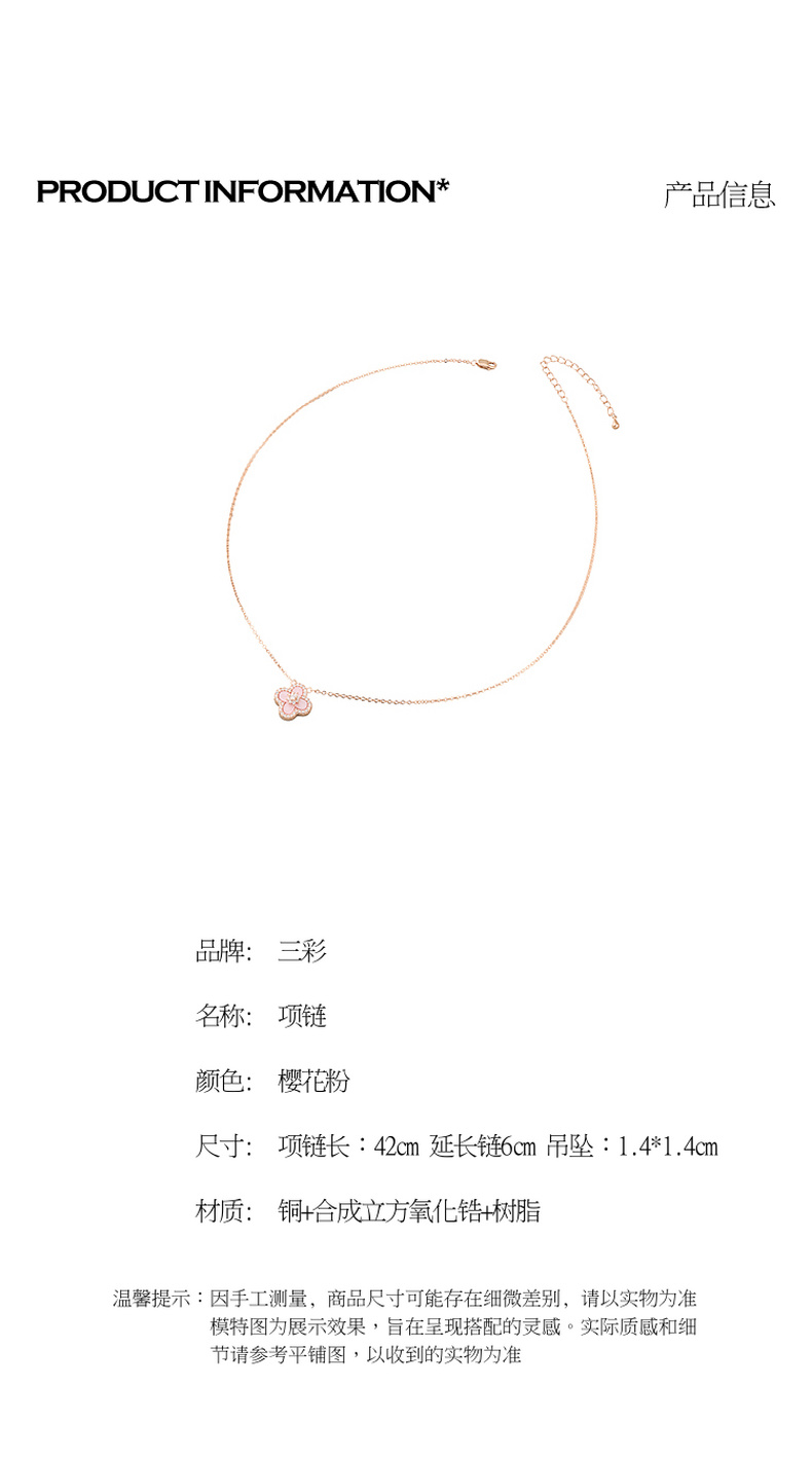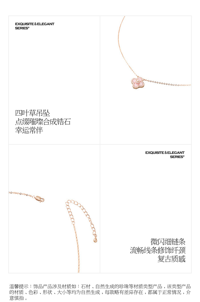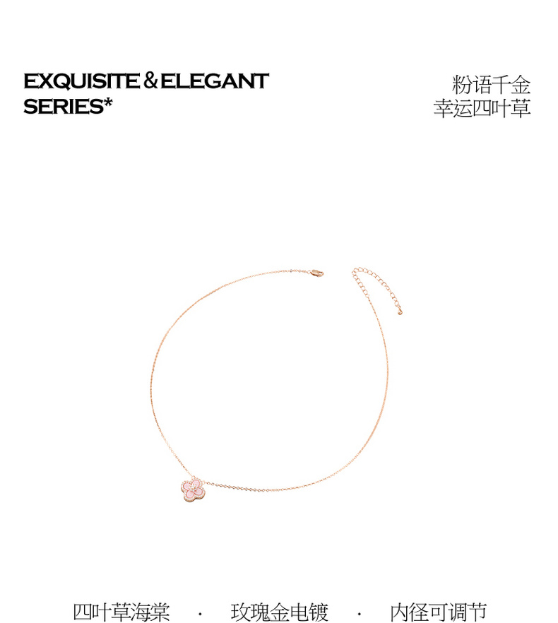 三彩2026新款玫瑰金四叶草海棠纹吊坠项链轻奢锆石法式幸运温柔女