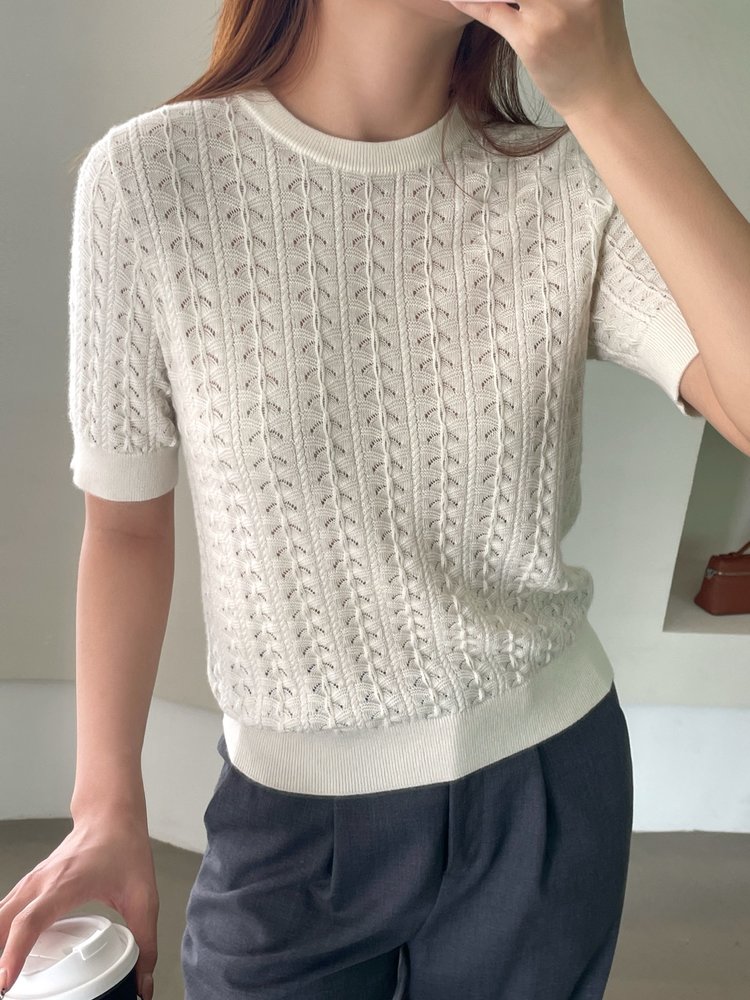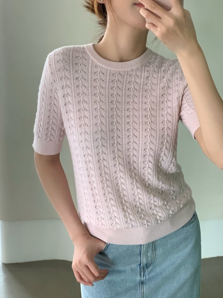 YS1782-钩花镂空短袖针织衫上衣【Hera&Song】