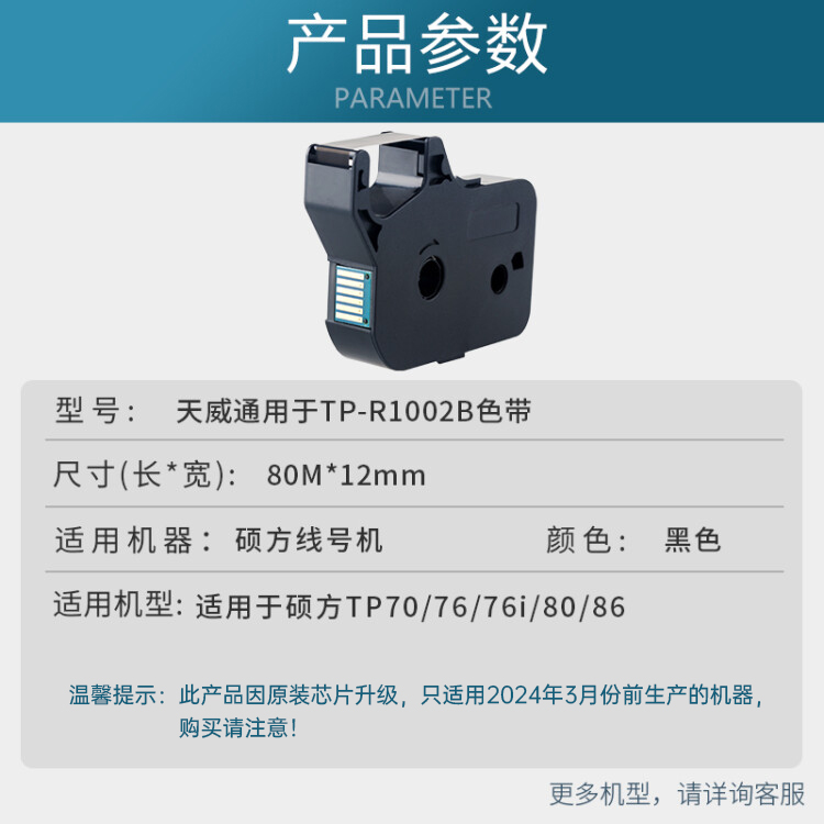 天威 TP-R1002B 硕方线号色带 适用TP70 76 80 86 号码管套管 贴纸标签打码色带黑色 适用TP70 76 80 86
