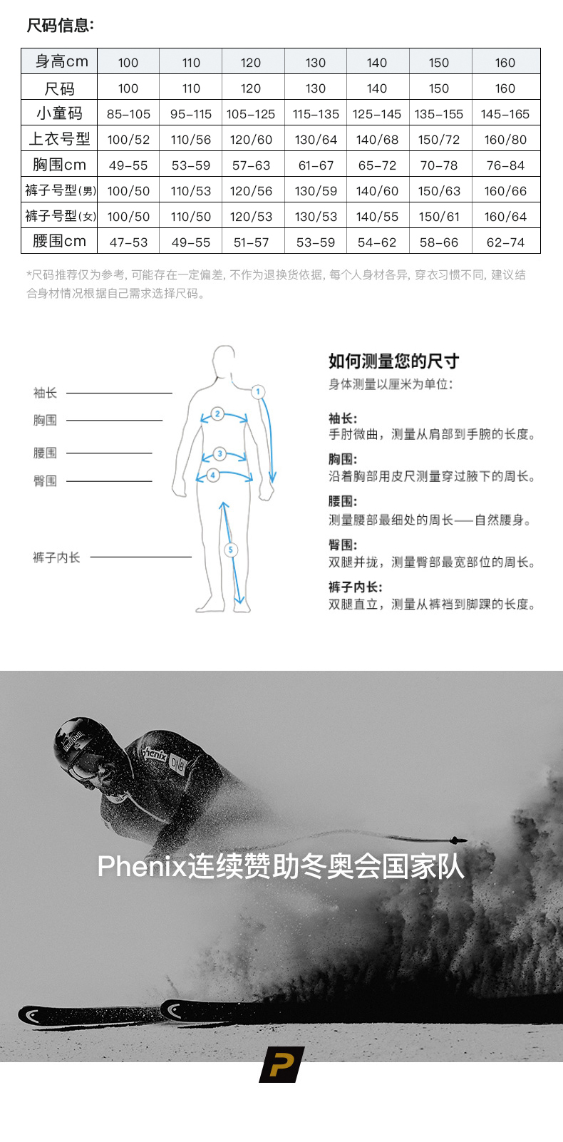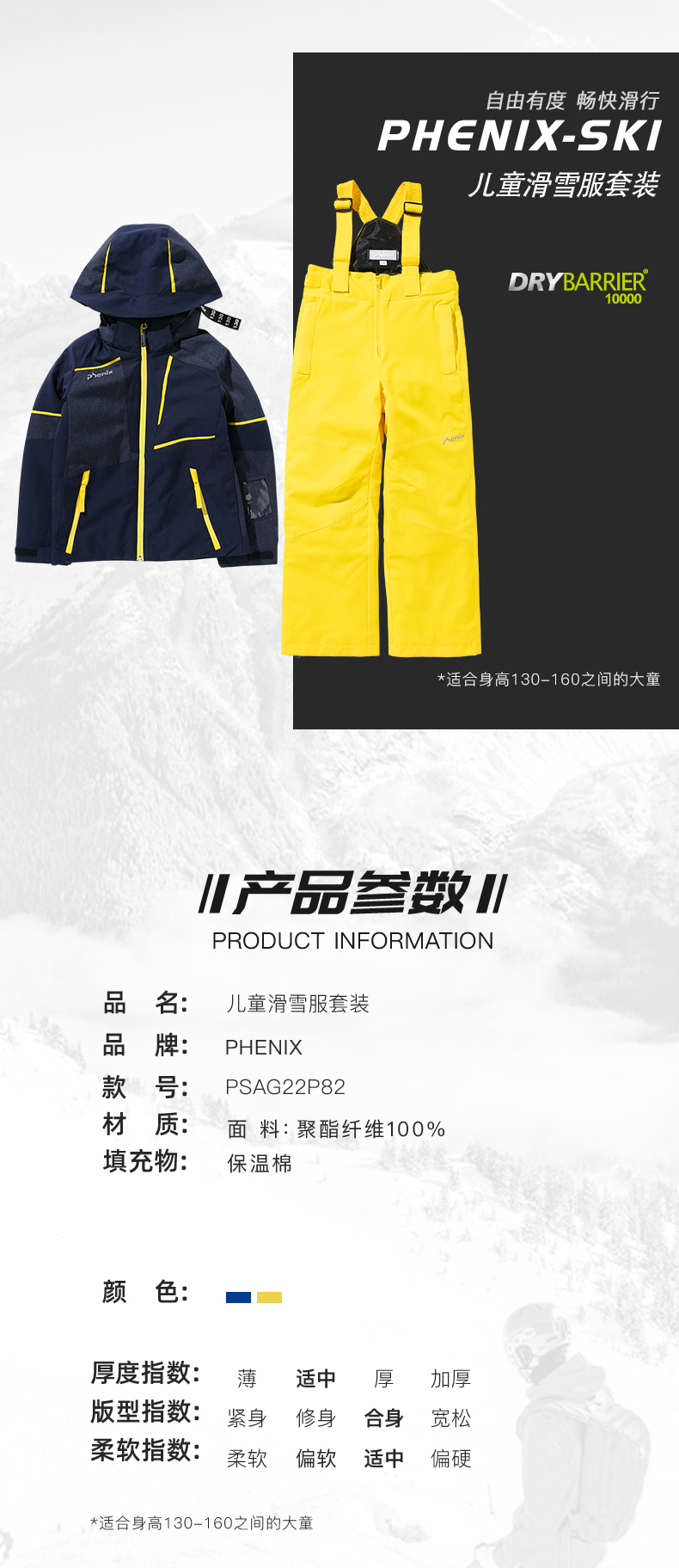 phenix菲尼克斯 竞技系列大童秋冬保暖儿童单双板滑雪服PSAG22P82