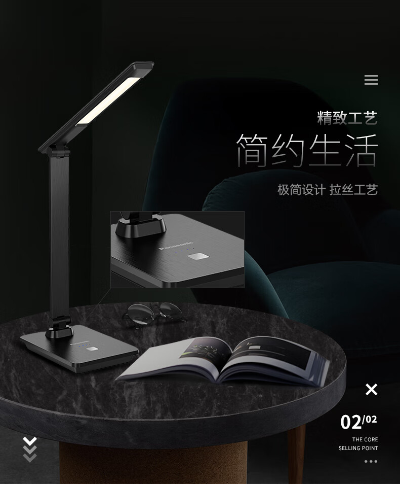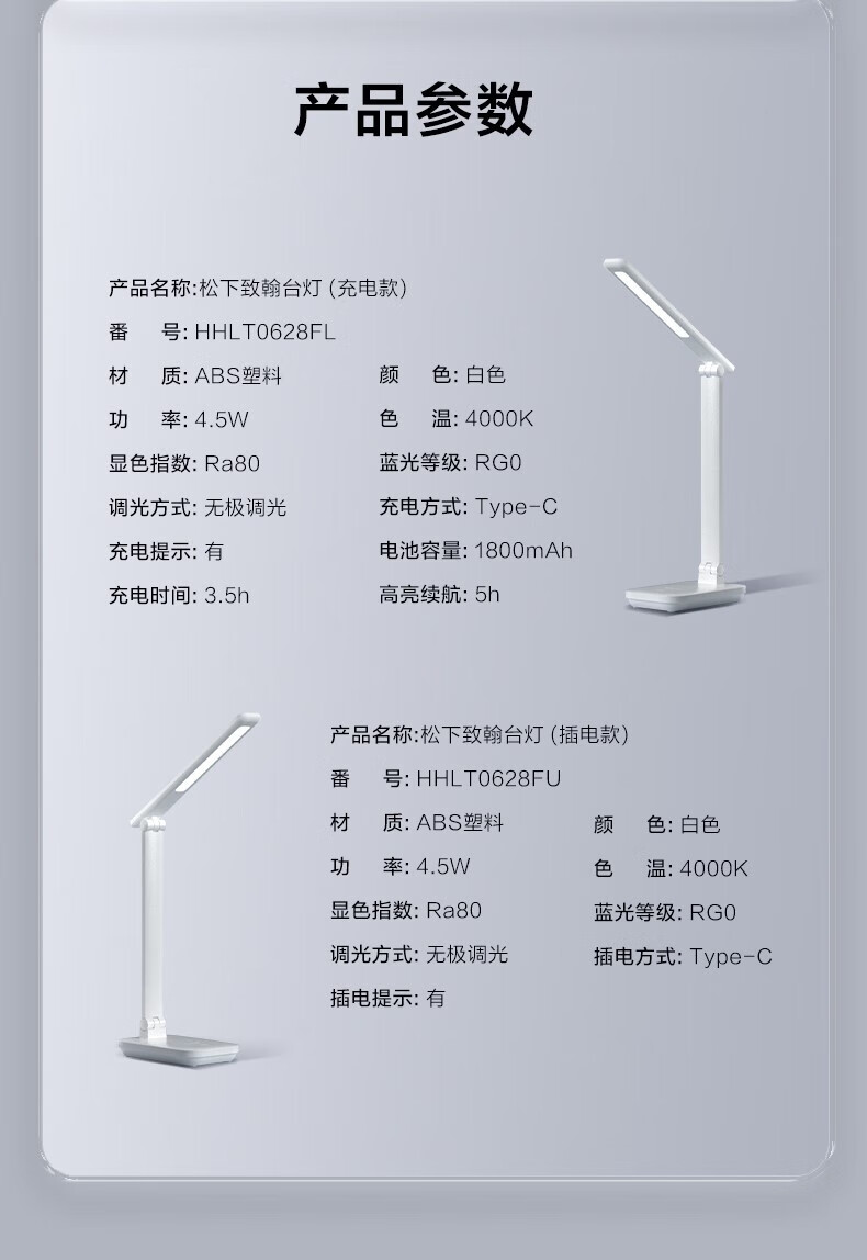 松下(Panasonic) 学生儿童 阅读工作学习台灯 USB充电台灯 高显色指数 致稳系列 (插电款)