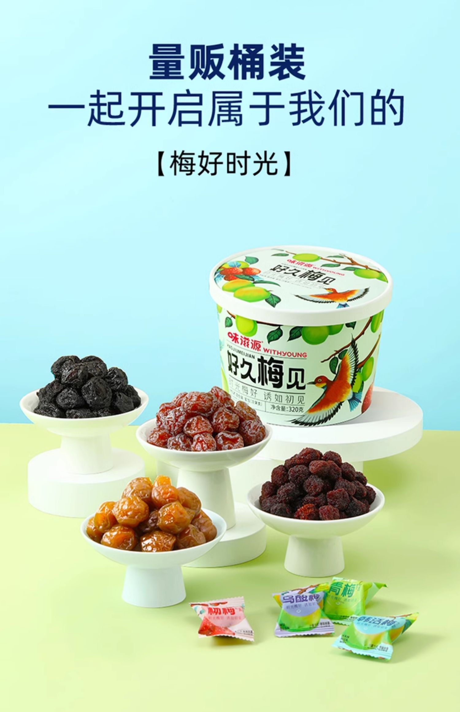 【味滋源】好久梅见梅子桶320g装 蜜饯果干青梅乌梅酸梅话梅休闲食品