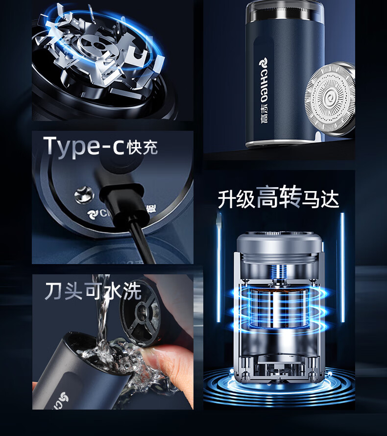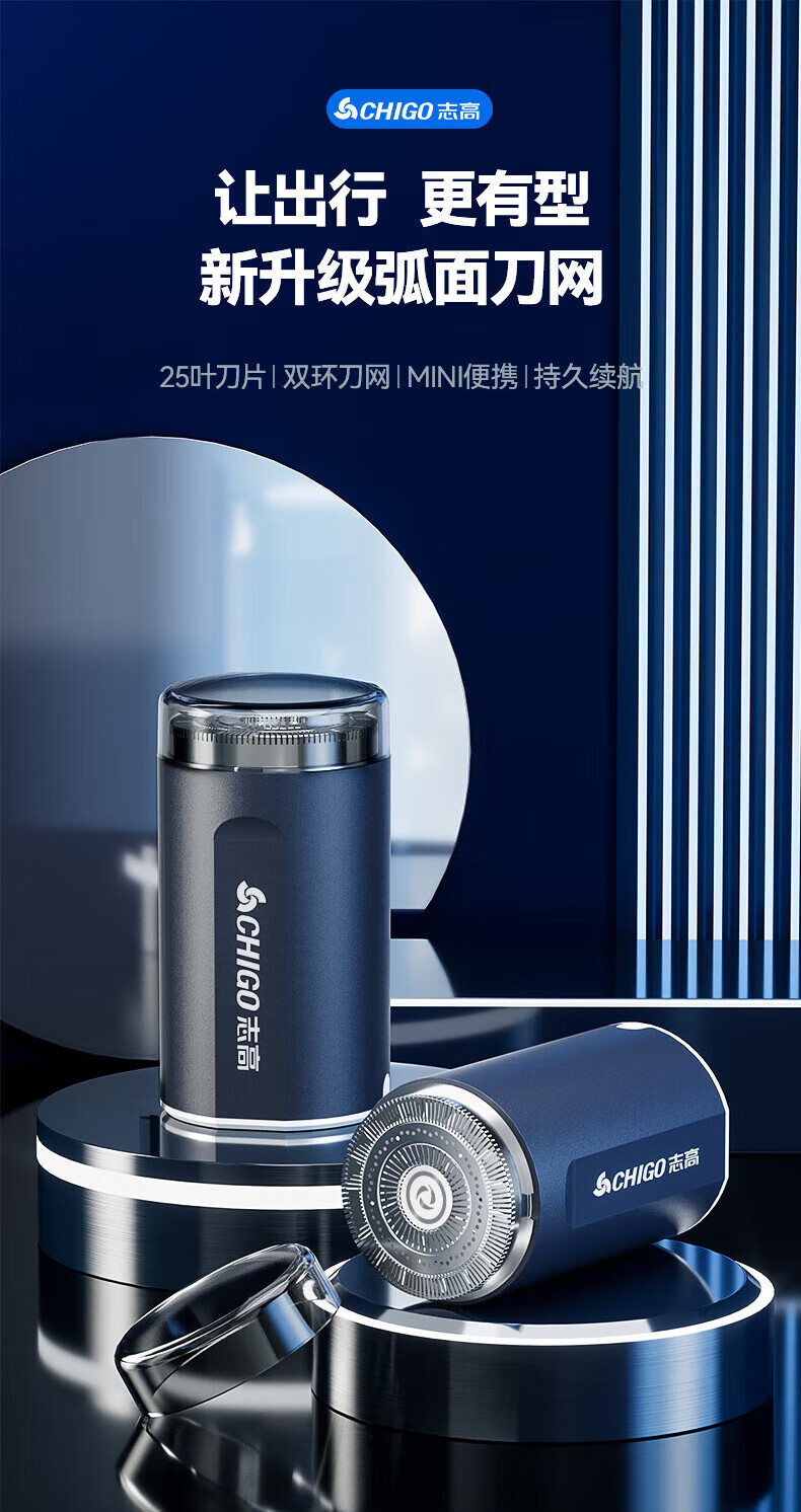志高(CHIGO)剃须刀电动小钢炮刮胡刀 迷你便携剃须刀干湿双剃胡须刀剃胡刀送男士生日礼物YZ-378