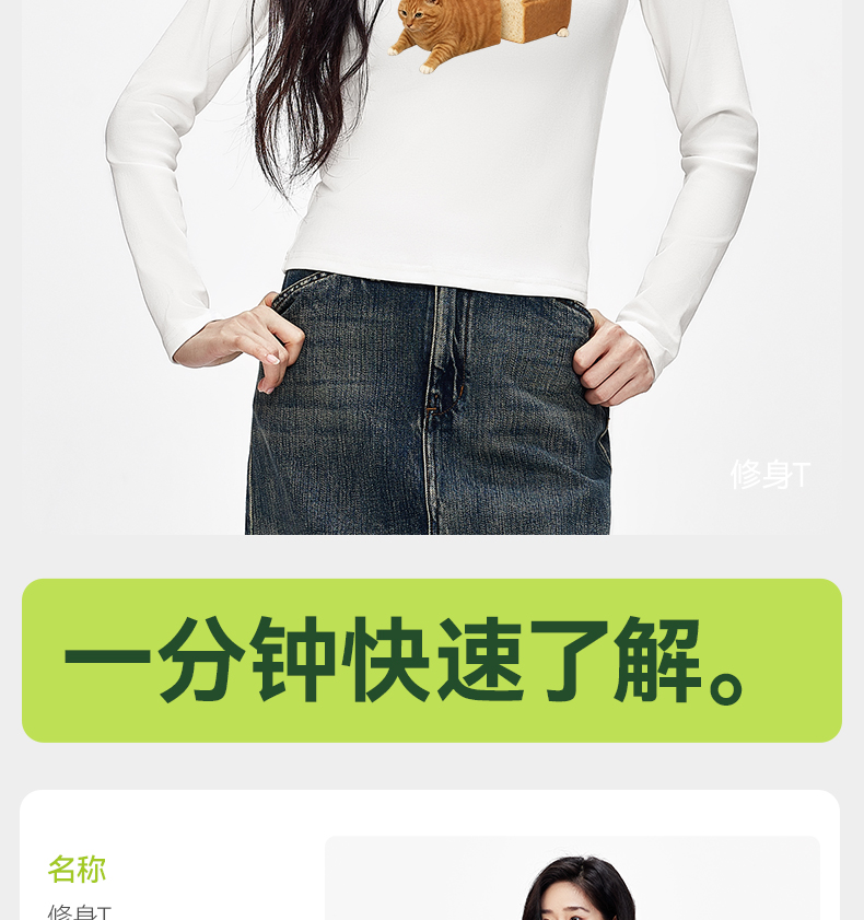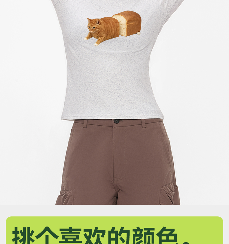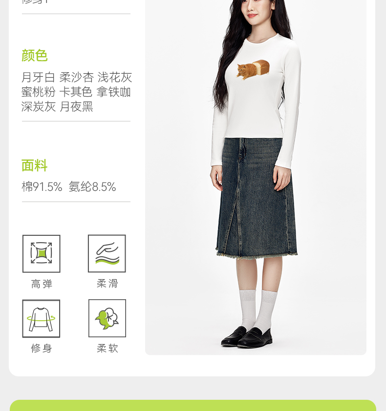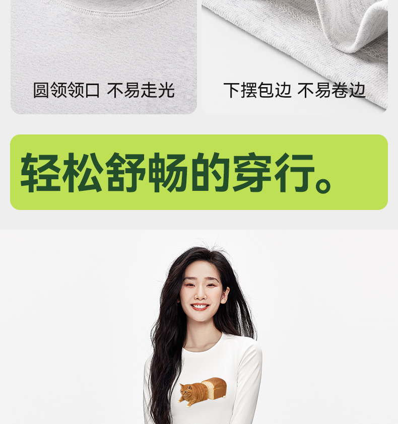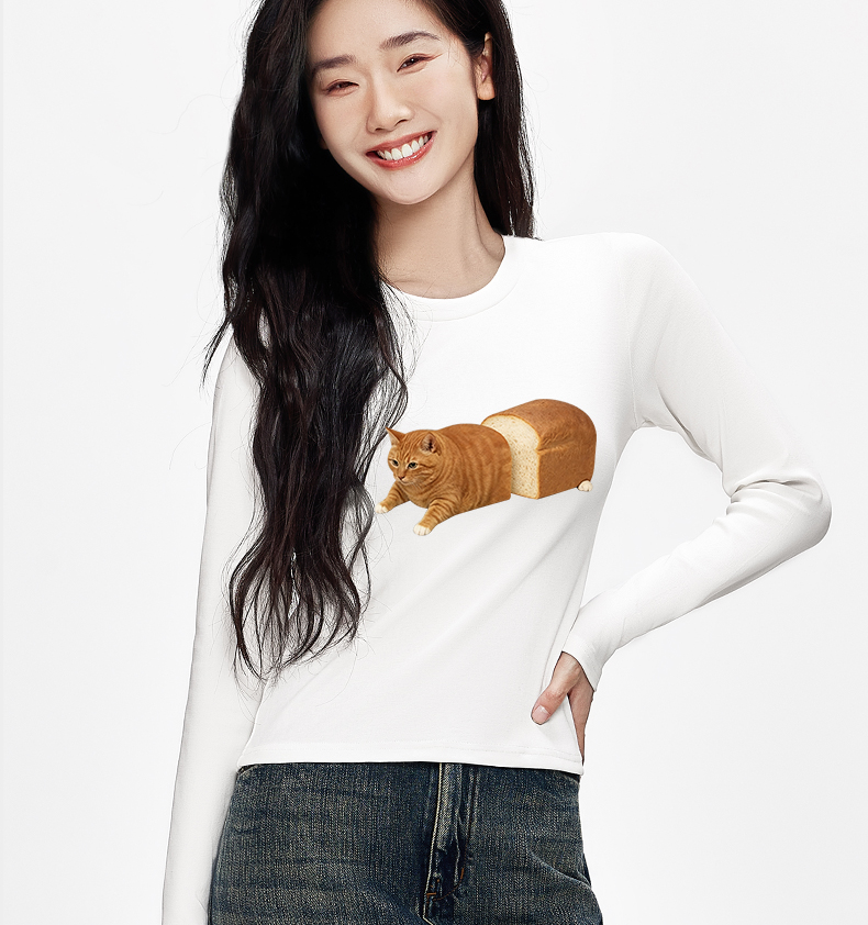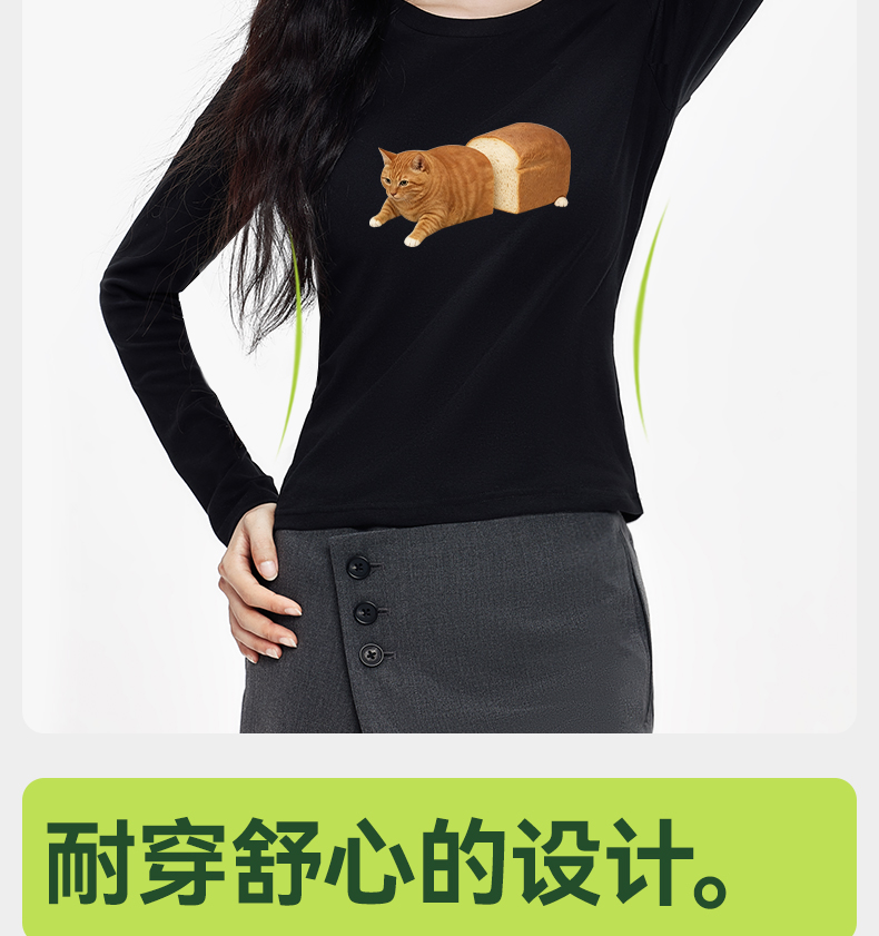 「棉的美学」 秋季新款修身长袖T恤女猫咪印花少女风圆领打底衫