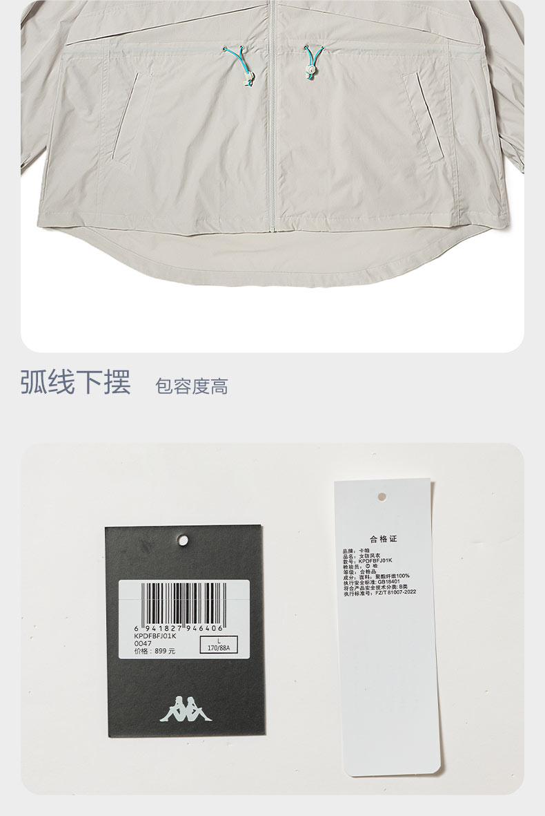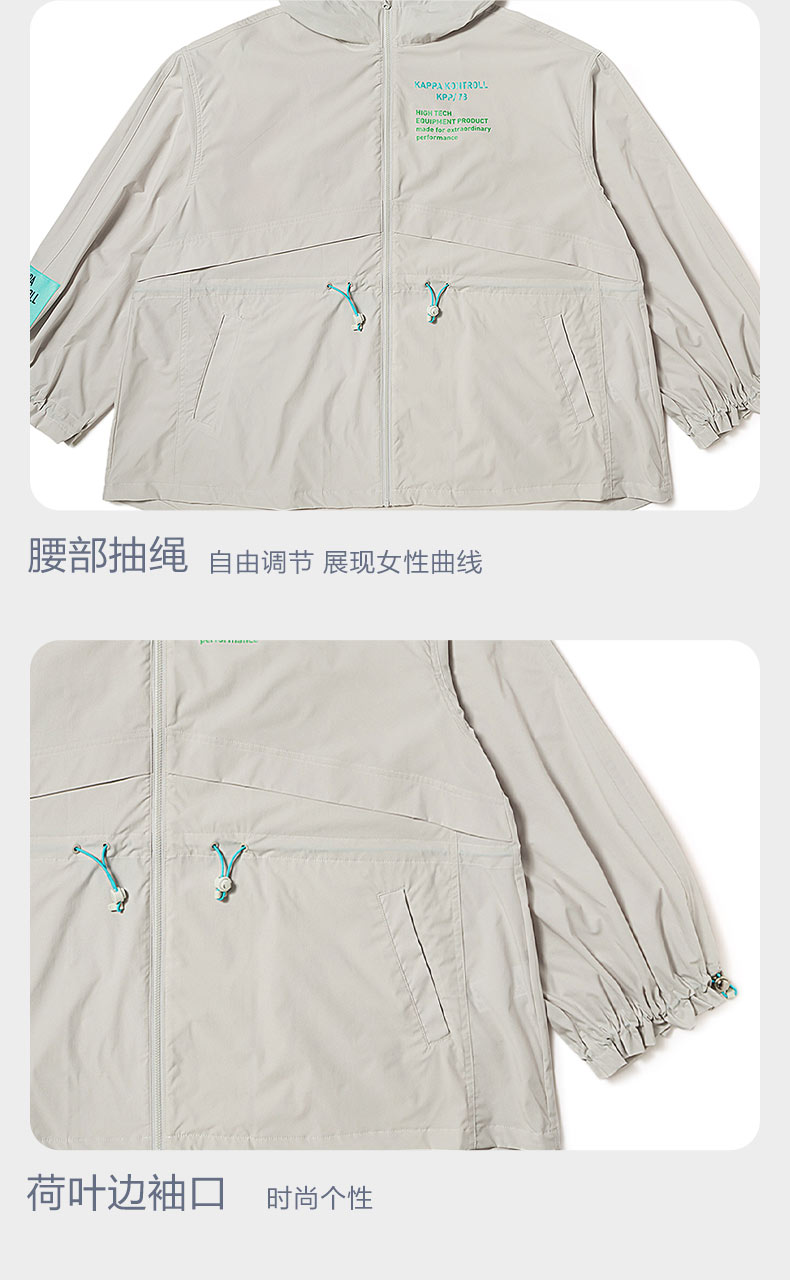 Kappa卡帕防风衣2023新款女梭织外套夏休闲连帽开衫印花皮肤衣KPDFBFJ01K