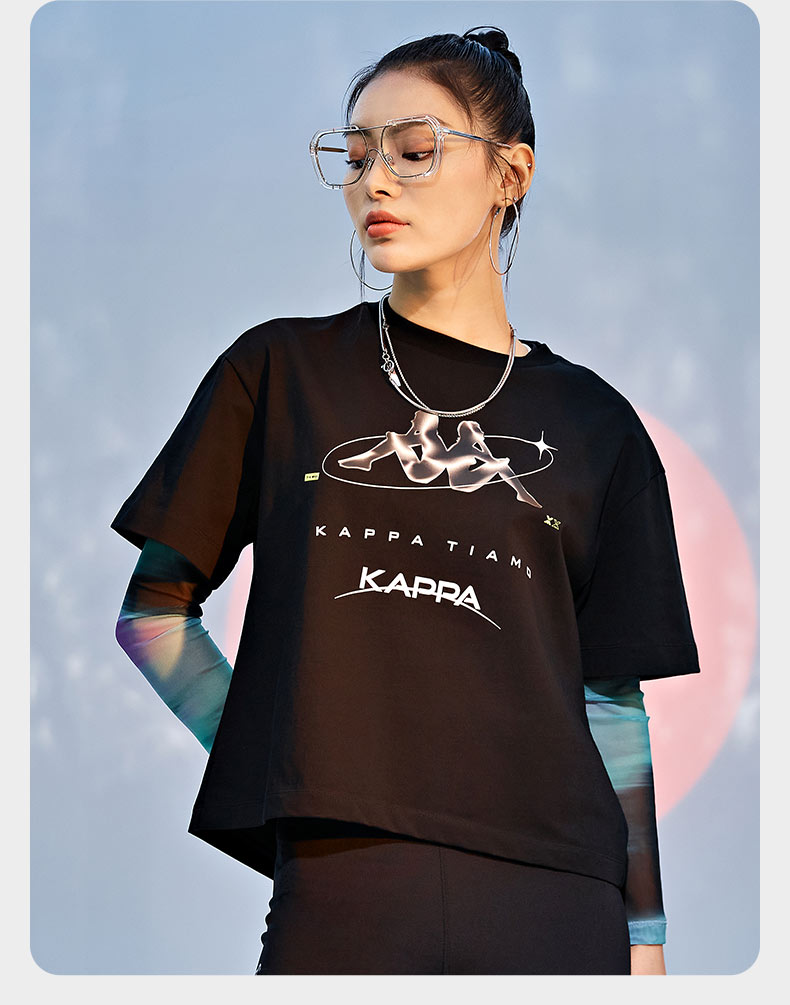 Kappa卡帕背靠背夏季2025新款运动短袖女休闲纯棉t恤透气半袖上衣K0F42TD80