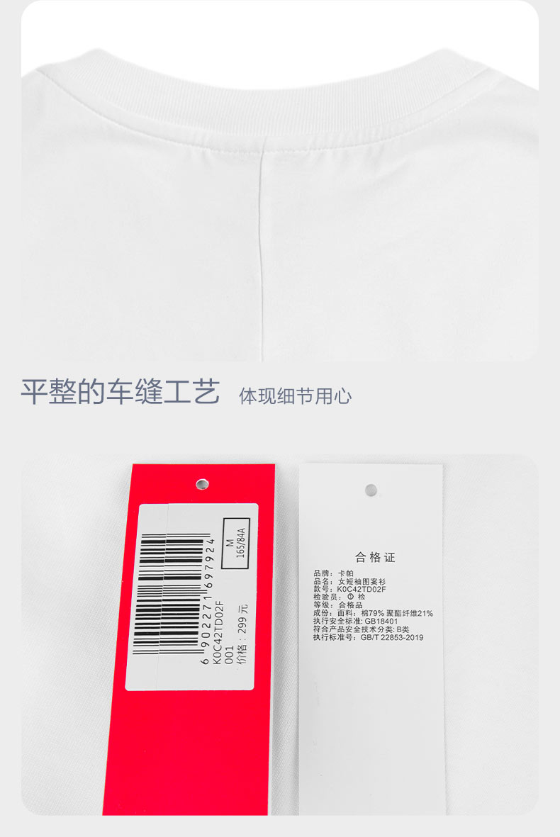 Kappa卡帕2022夏季新款女装圆领短袖T恤运动休闲潮半袖K0C42TD02F