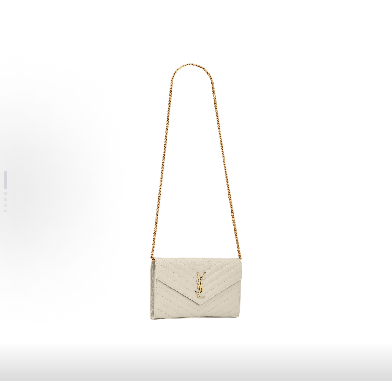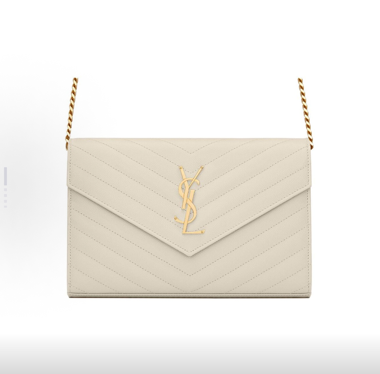 SAINT LAURENT YSL CASSANDRE 金标Logo绗缝链条百搭粒面信封包牛皮