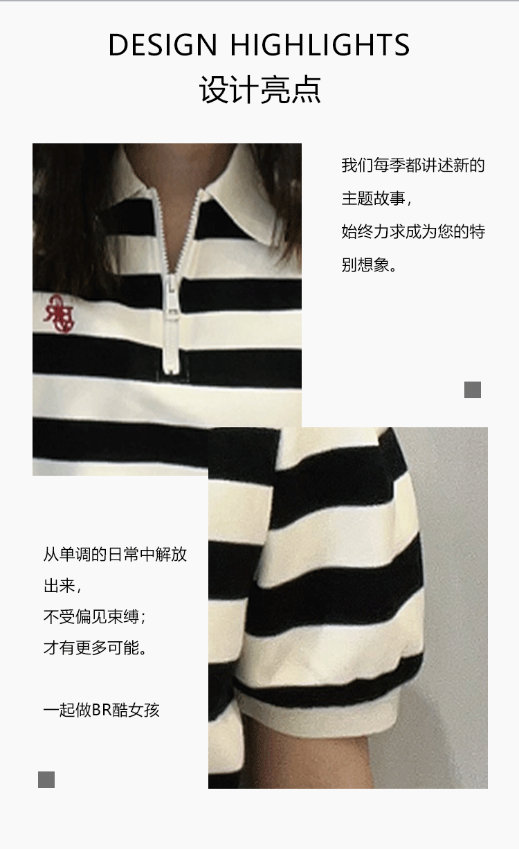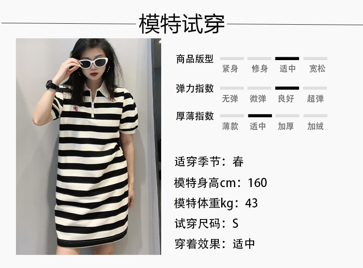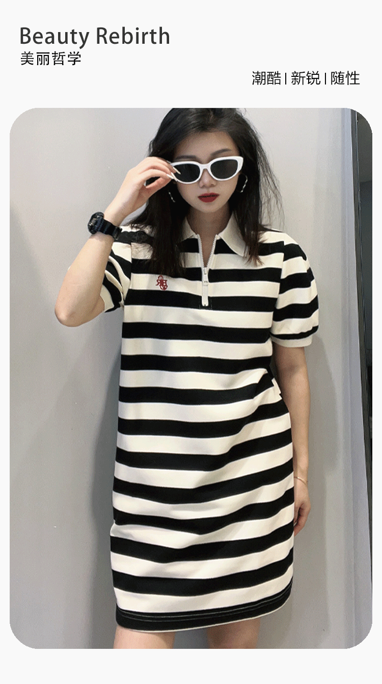 17GD翻领半拉链条纹针织短袖连衣裙40219(条纹) 春季 407301032105