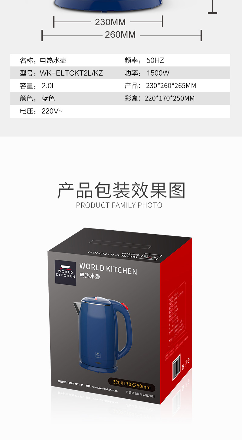 WORLD KITCHEN美国康宁电热水壶WK-ELTCKT2L/KZ