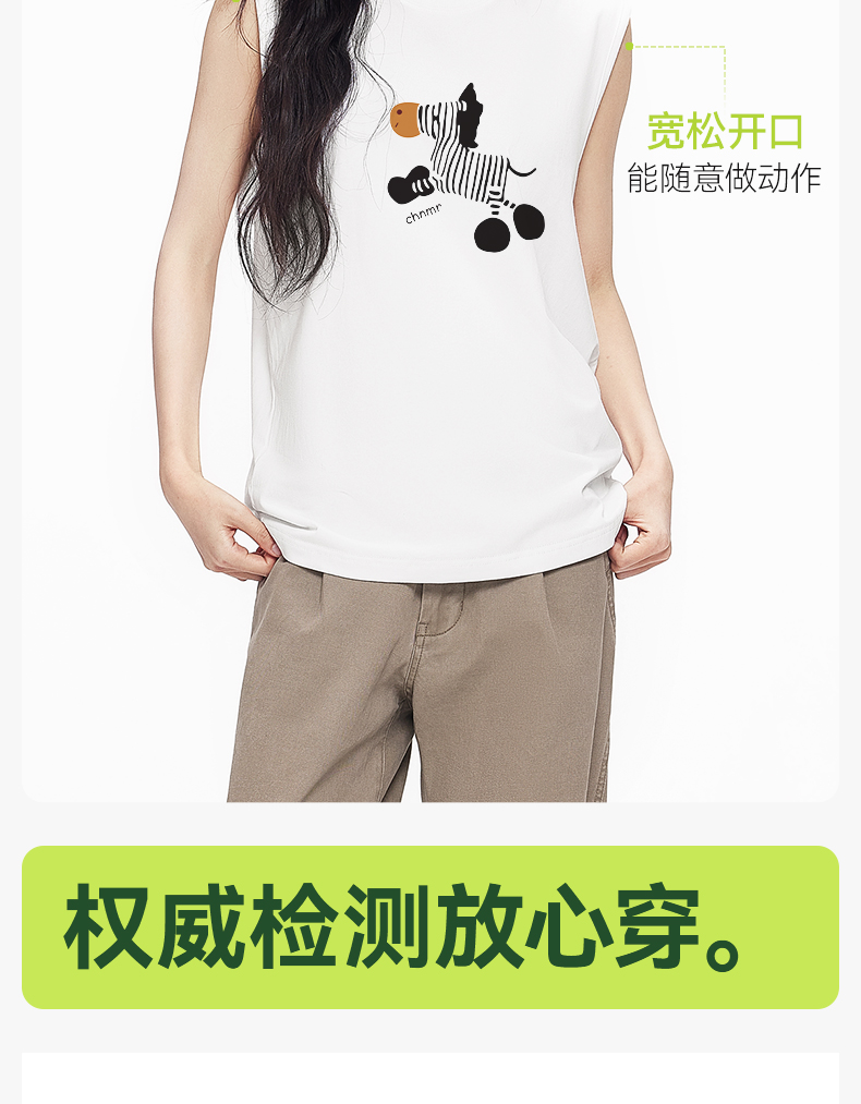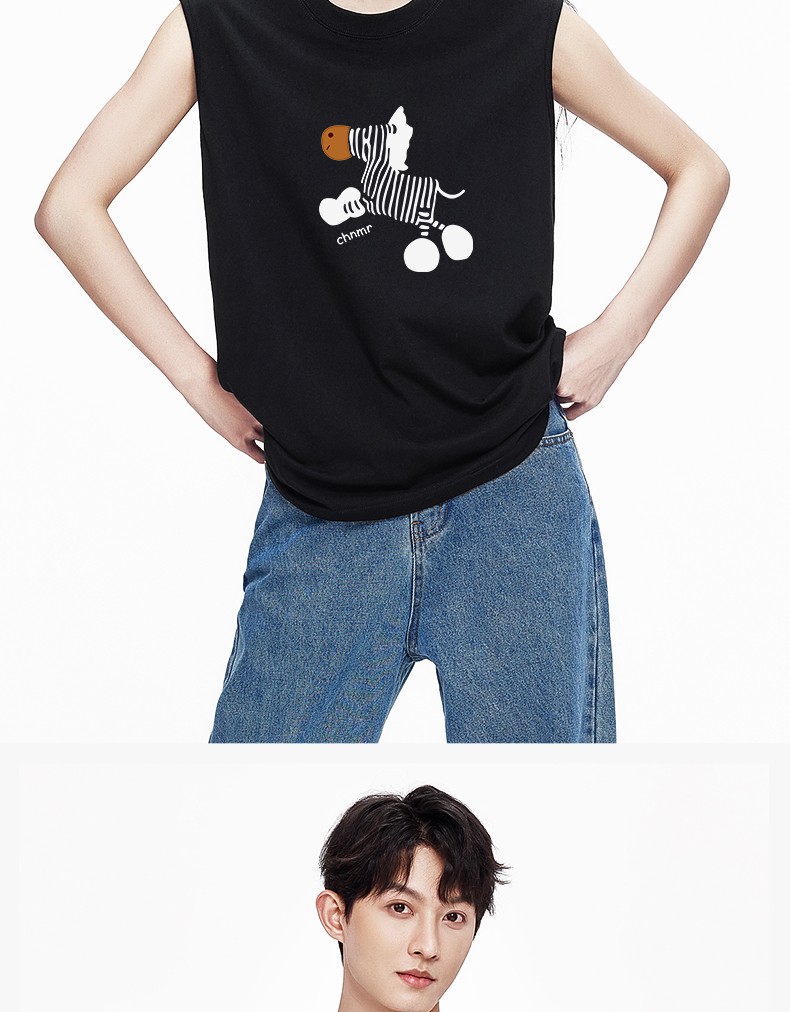 「棉的美学」夏季清爽纯棉坎肩背心印花款运动透气宽松无袖T恤