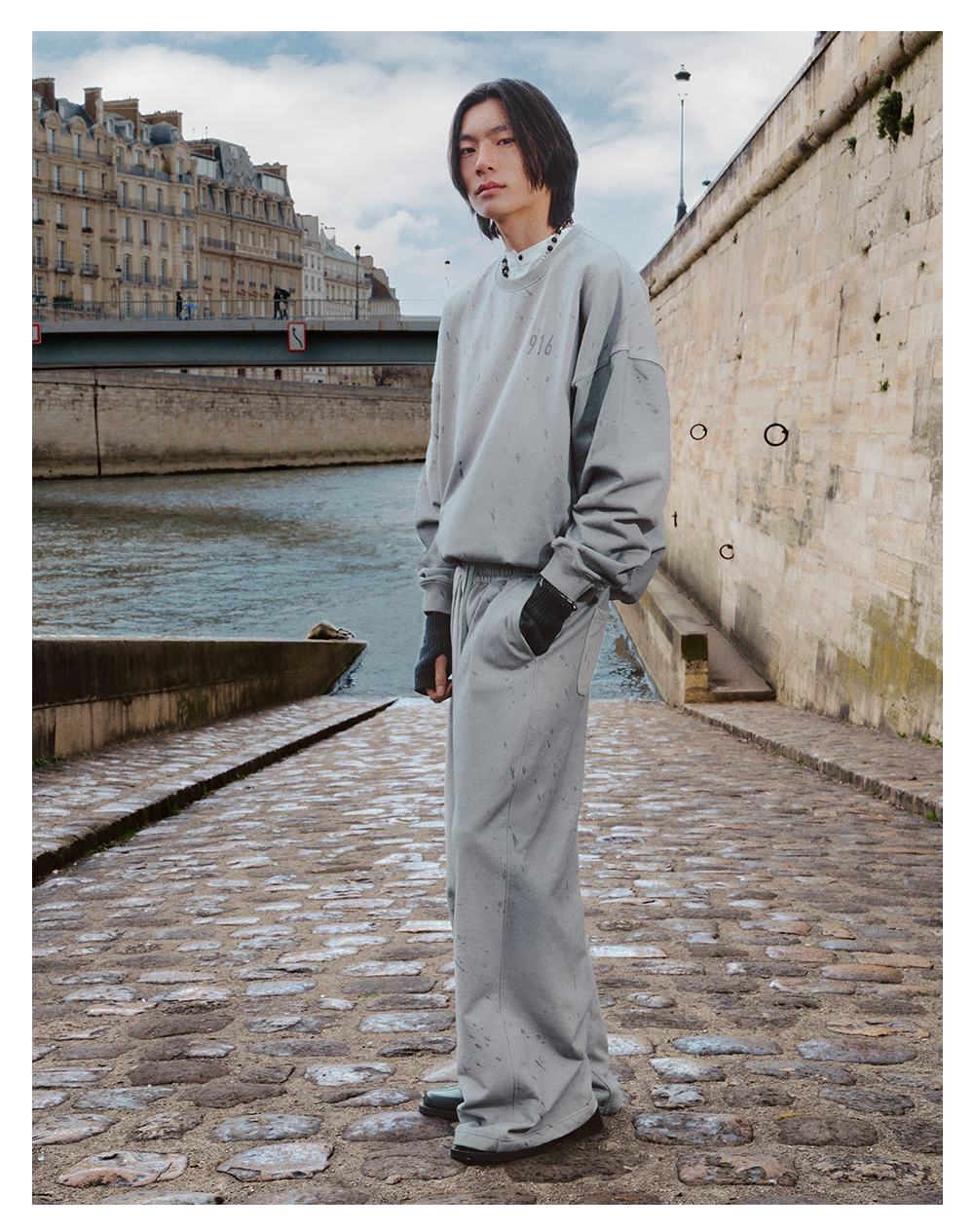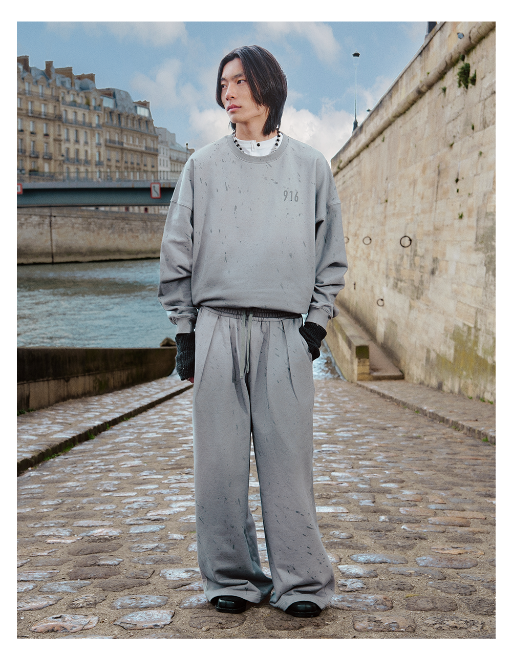 GOODBAI 916 logo印花泼墨渐变圆领oversize长袖卫衣