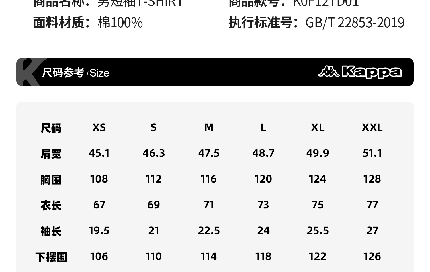 Kappa卡帕背靠背男款运动短袖t恤夏季纯棉圆领球衣休闲半袖上衣潮K0F12TD01