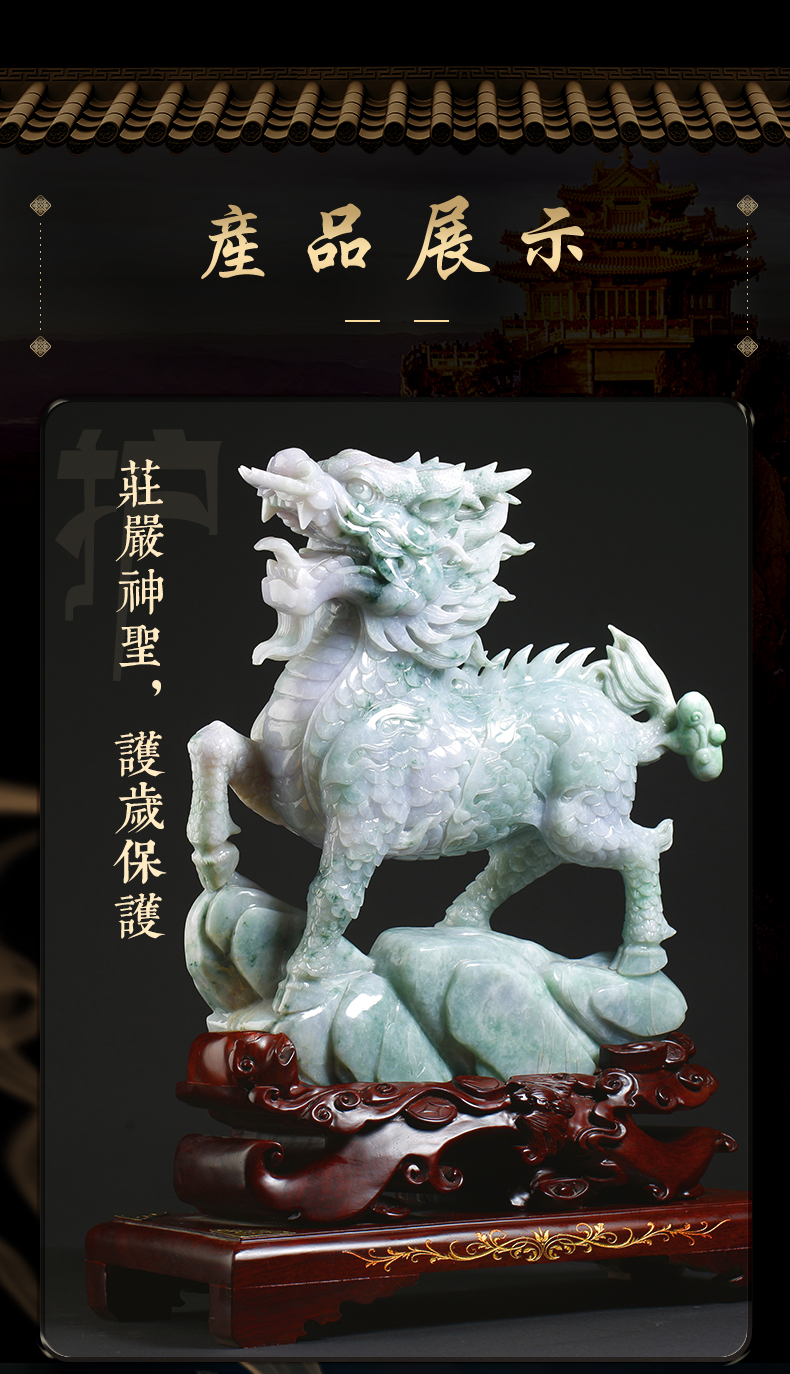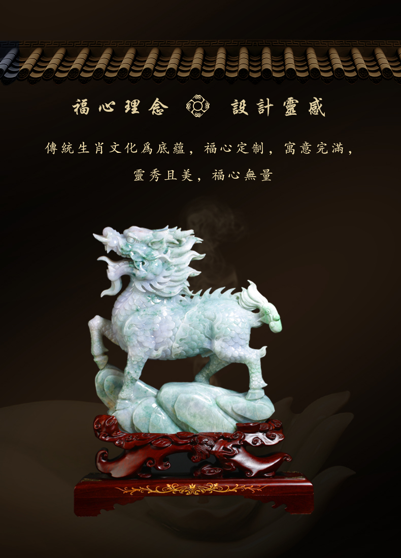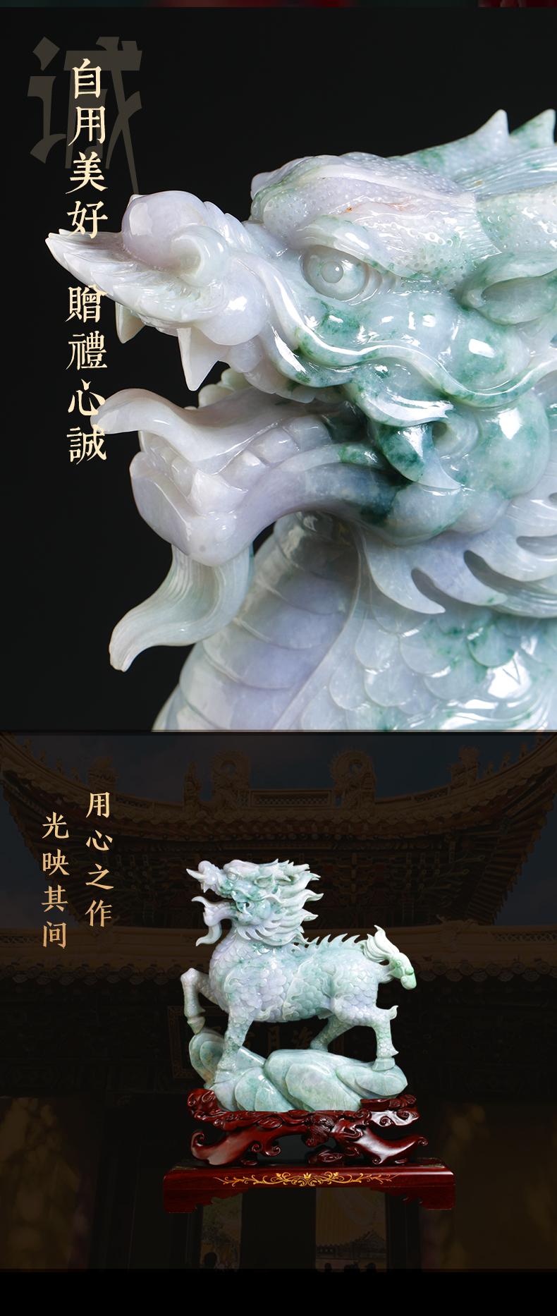 慈元阁定制龙骧麟振翡翠麒麟摆件家居办公客厅装饰品摆设开业礼品