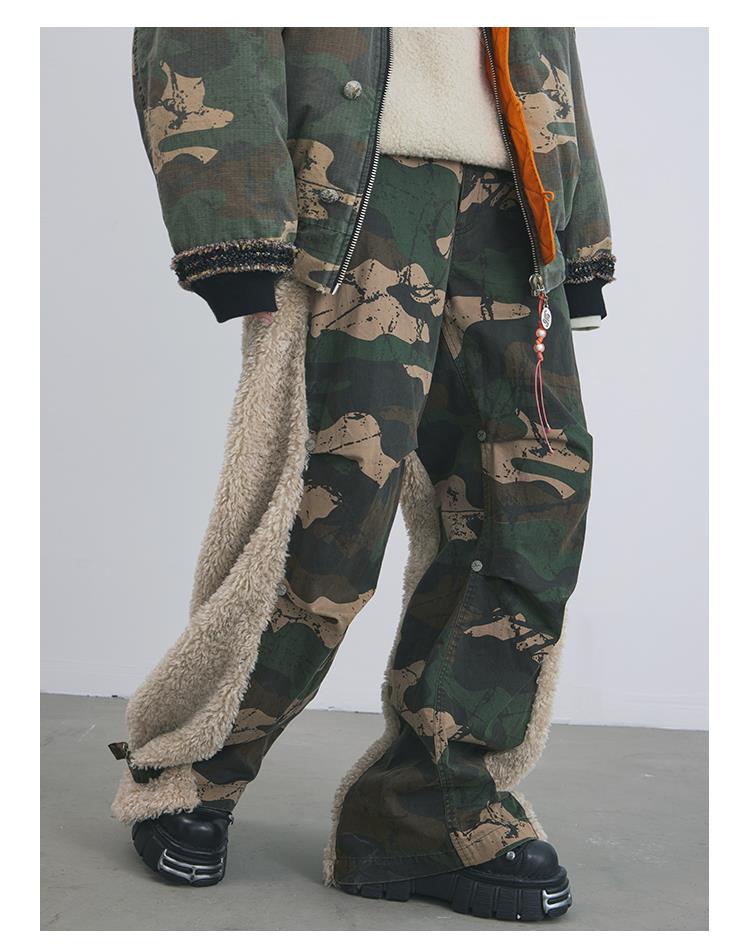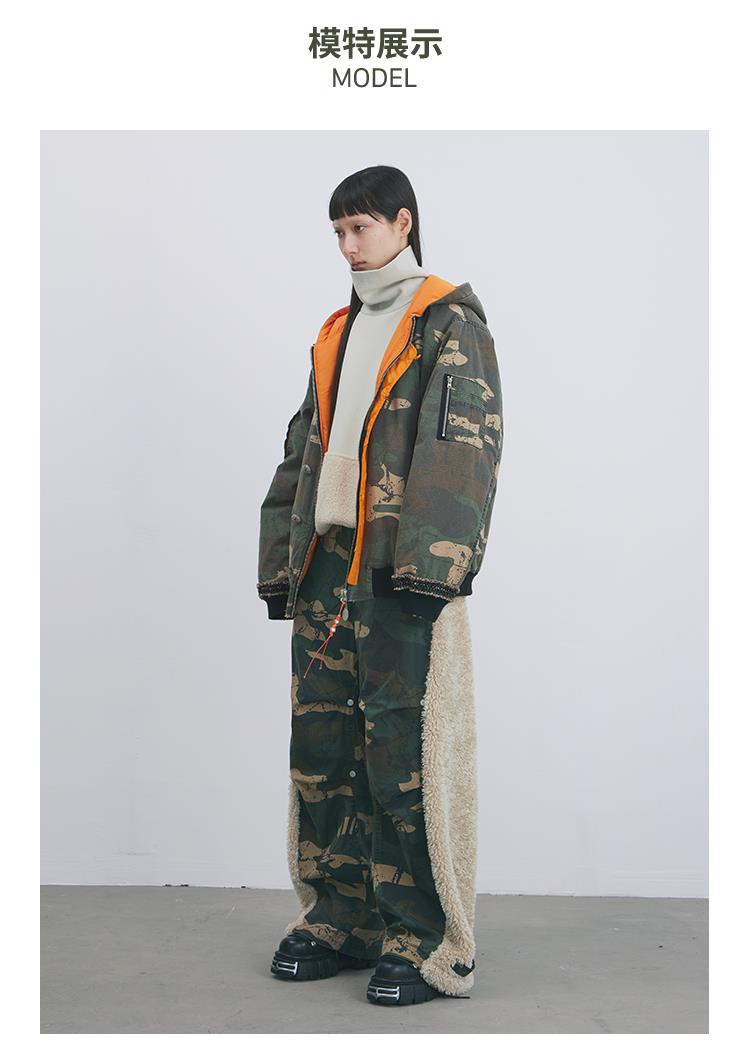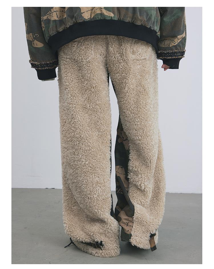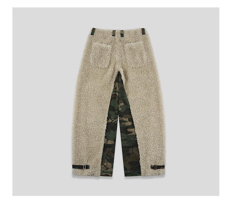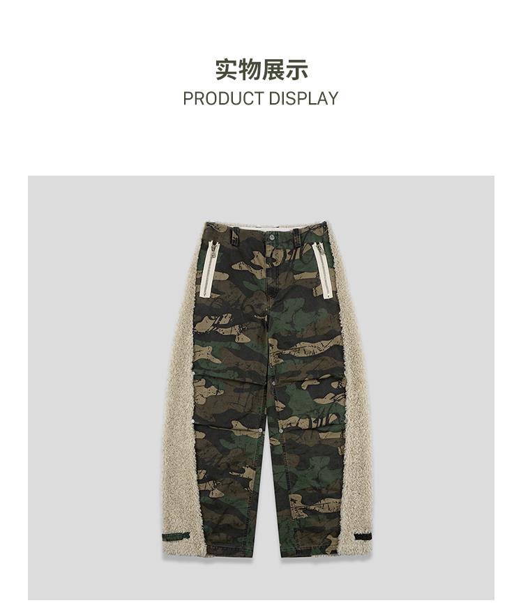 GOODBAI 916 迷彩拼接仿羊驼绒刺绣工装直筒休闲裤