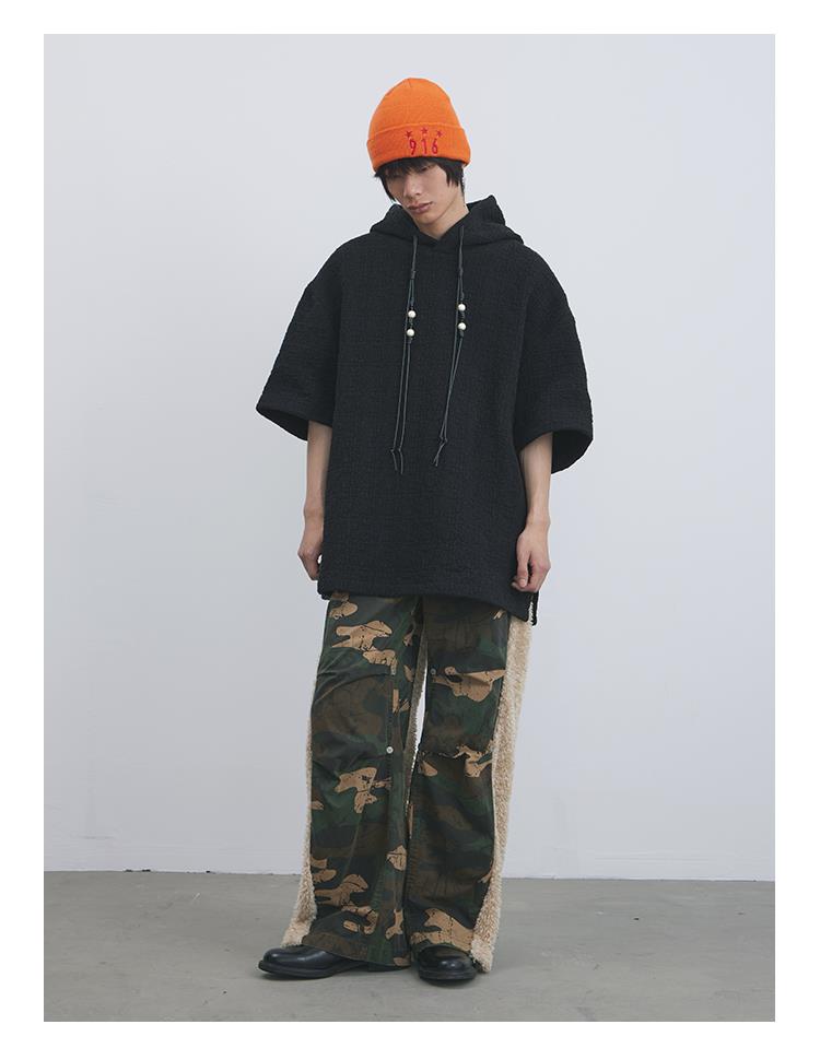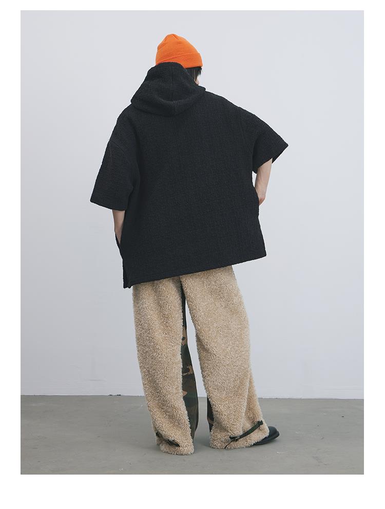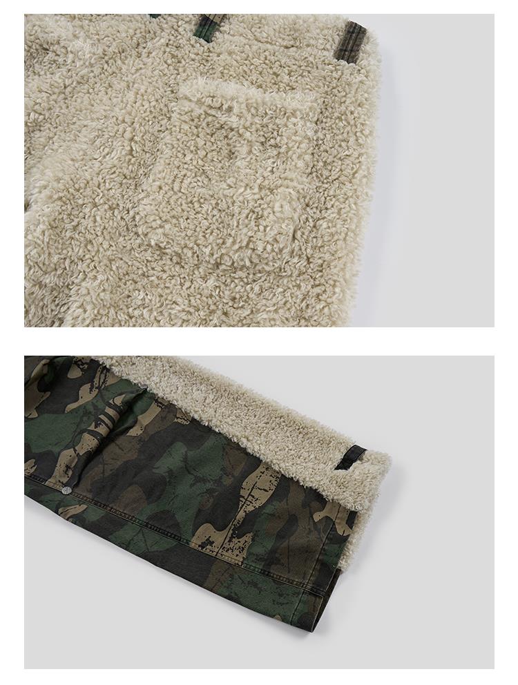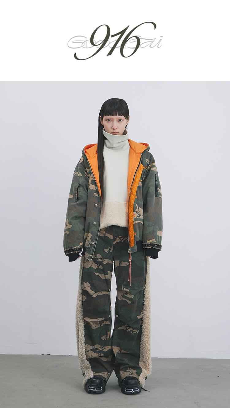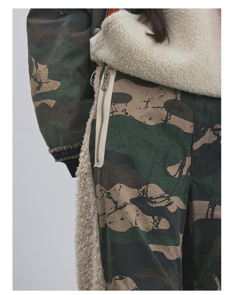 GOODBAI 916 迷彩拼接仿羊驼绒刺绣工装直筒休闲裤