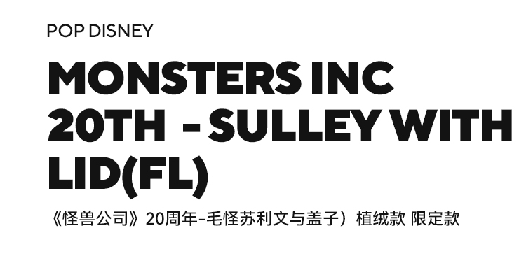Funko POP Disney Monsters Inc 20th Sulley with Lid(FL)动画 迪士尼怪兽公司20周年毛怪苏利文与盖子植绒限定款手办 58754