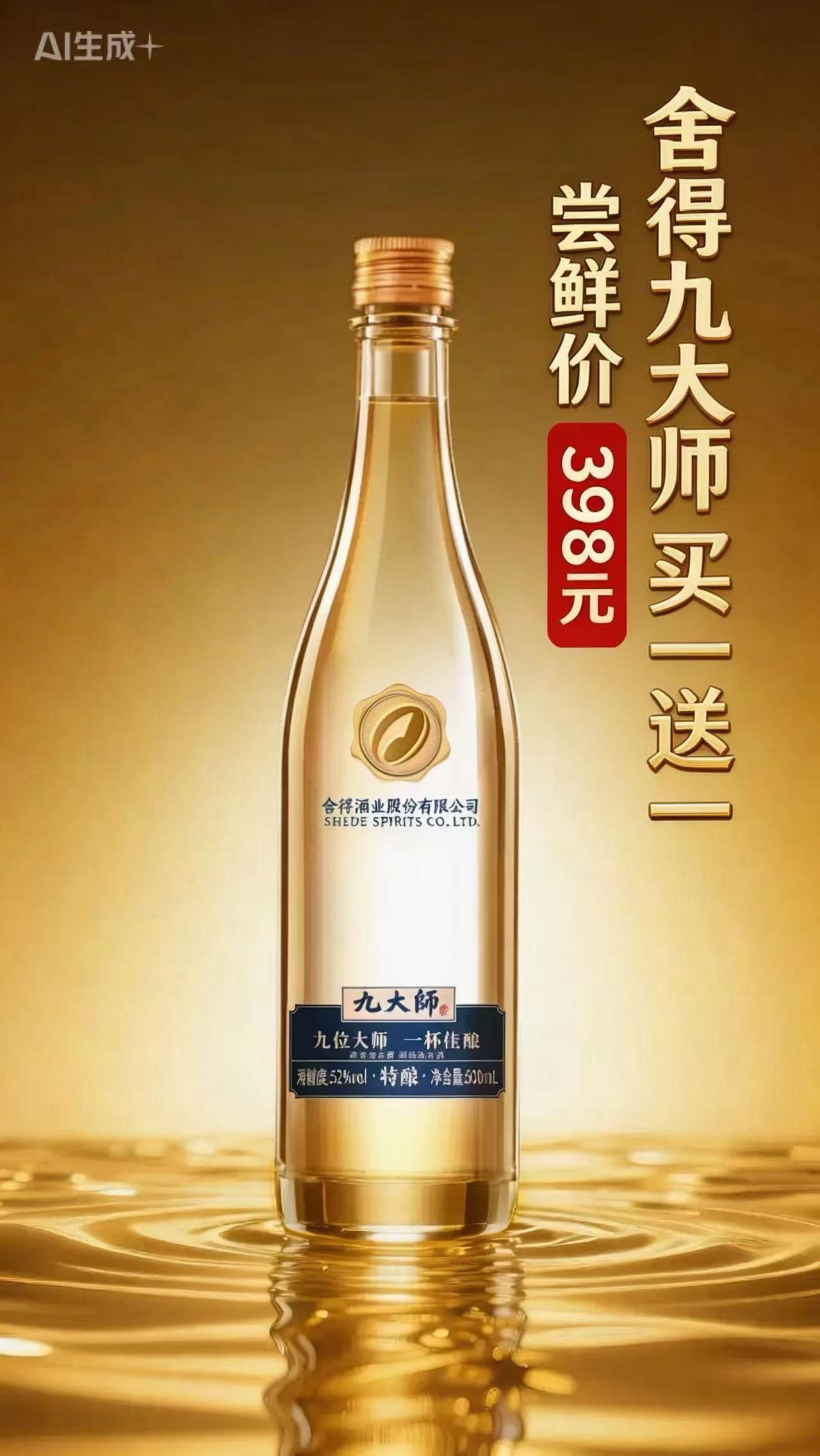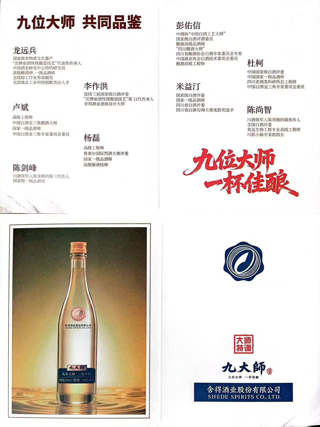 【高端浓香】舍得 九大师 浓香型白酒 52度 500ml单瓶装