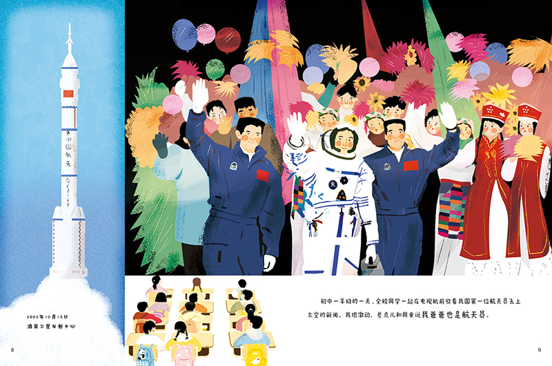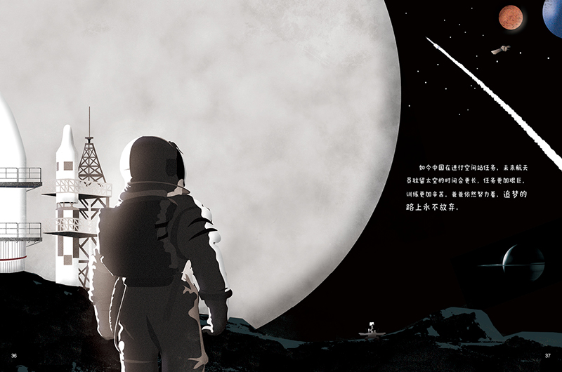 《爸爸的秘密》这本书,通过精美的插图,讲述了两代航天人逐梦航天的故事,并介绍了航天员的日常训练,以及历年的航天任务。激发了小朋友们对神秘太空的好奇心,开阔了他们的航天眼界。