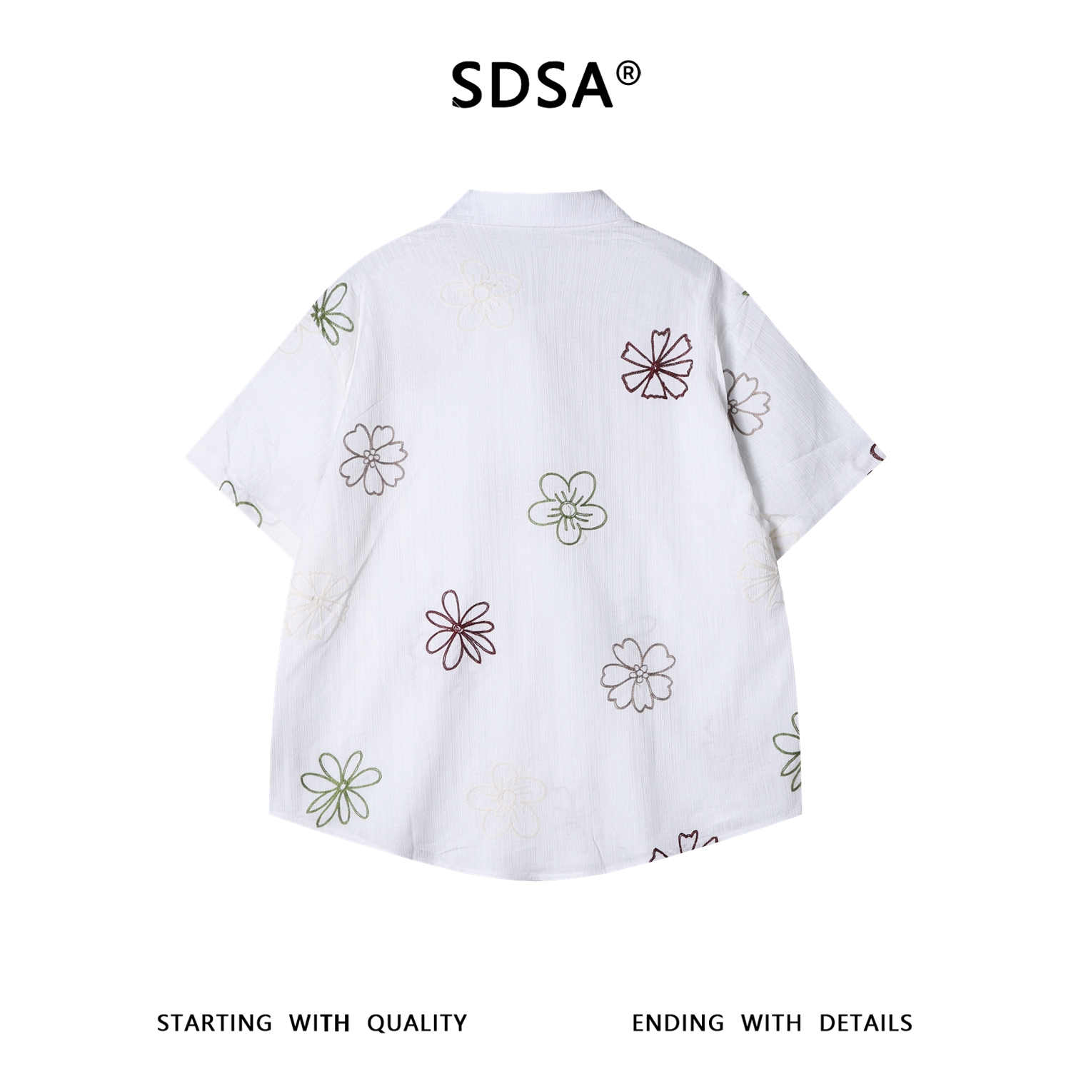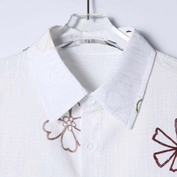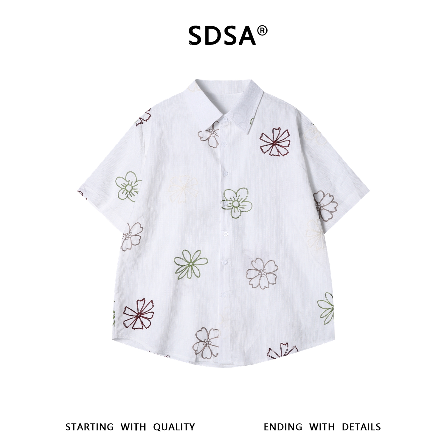 SDSA男装2026新款轻奢韩版复古彩色花卉刺绣竖条短袖衬衫百搭宽松