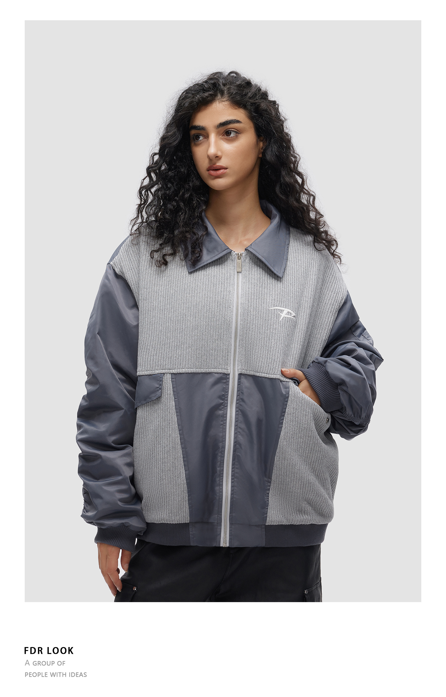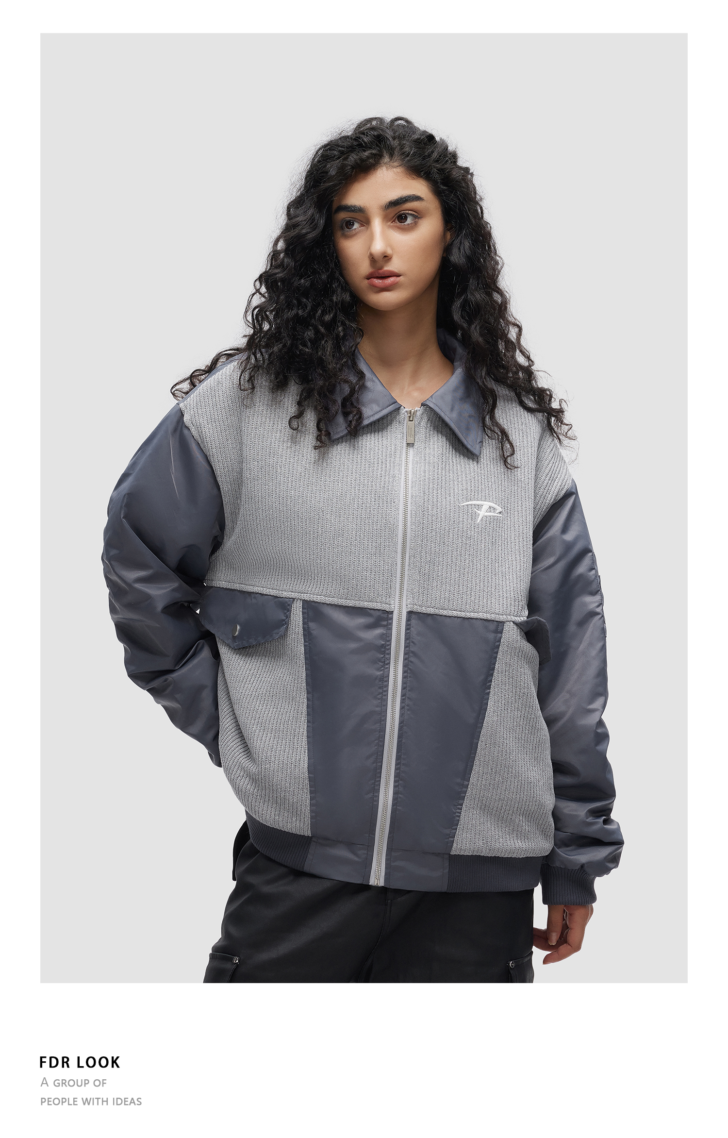 FDR 原创国潮新款毛织拼接飞行夹克男女秋冬潮牌美式宽松情侣外套