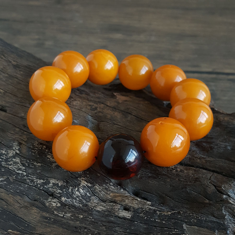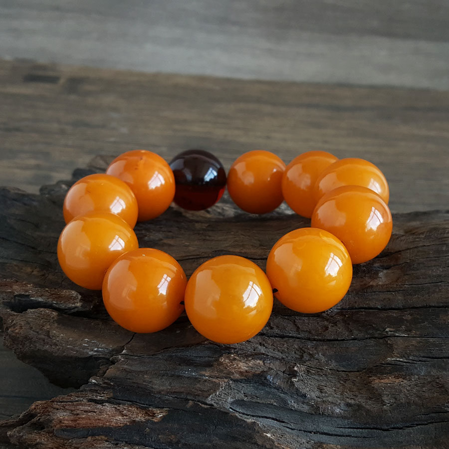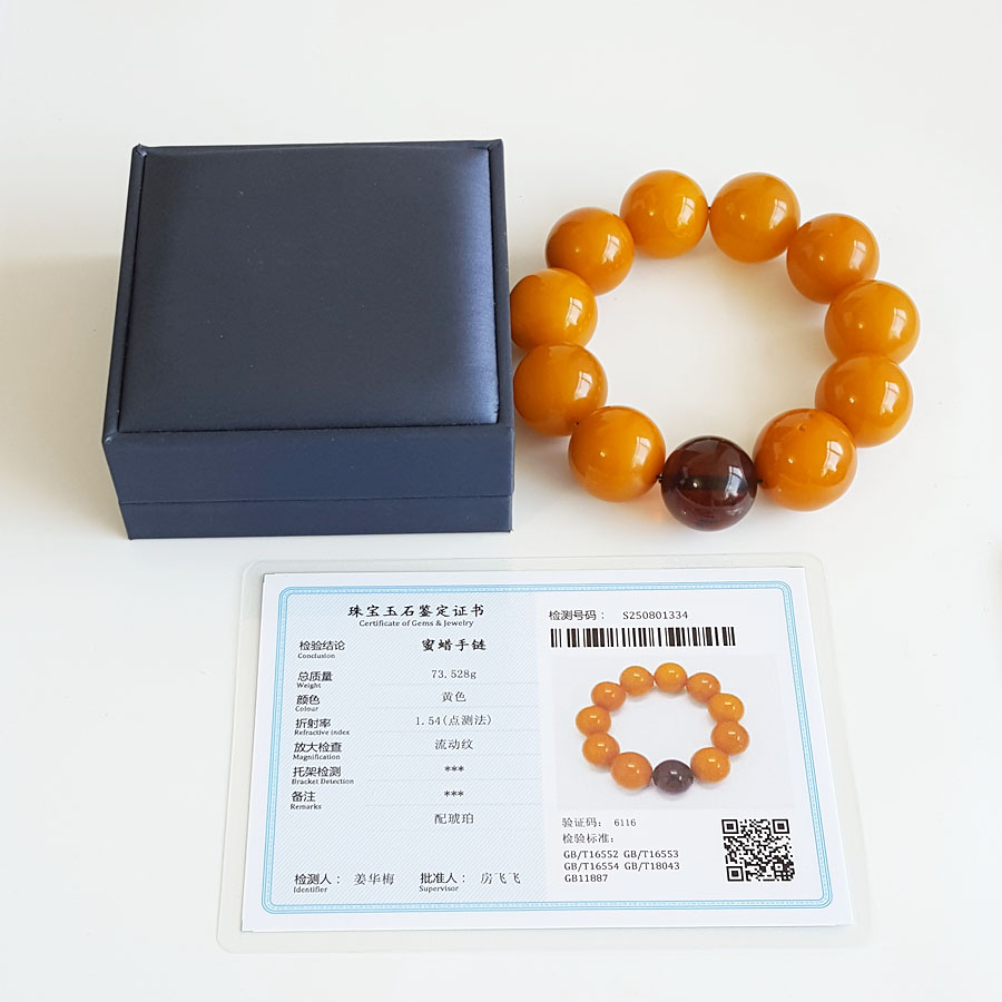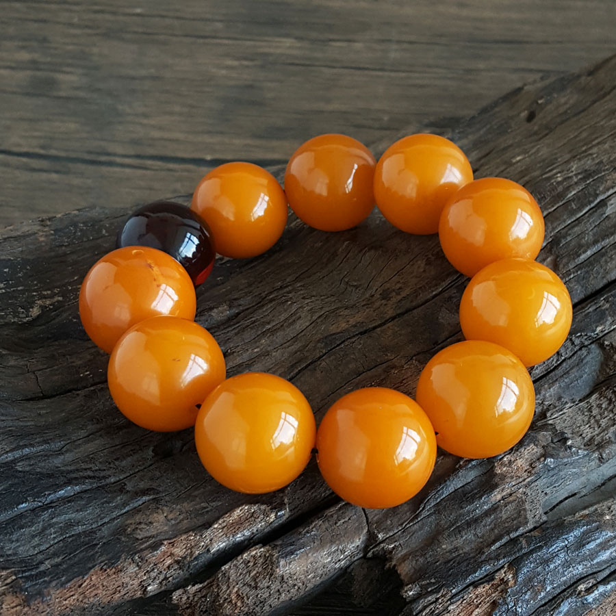 【天然正品】天然收藏级满蜜鸡油黄约23.0MM老蜜蜡配血珀单珠手串23.0MM(皆取最大值)男性现售价:5980!110825NJM03