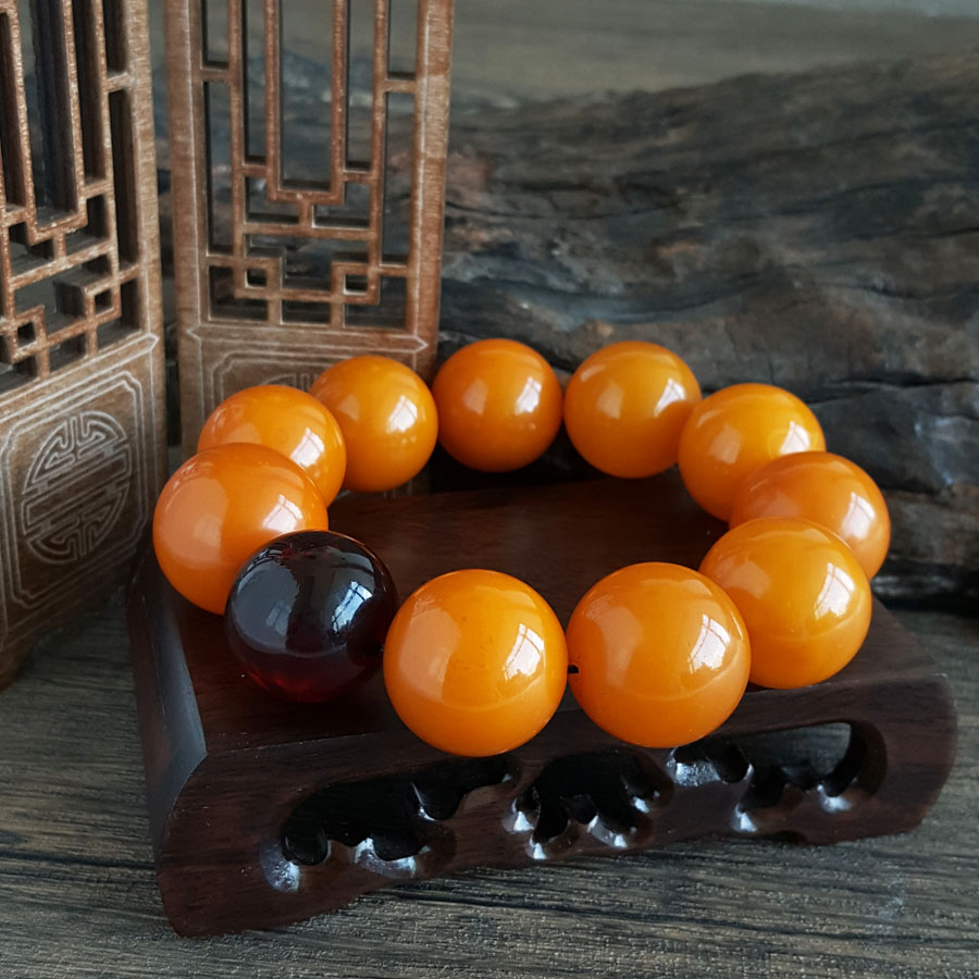名称 | 天然收藏级满蜜鸡油黄约23.0MM老蜜蜡配血珀单珠手串 |