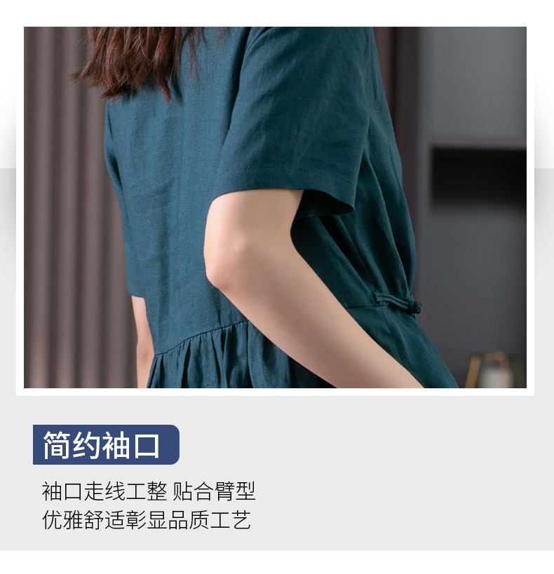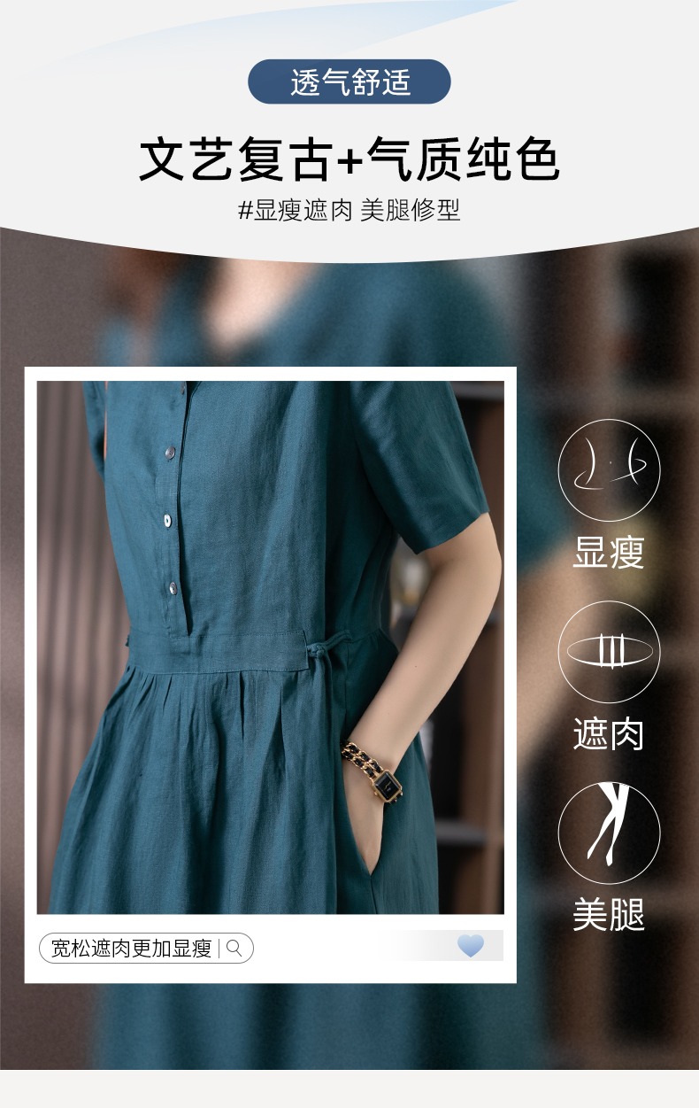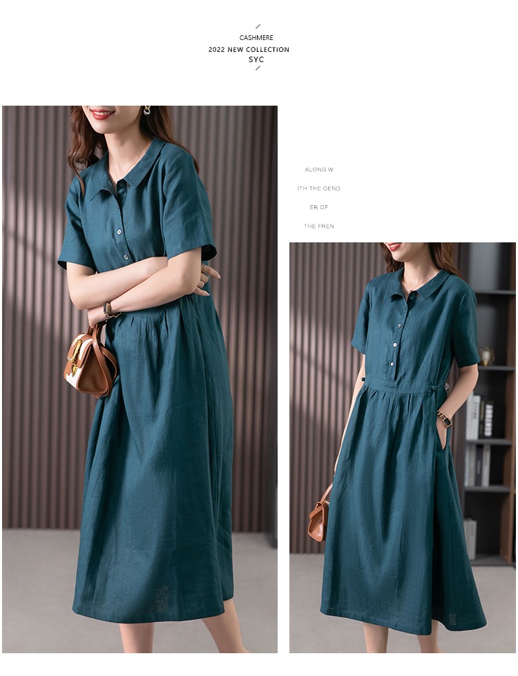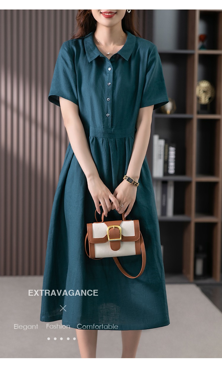 85835原形高级感亚麻连衣裙女夏季2024新款韩版短袖衬衫领文艺大摆长裙