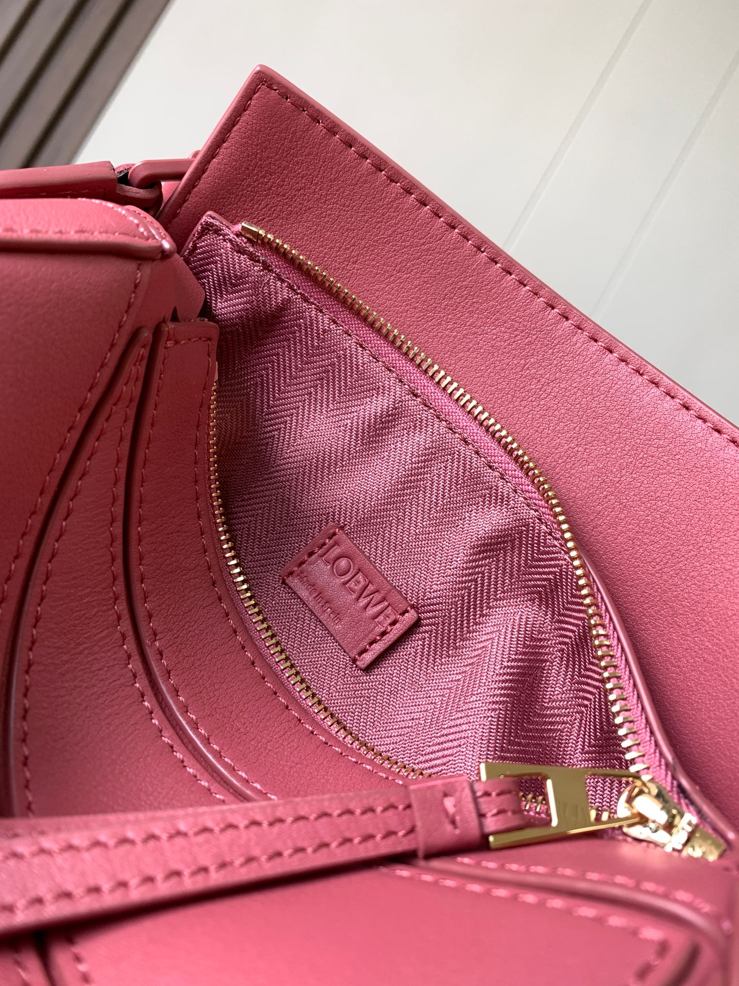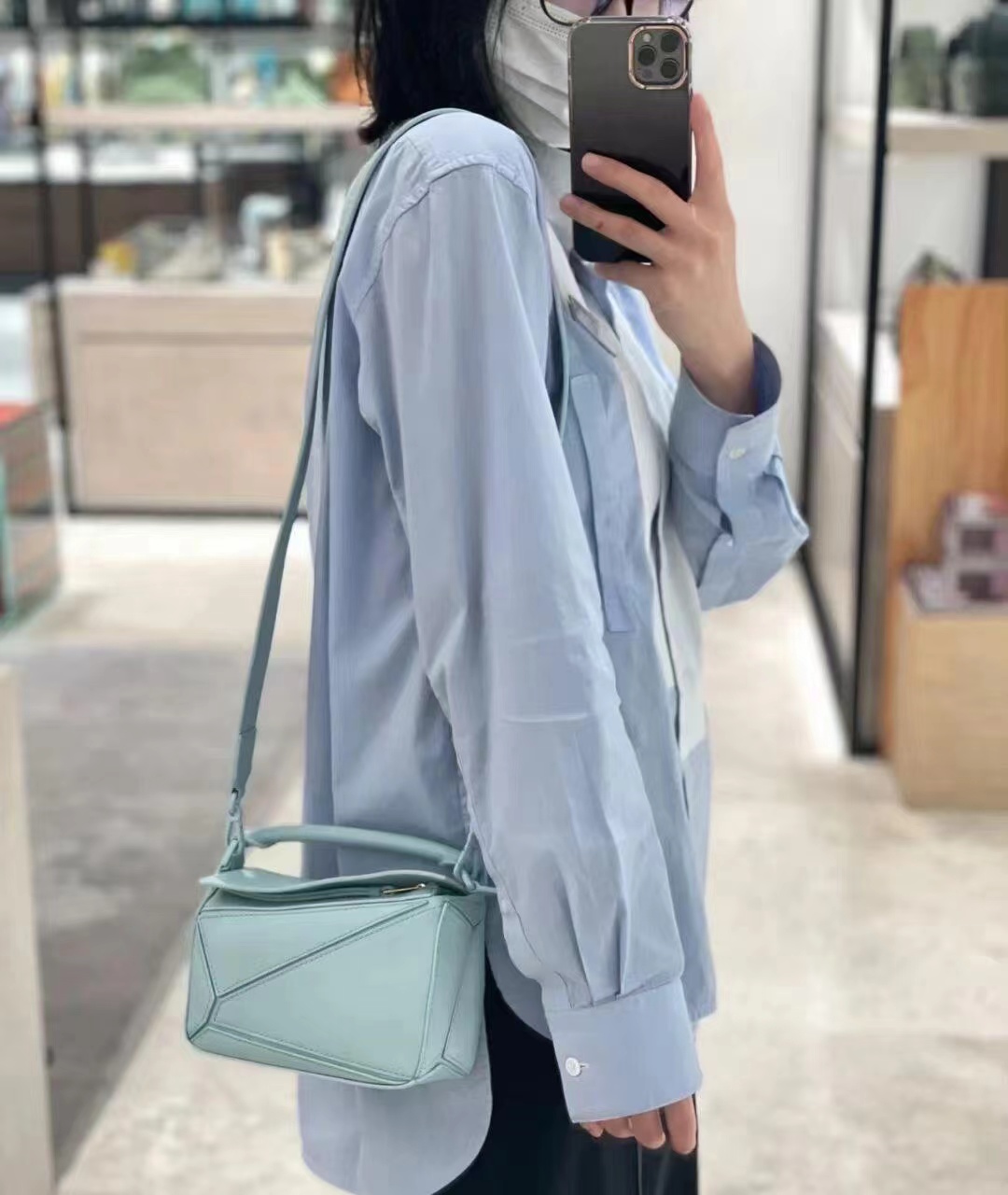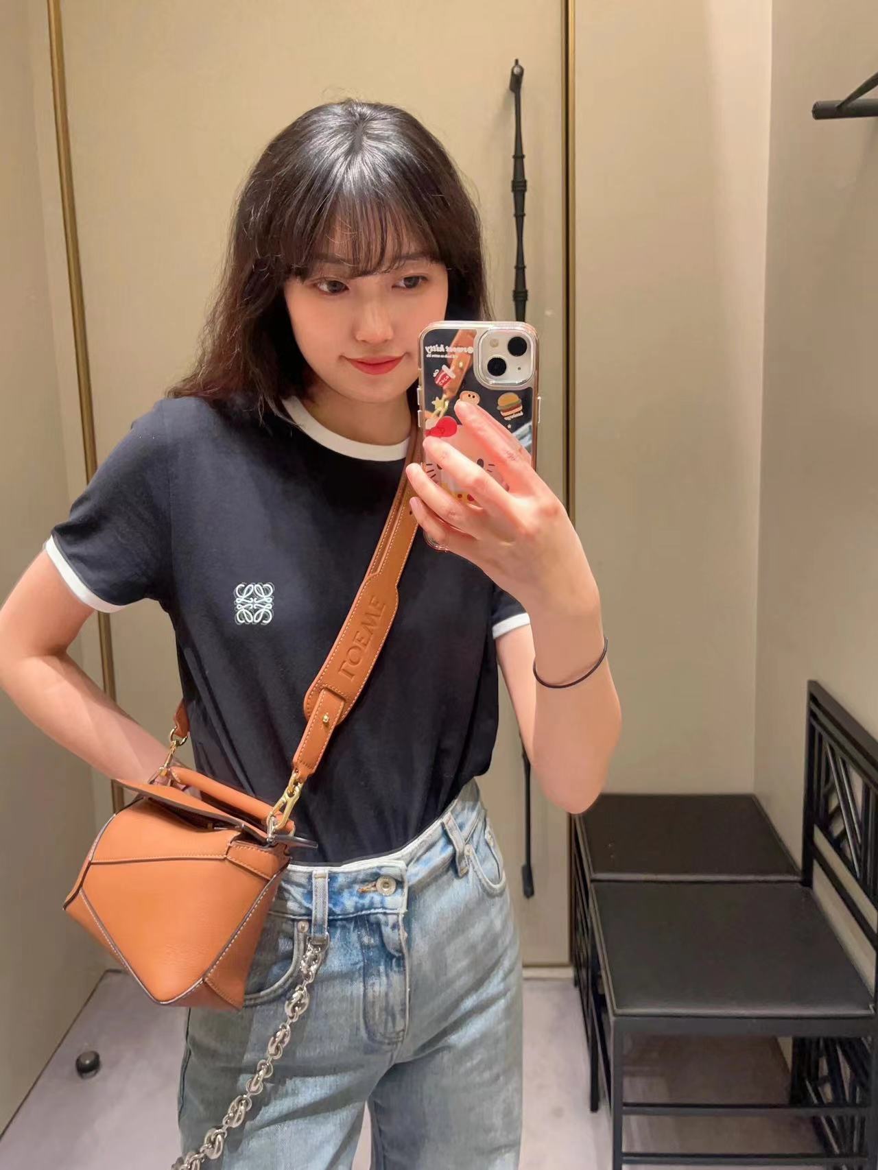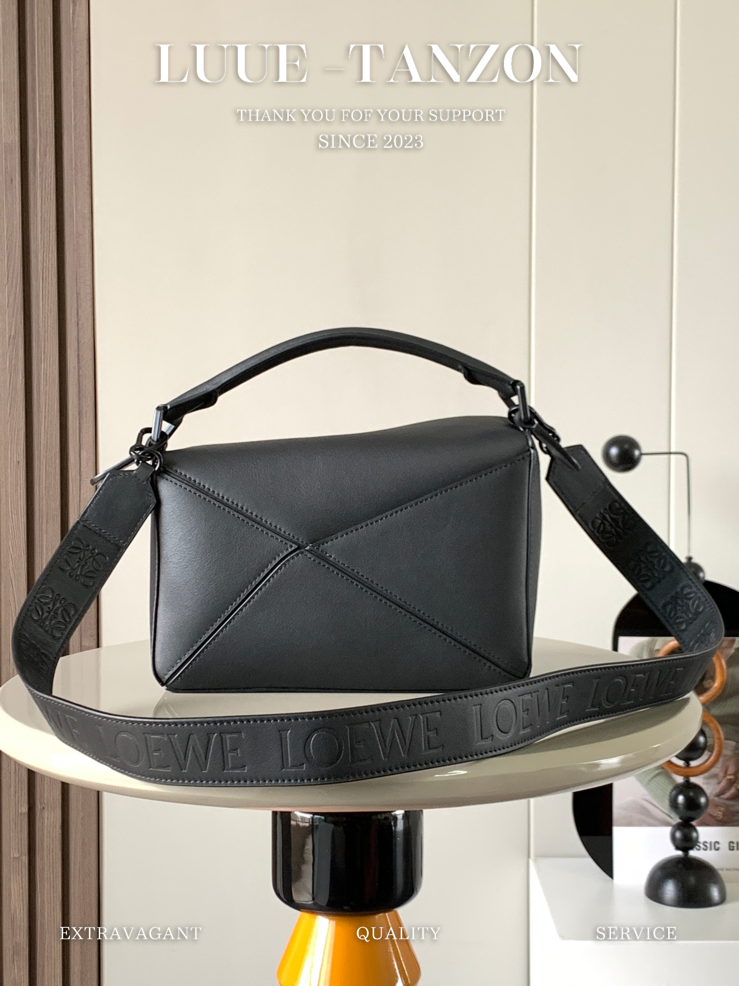 罗家爆款几何包 Puzzle 手袋是创意总监乔纳森·安德森为 L0EWE 推出的首款手提包 长方体形状和精确的切割技术创造了 Puzzle 独特的几何线条这个小尺寸版本采用柔软粒面牛皮革制成 小号可以容纳例如一只大号钱包、所有尺寸的手机和太阳镜 斜挎、肩背、手拿或顶部提手携带*可拆卸肩带 不一样的粗肩带,印有 L0EWE 字样的肩带,金属扣位置采用了与包包同一色系 让包包更加时尚,整体依然保持包包很轻的重量 十分耐用,轻便,能装很多东西,适合上班,旅游