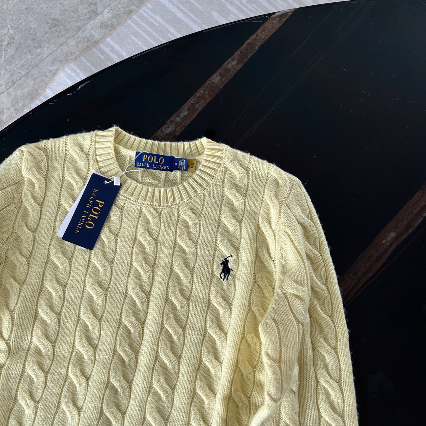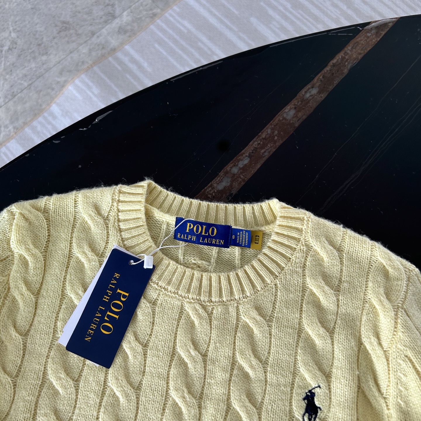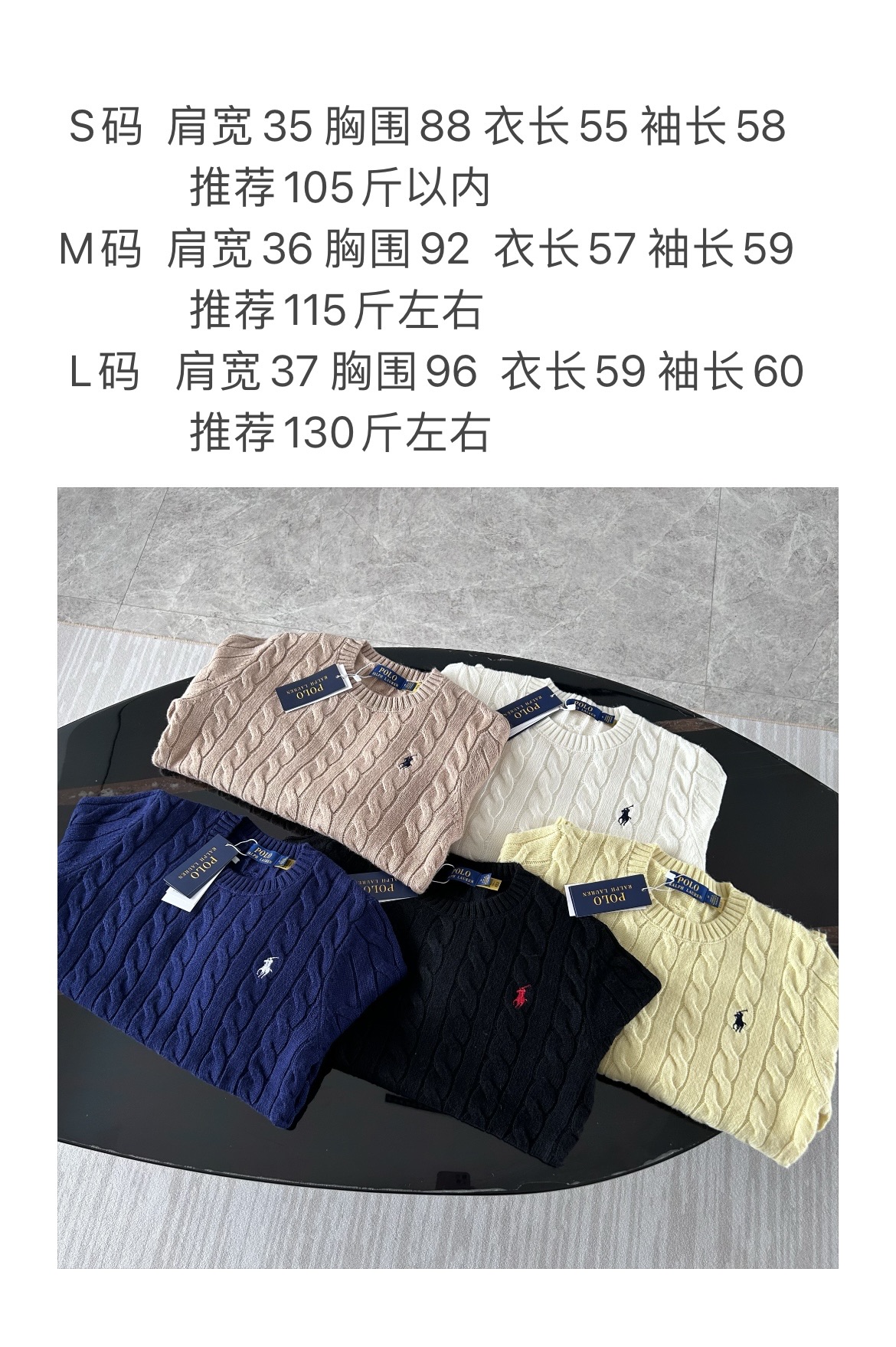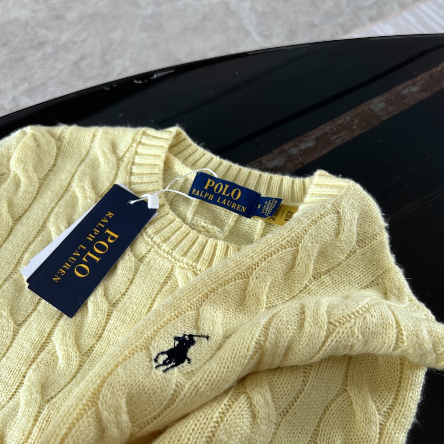 📌上新❤️ 拉夫劳伦 Polo女士纽花毛衣 百年经典款 复古麻花圆领 90%羊毛 10%羊绒 手感软糯 吸湿透气 简单精致 又不失时尚略微宽松的版型 微弹可拉伸 上身无束缚感 5️⃣个颜色 黑色 蓝色 鹅黄 白色 卡其 码数S M L