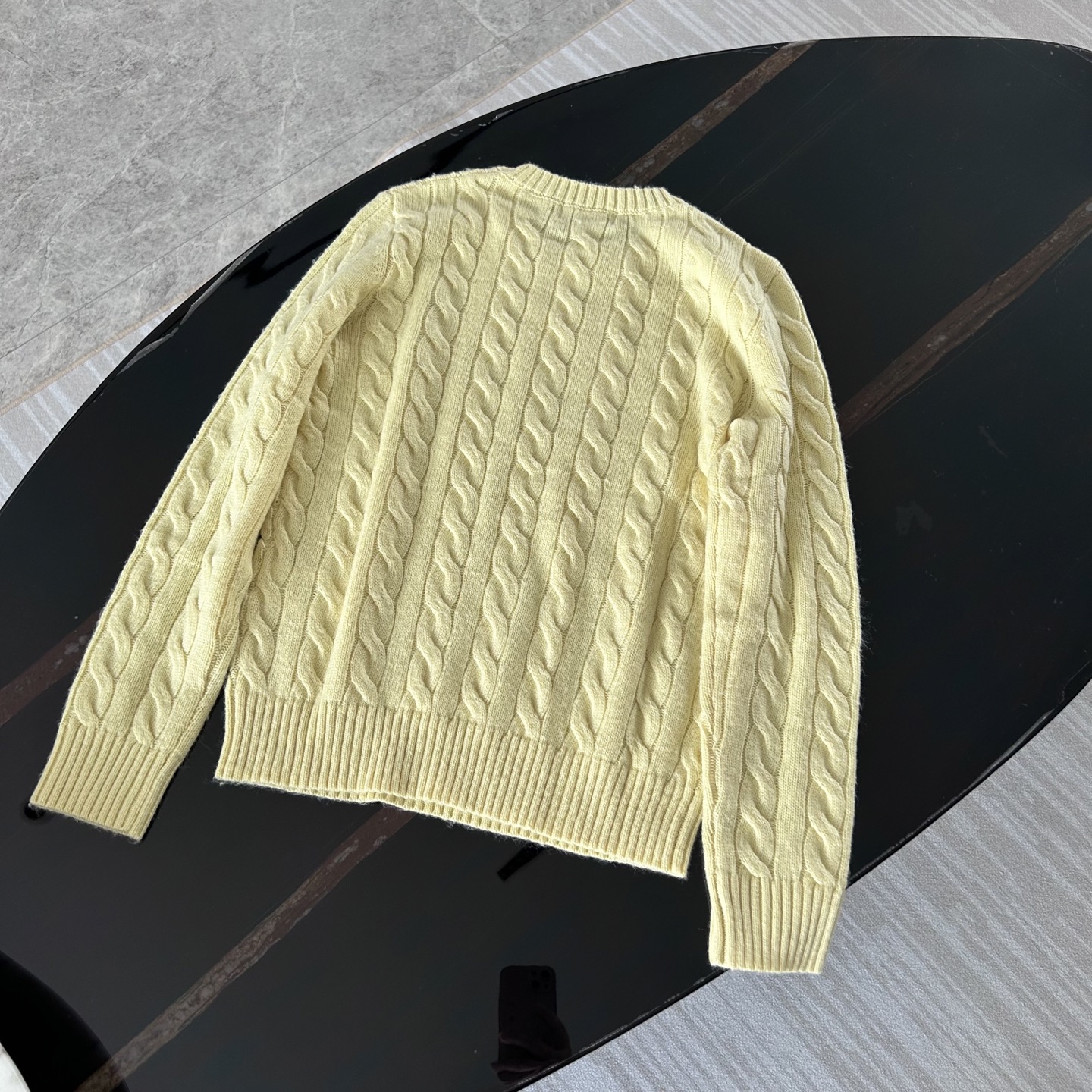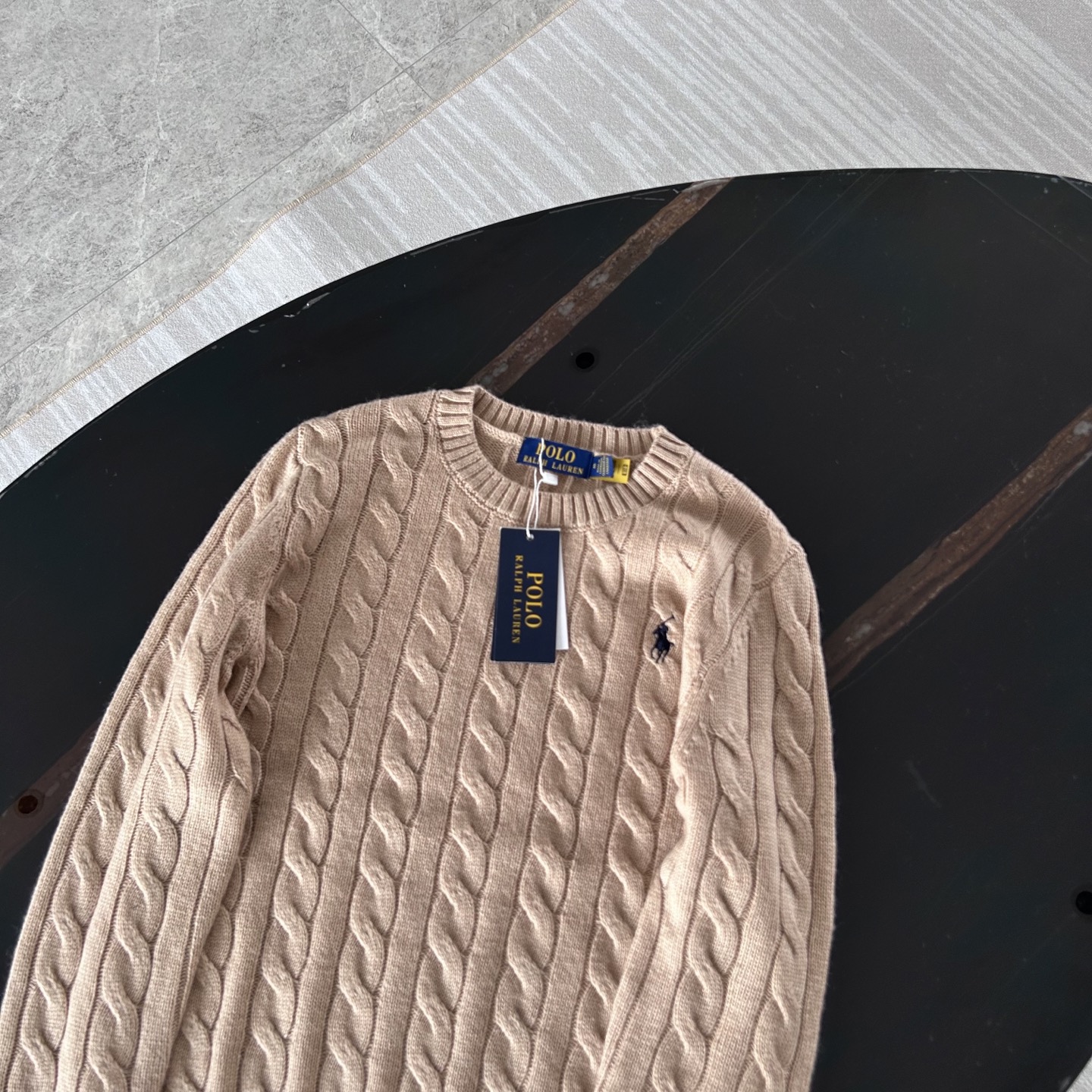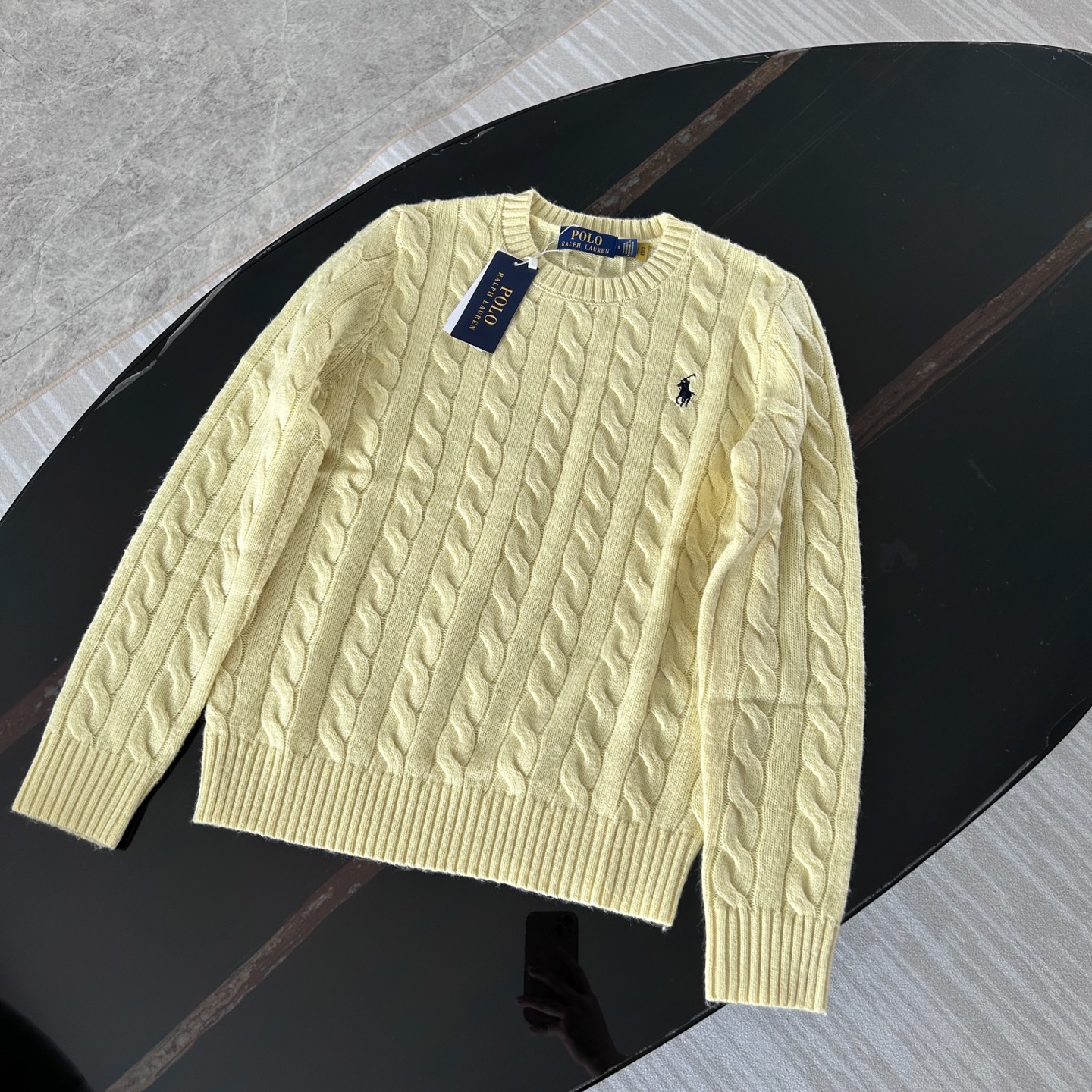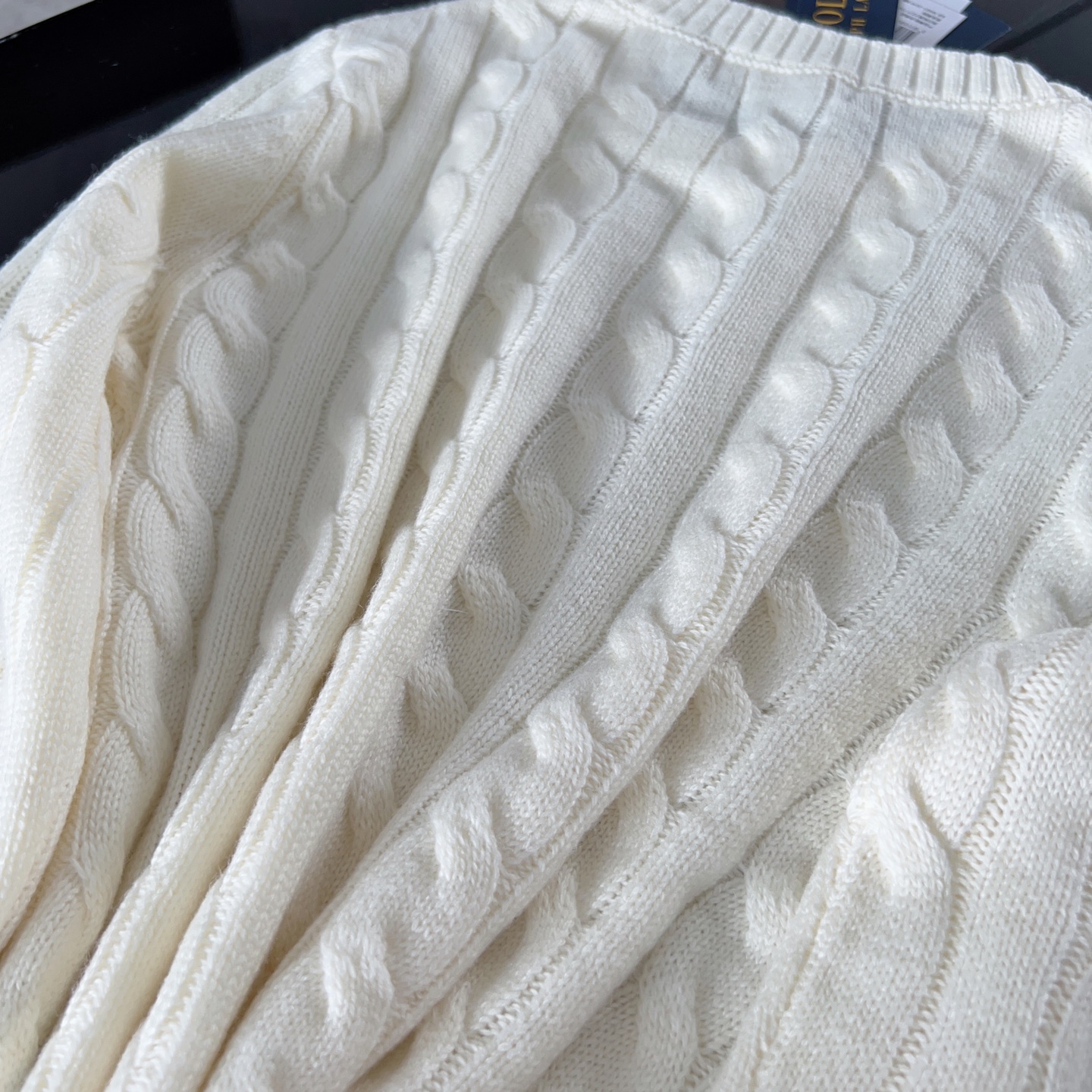 📌上新❤️ 拉夫劳伦 Polo女士纽花毛衣 百年经典款 复古麻花圆领 90%羊毛 10%羊绒 手感软糯 吸湿透气 简单精致 又不失时尚略微宽松的版型 微弹可拉伸 上身无束缚感 5️⃣个颜色 黑色 蓝色 鹅黄 白色 卡其 码数S M L