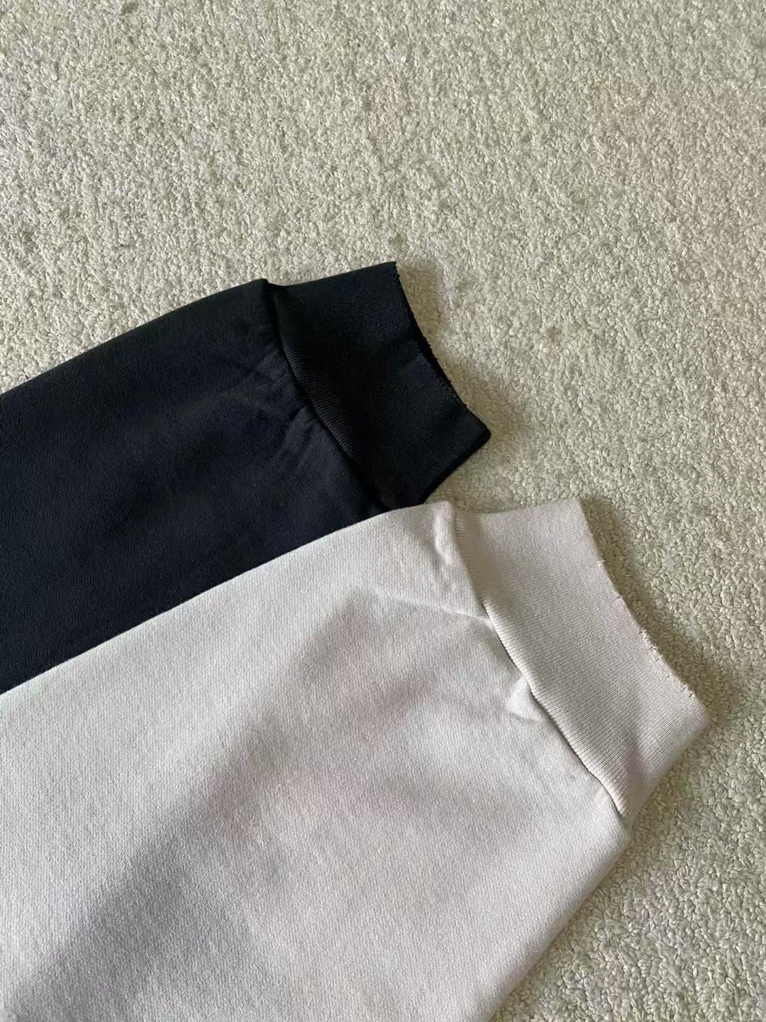 面料采用26S双纱+10S鱼鳞底磨毛面料,380g;搭配32S双纱螺纹,3500g。纯棉质鱼鳞底卫衣面料具有特殊纹理和优良性能的针织面料,纯棉材质保证了面料的柔软性、透气性和吸湿性;鱼鳞底结构增加了面料的弹性和抗皱性。