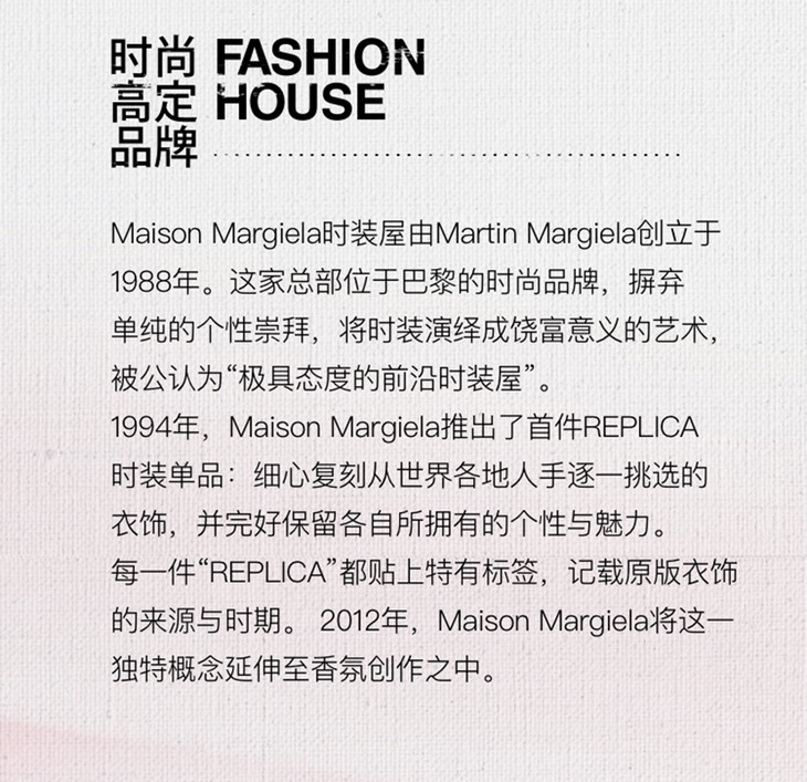 品牌名称: Maison Margiela 梅森马吉拉 品牌发源地:法国