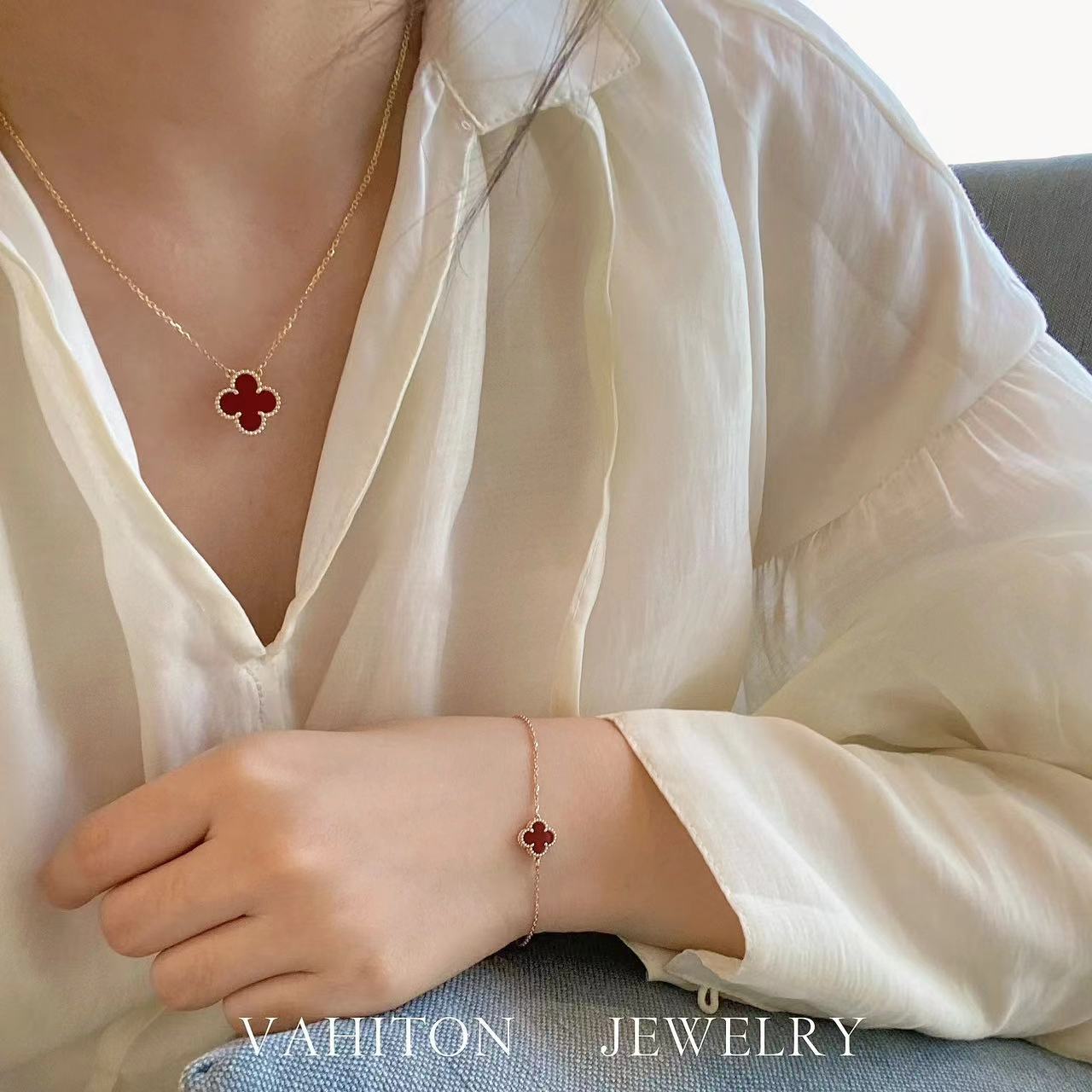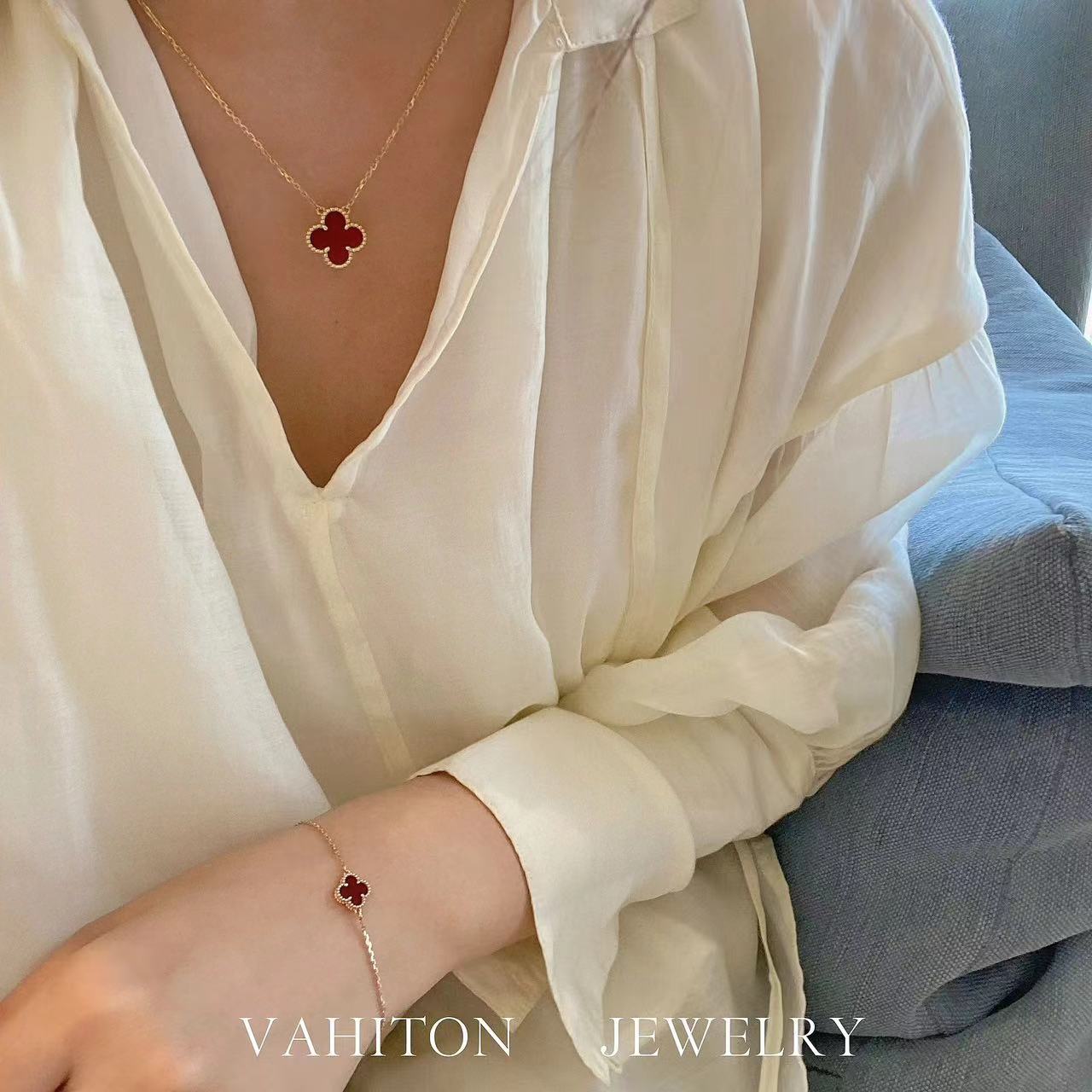 V金咪金高版本155V金镀咪金 😊😊VCA Cleef&Arls 迷你高级红玛瑙四叶草手链🍀🍀🍀四叶草 此系列设计灵动,线条流畅,易于佩戴。展现无限搭配的可能,为每一位女性的生活带来丰富多样的风姿。