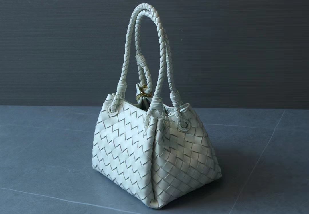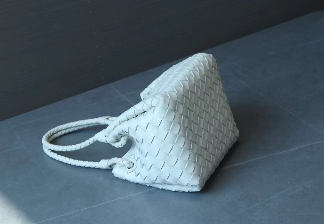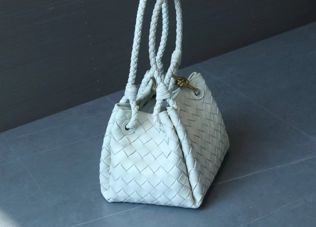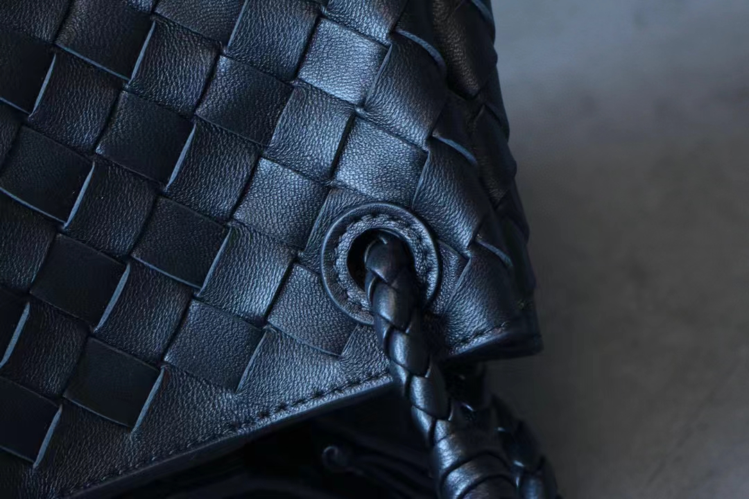 降落伞包延续了BV品牌经典的编织工艺,采用皮革条相互交织的方式,呈现出细腻而精致的纹理。这种编织工艺不仅展现了品牌的高超手工艺水平,还为包包增添了独特的视觉效果和质感。