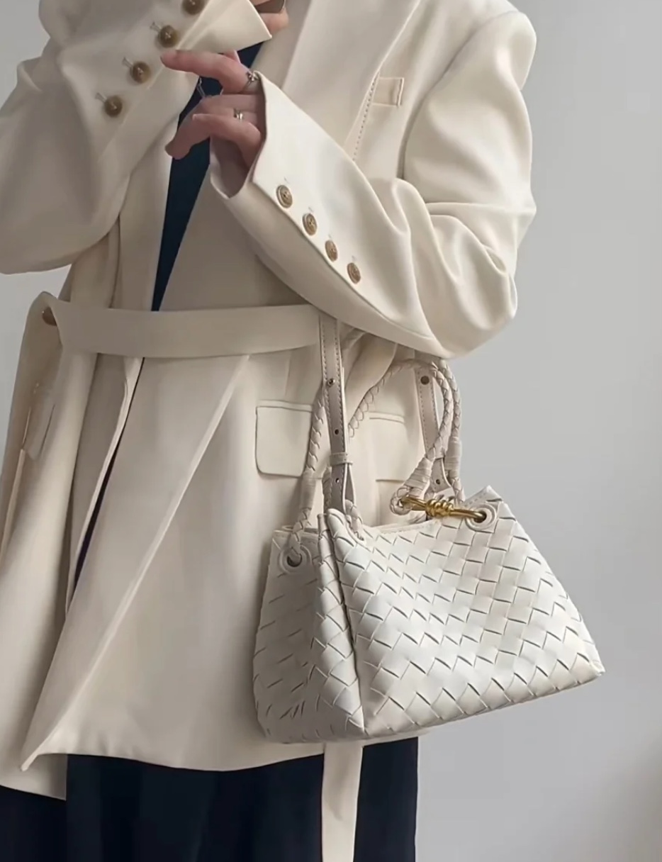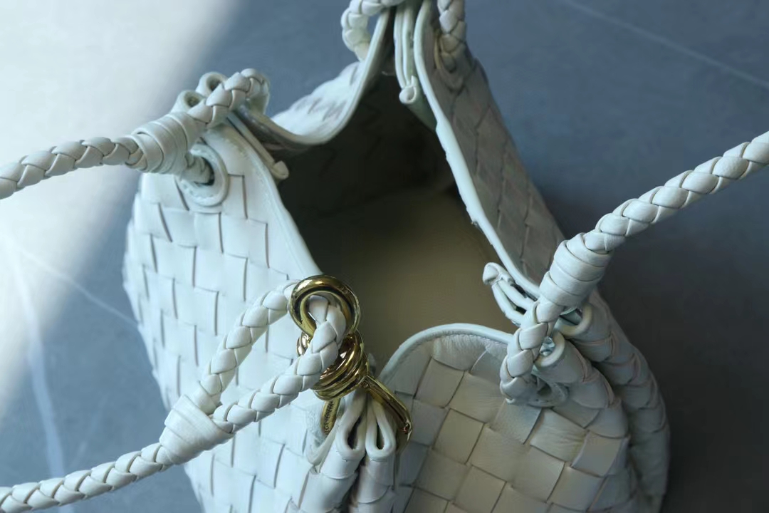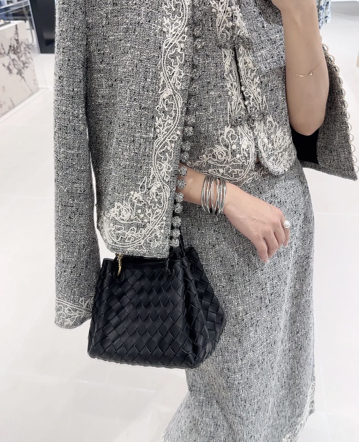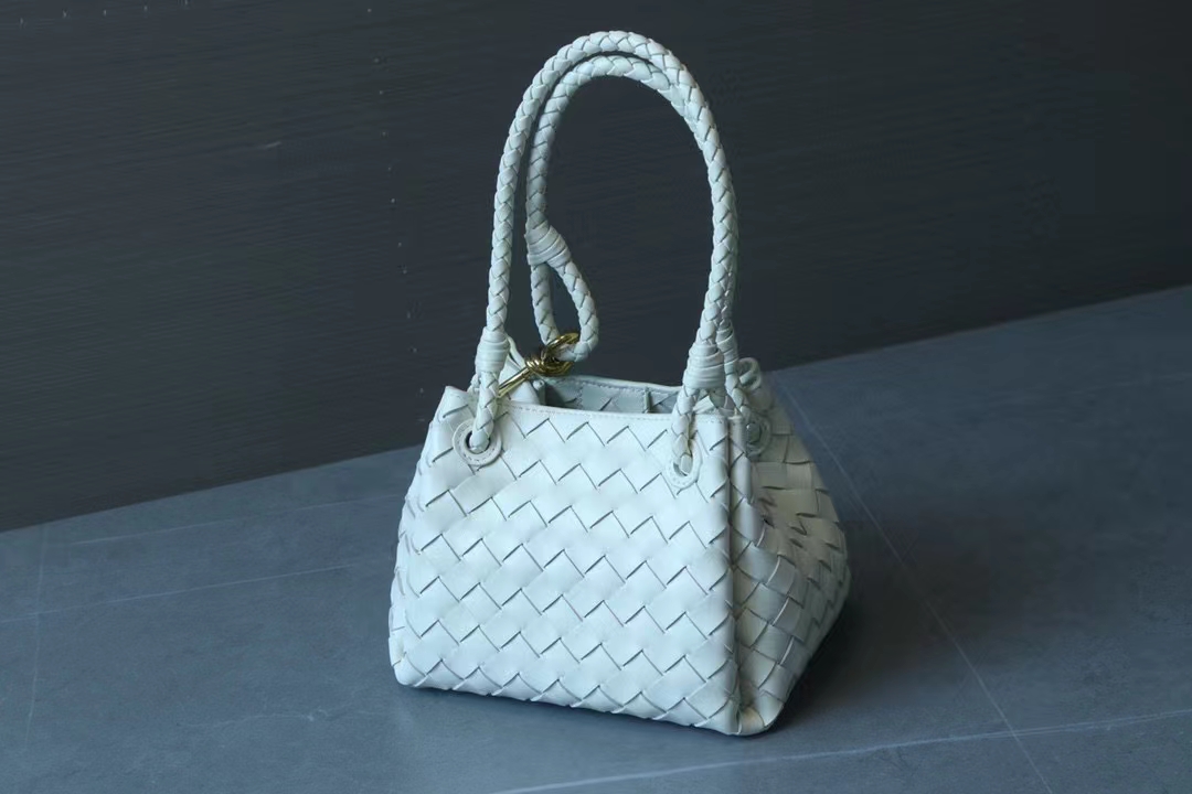 降落伞包延续了BV品牌经典的编织工艺,采用皮革条相互交织的方式,呈现出细腻而精致的纹理。这种编织工艺不仅展现了品牌的高超手工艺水平,还为包包增添了独特的视觉效果和质感。