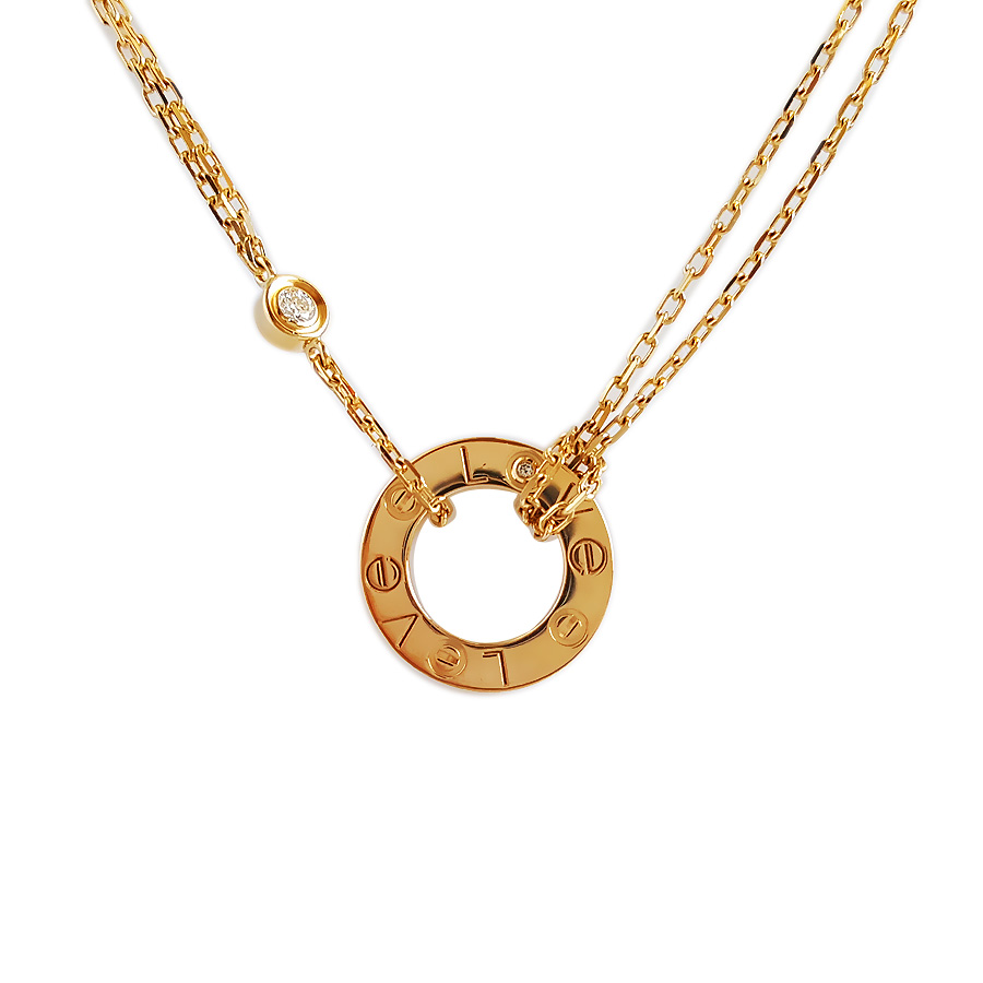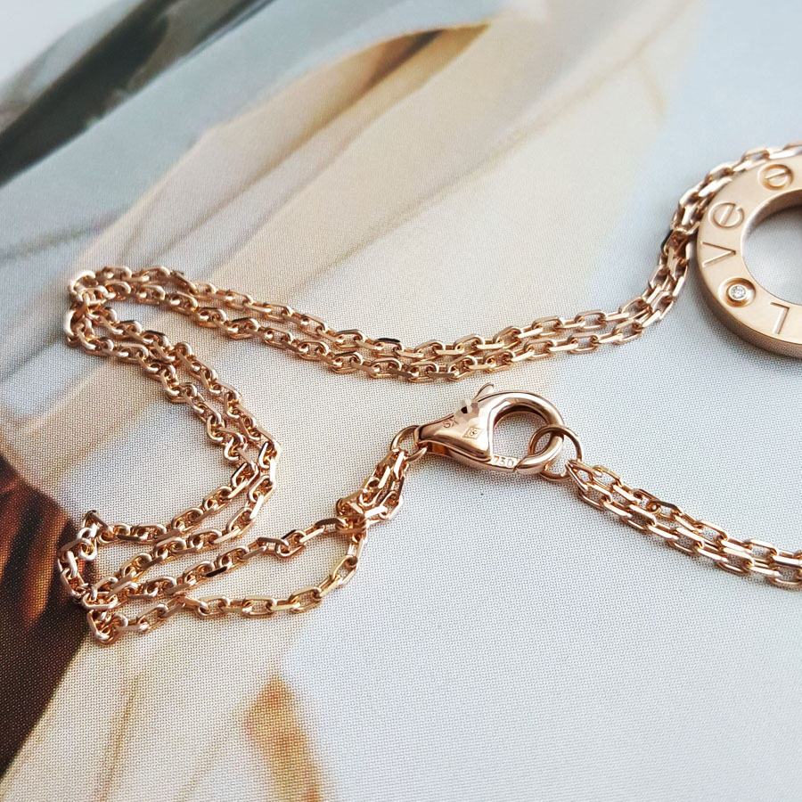 【95新】Cartier卡地亚LOVE系列B7224509玫瑰金镶2钻小圆饼LOVE项链 链长约41cm女士270126HS18