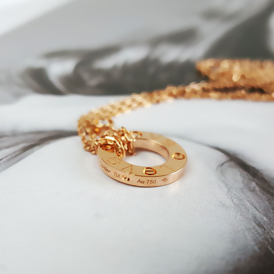 款式 | 玫瑰金镶2钻小圆饼LOVE项链 |