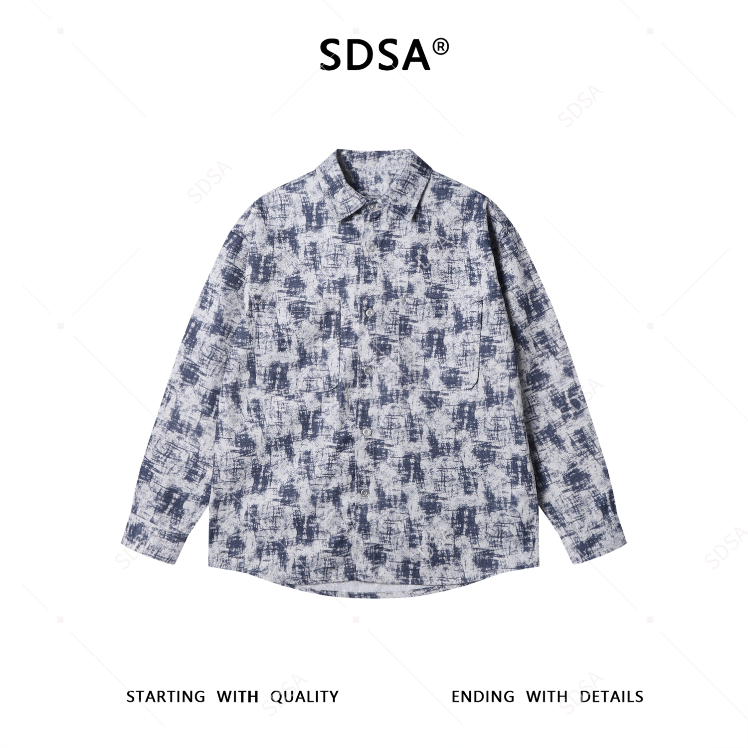 6015SDSA男士秋冬新款痞帅男装时尚简约磨破扎染翻领休闲衬衣百搭时尚