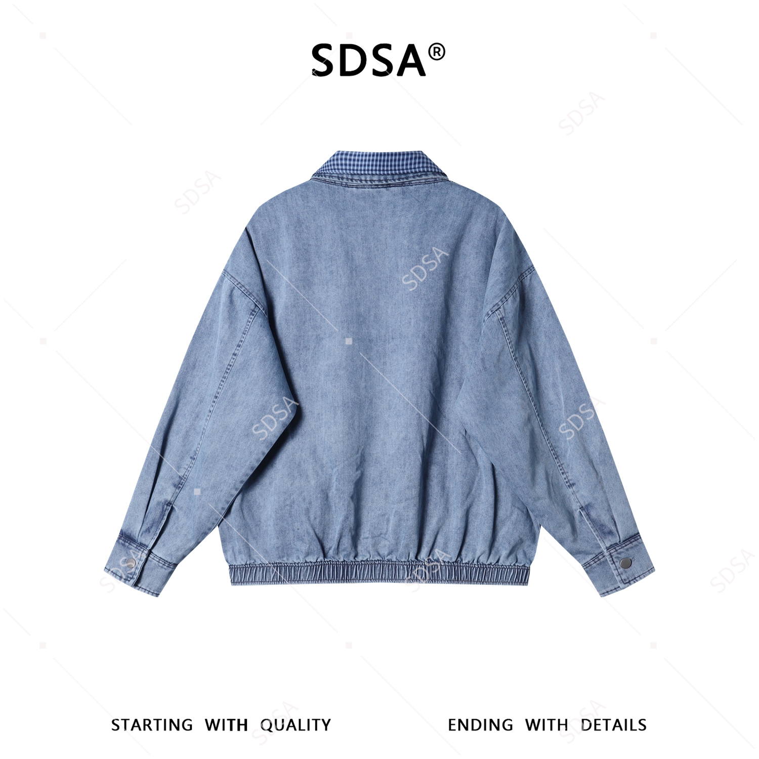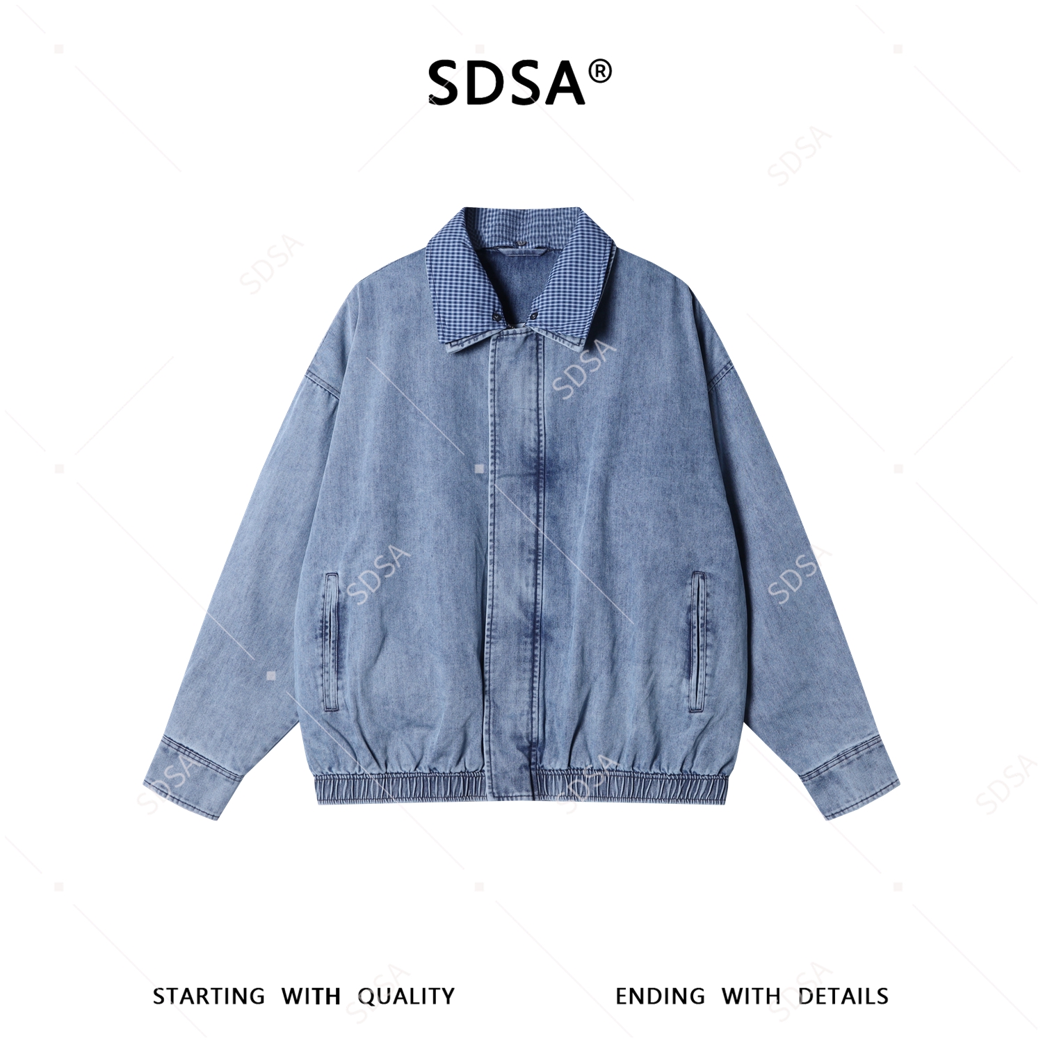 SDSA男士春夏新款痞帅男装韩版拼接翻领牛仔夹克外套百搭宽松休闲