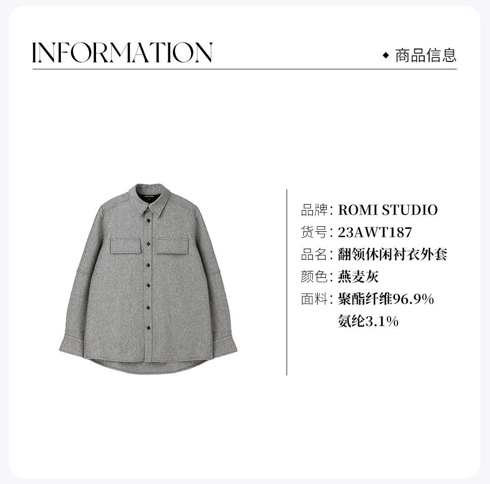 ROMI STUDIO“随性优雅”简约百搭燕麦灰翻领休闲衬衣外套 23AWT187