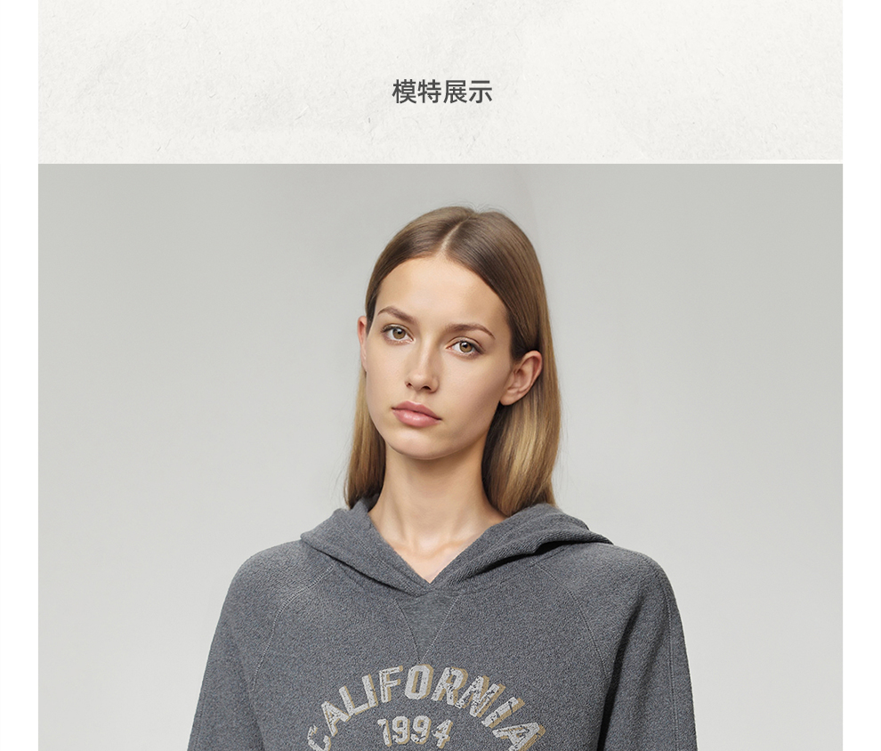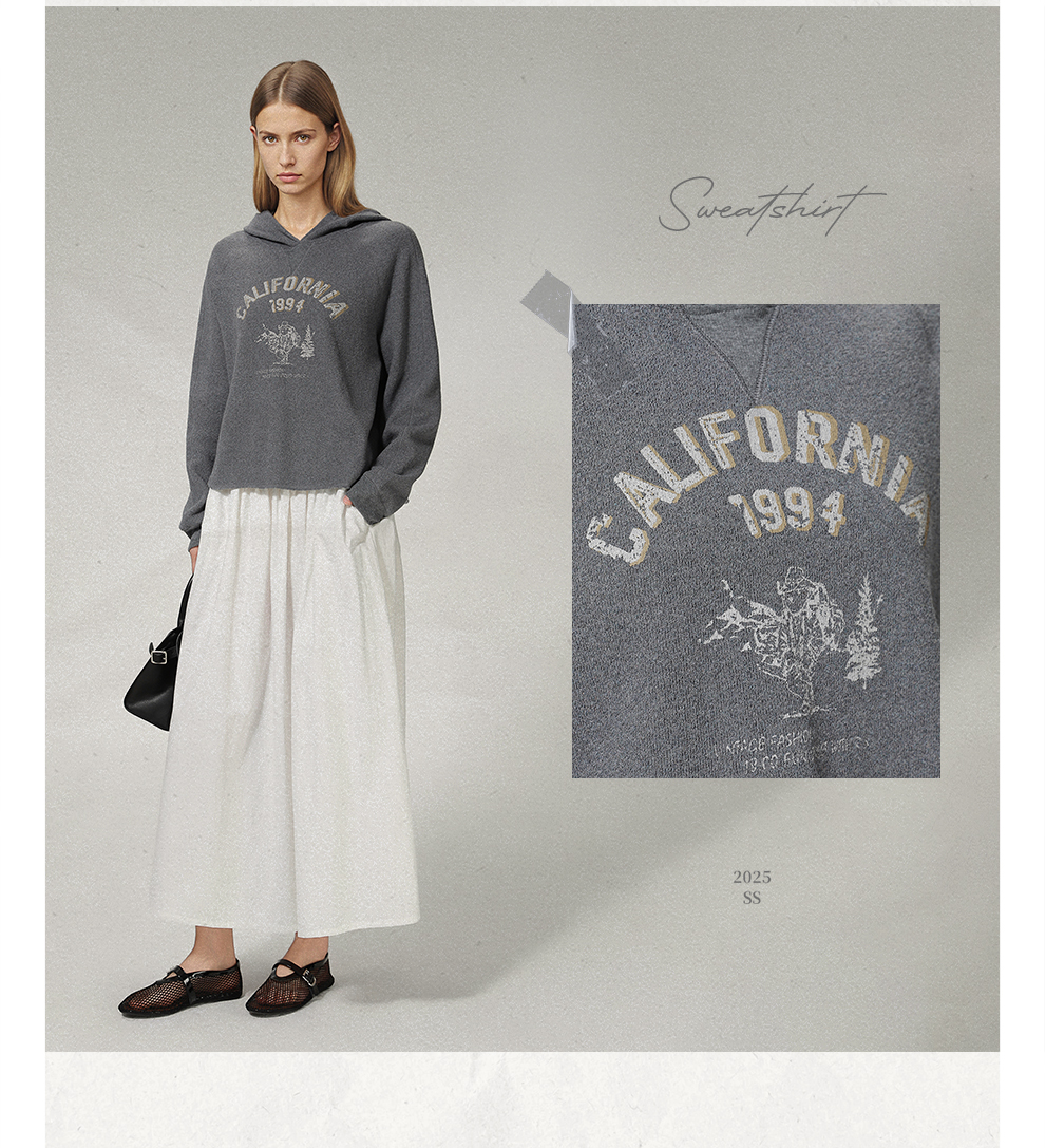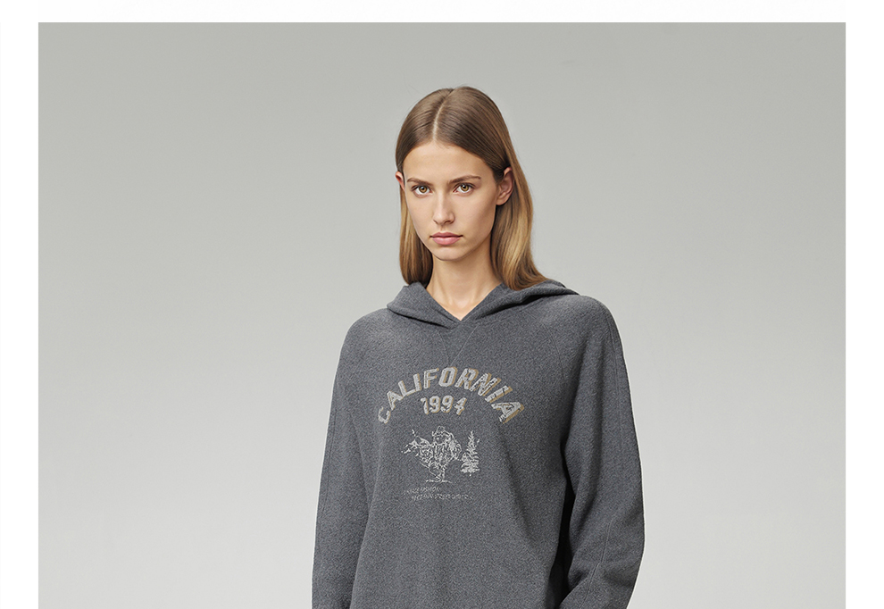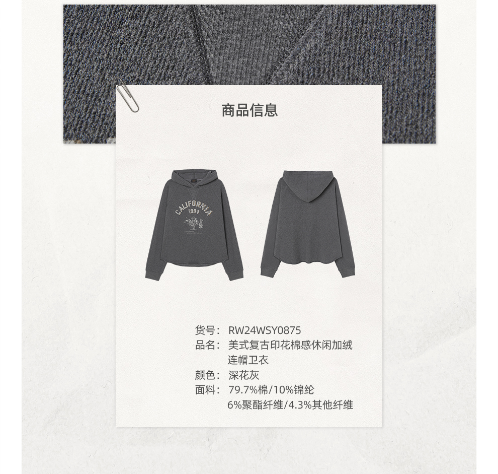 ROMI STUDIO“美式复古” 花纱肌理感印花加绒连帽卫衣 RW24WSY0875