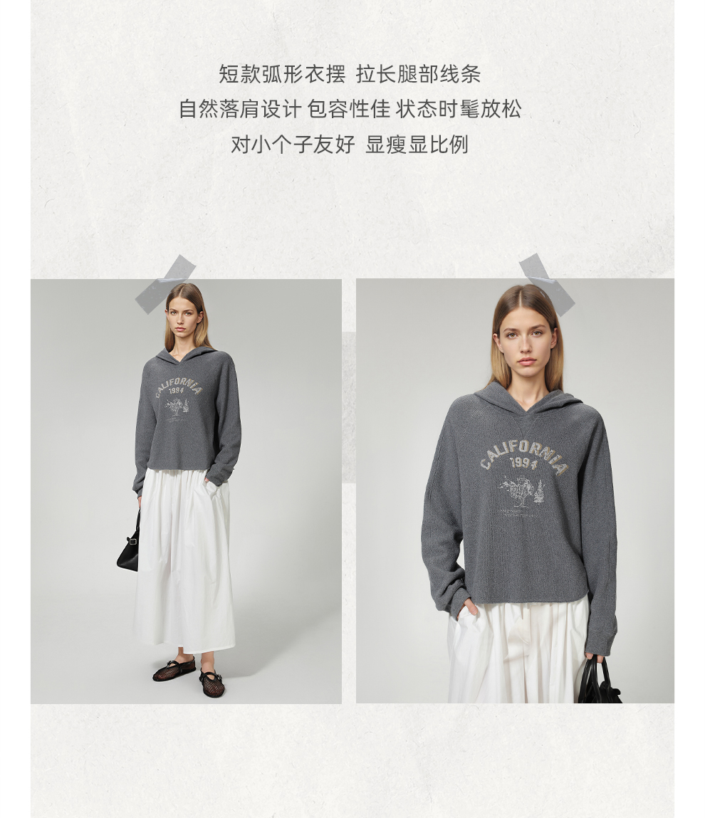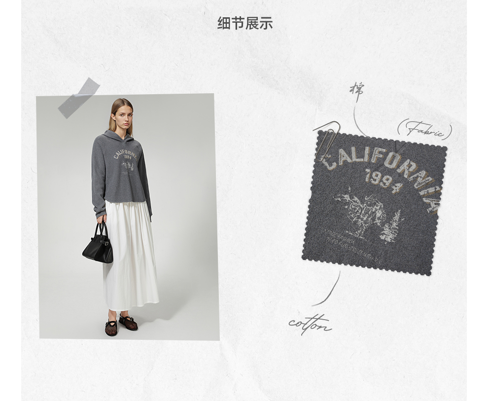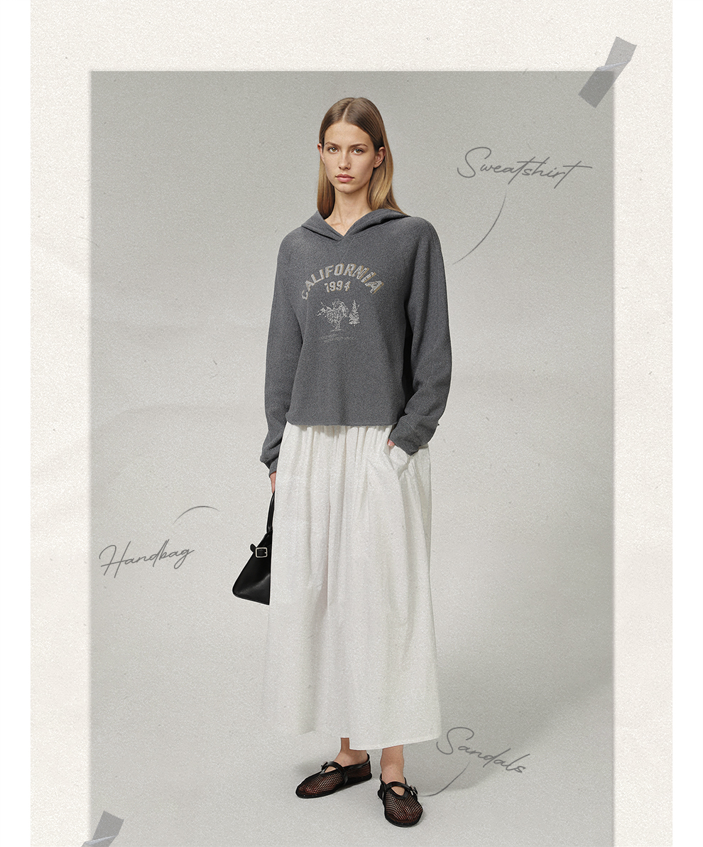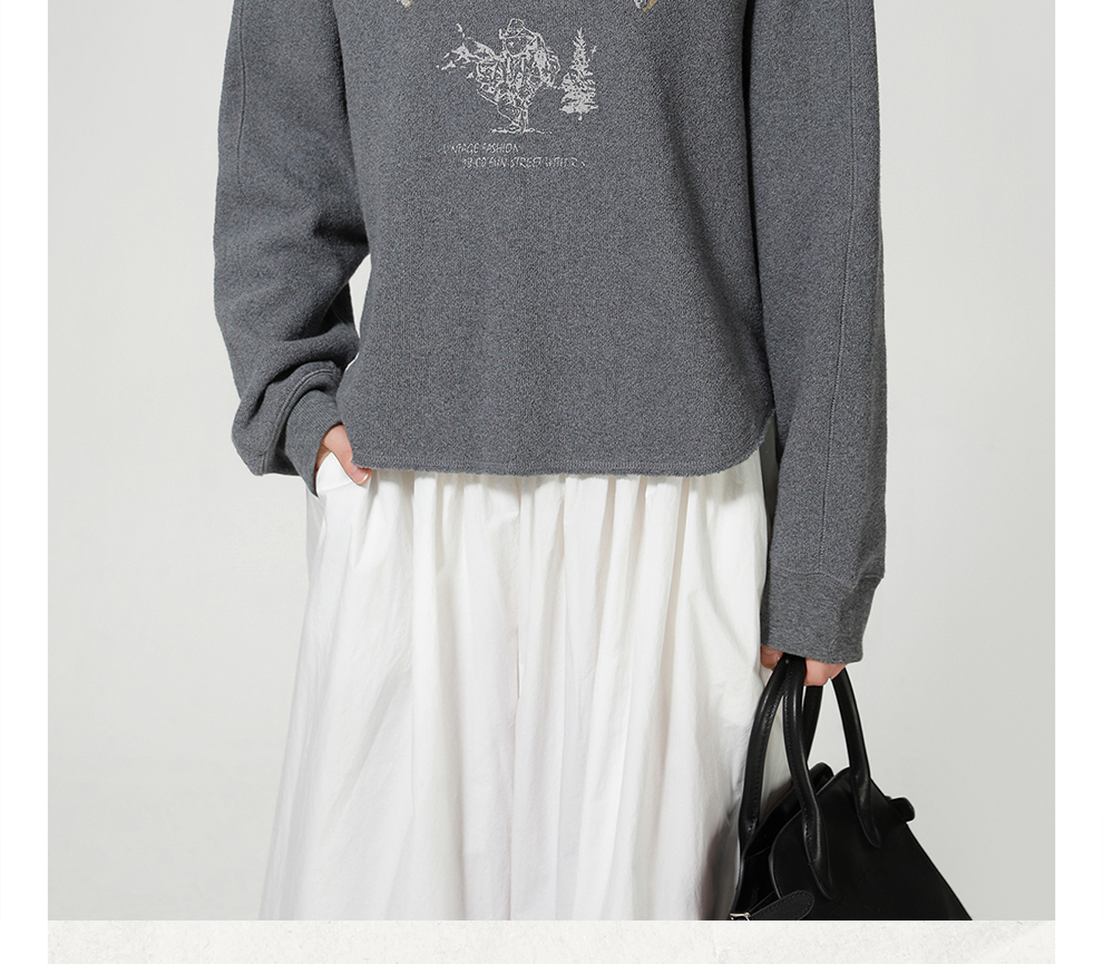 ROMI STUDIO“美式复古” 花纱肌理感印花加绒连帽卫衣 RW24WSY0875
