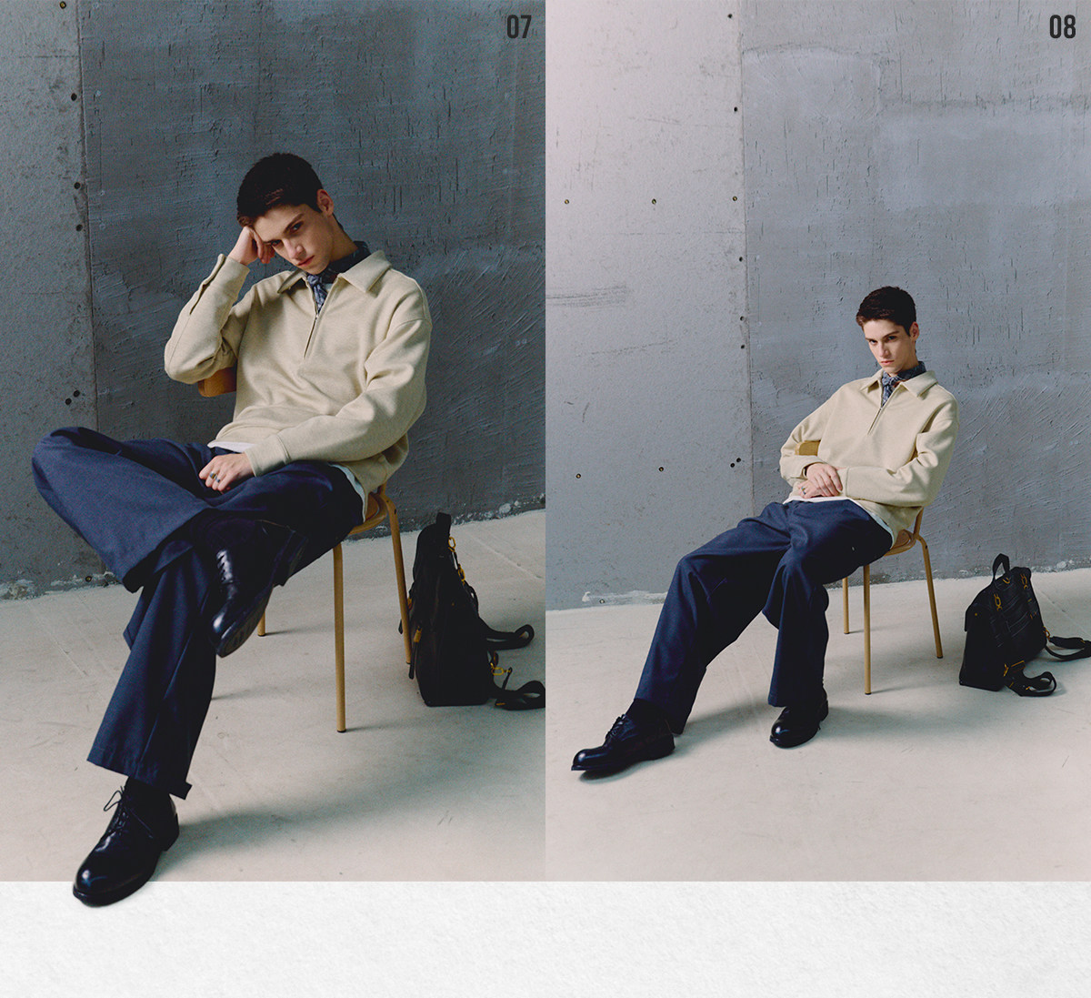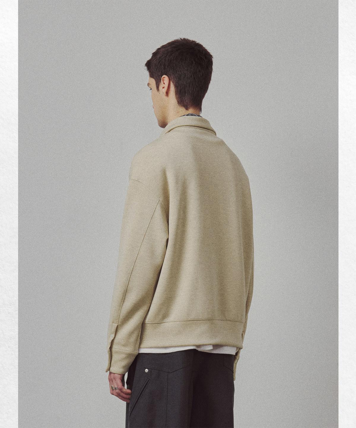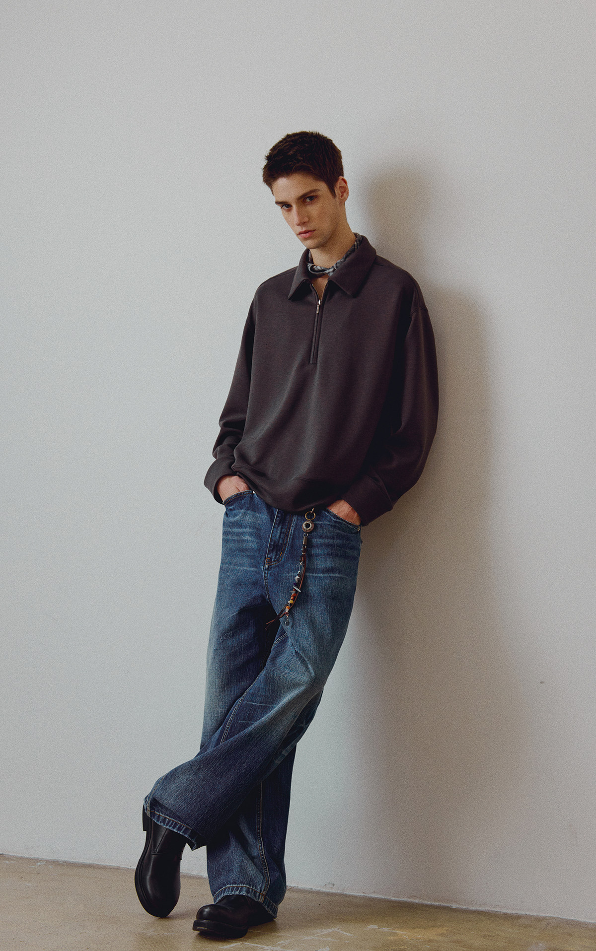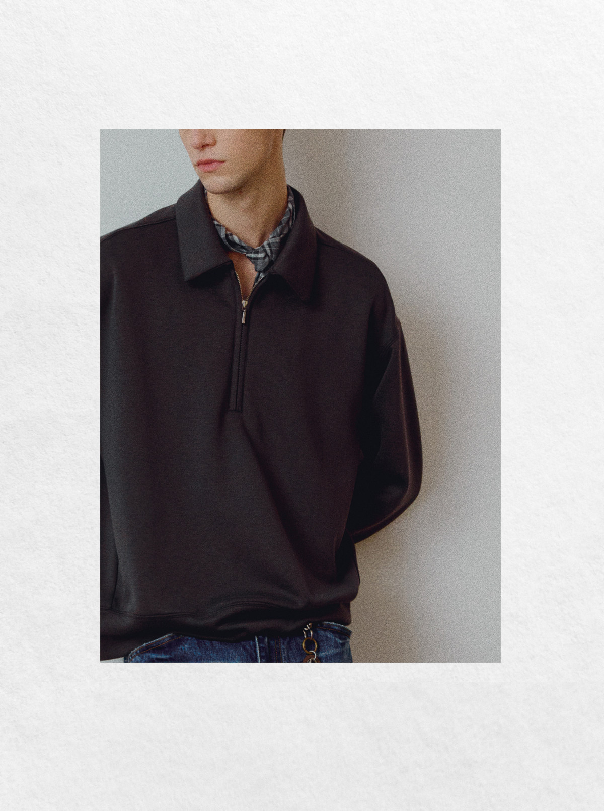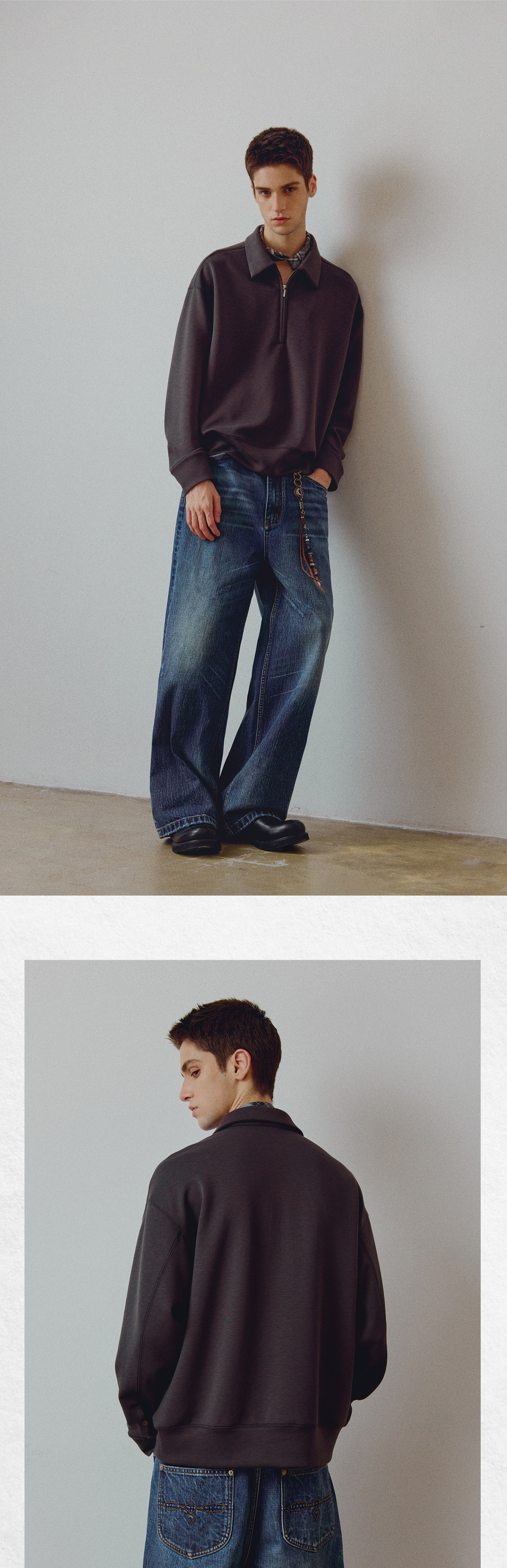 714street高端线BEHALF 兰精天丝醋酸羊毛贝壳纽扣半拉链POLO长袖